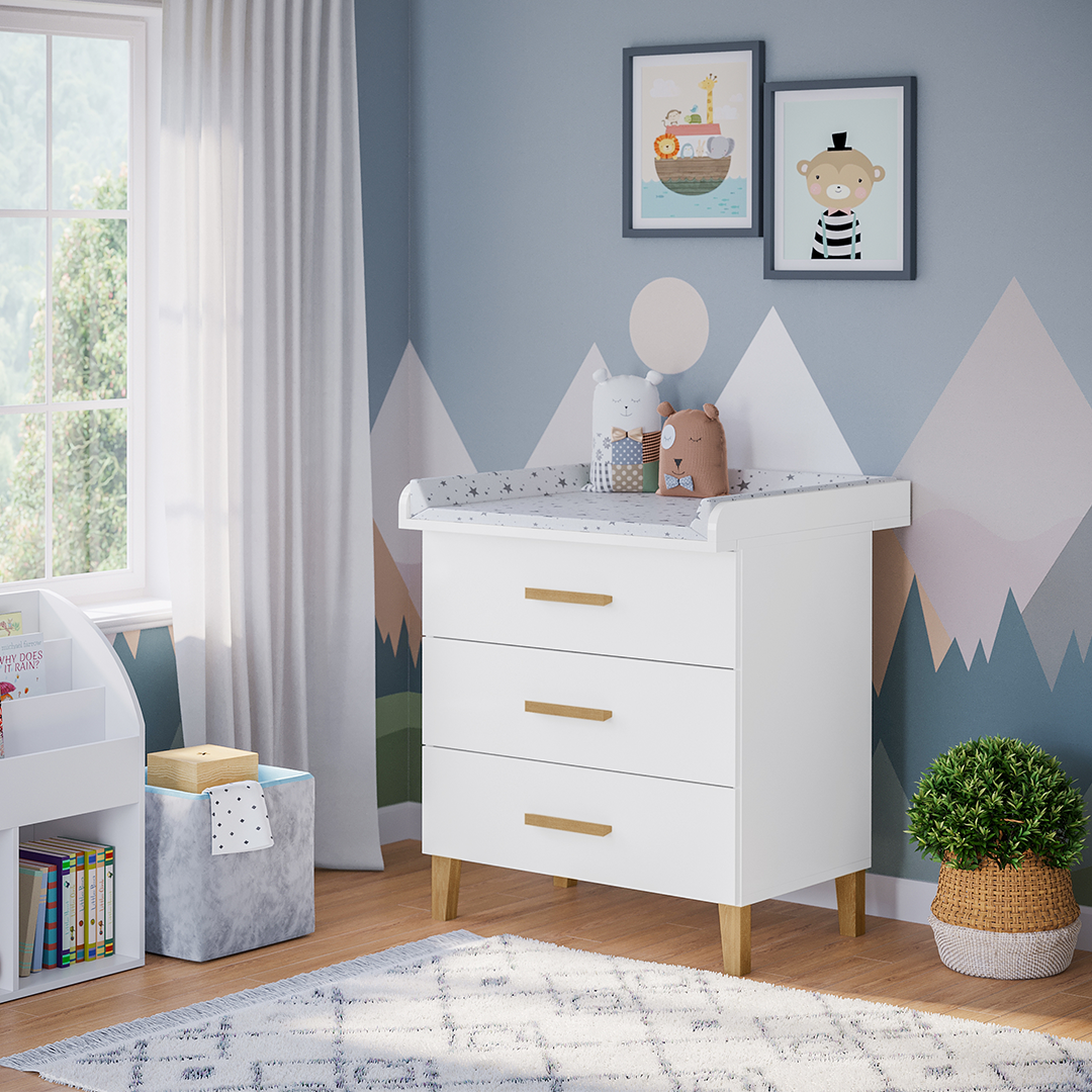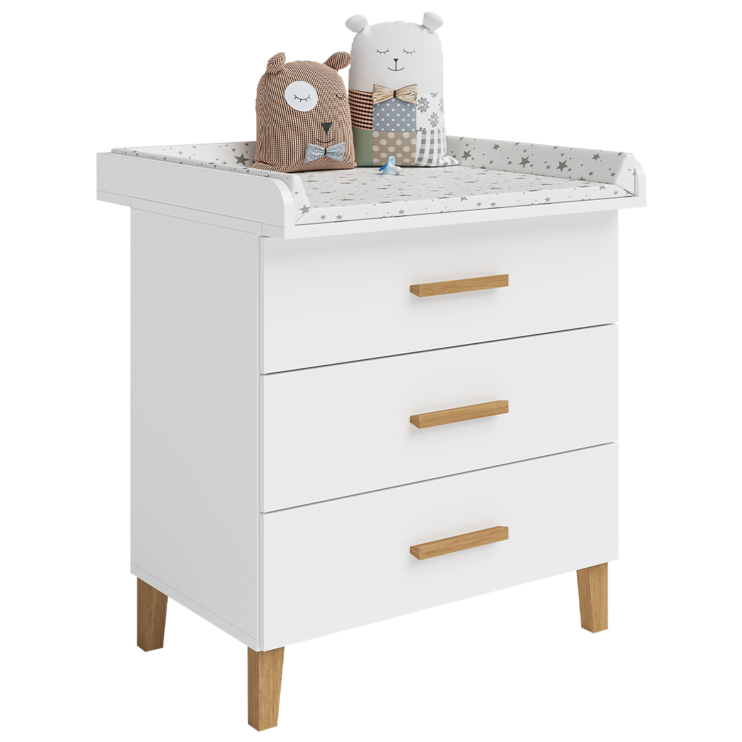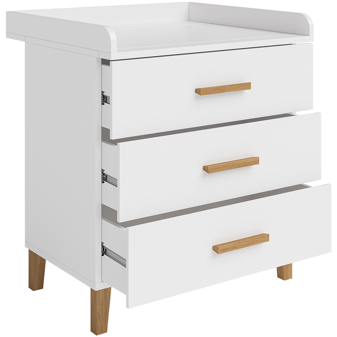 Liri Wickelkommode, weiß/natur, mit 3 Schubladen und abnehmbaren Wickelaufsatz