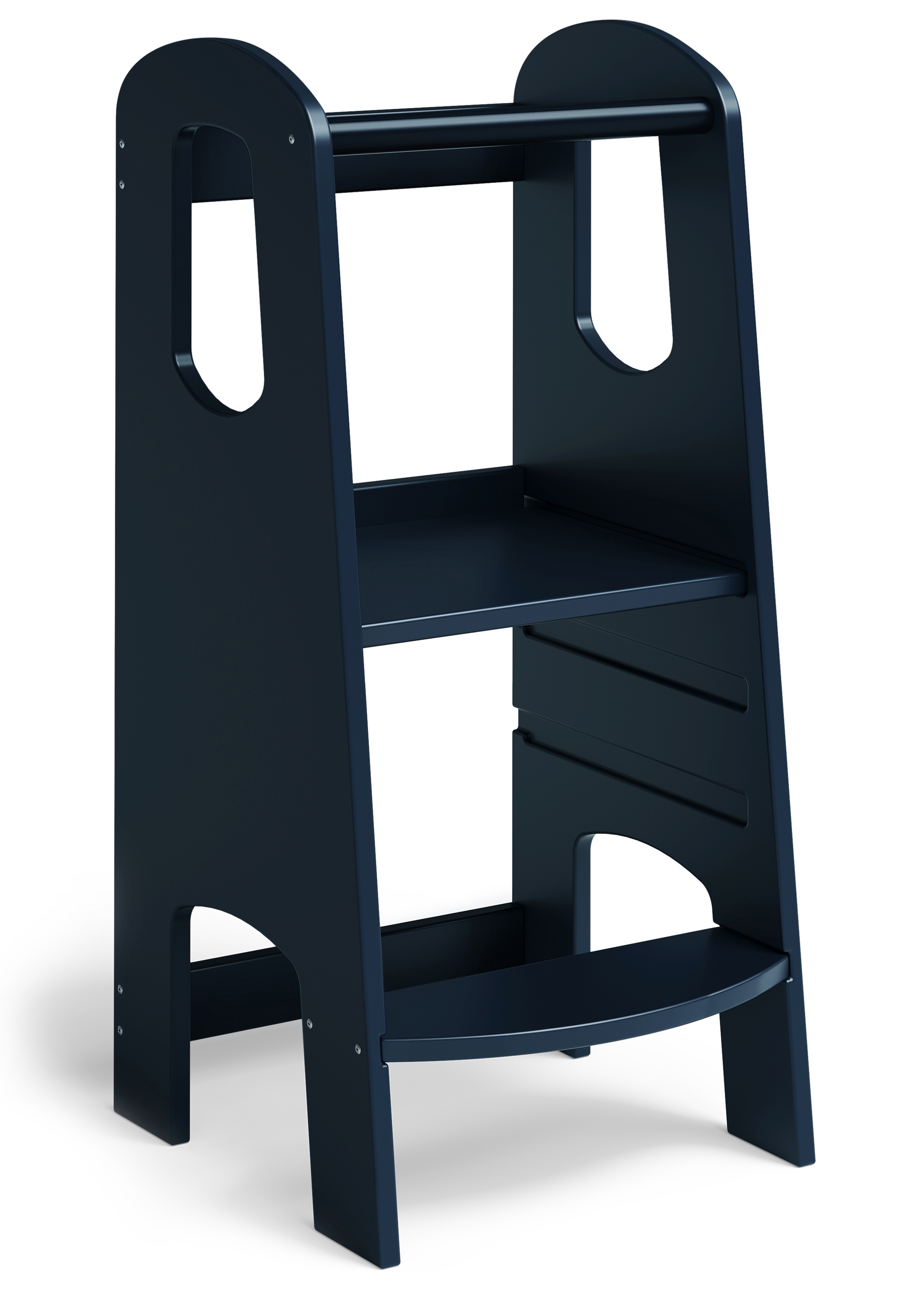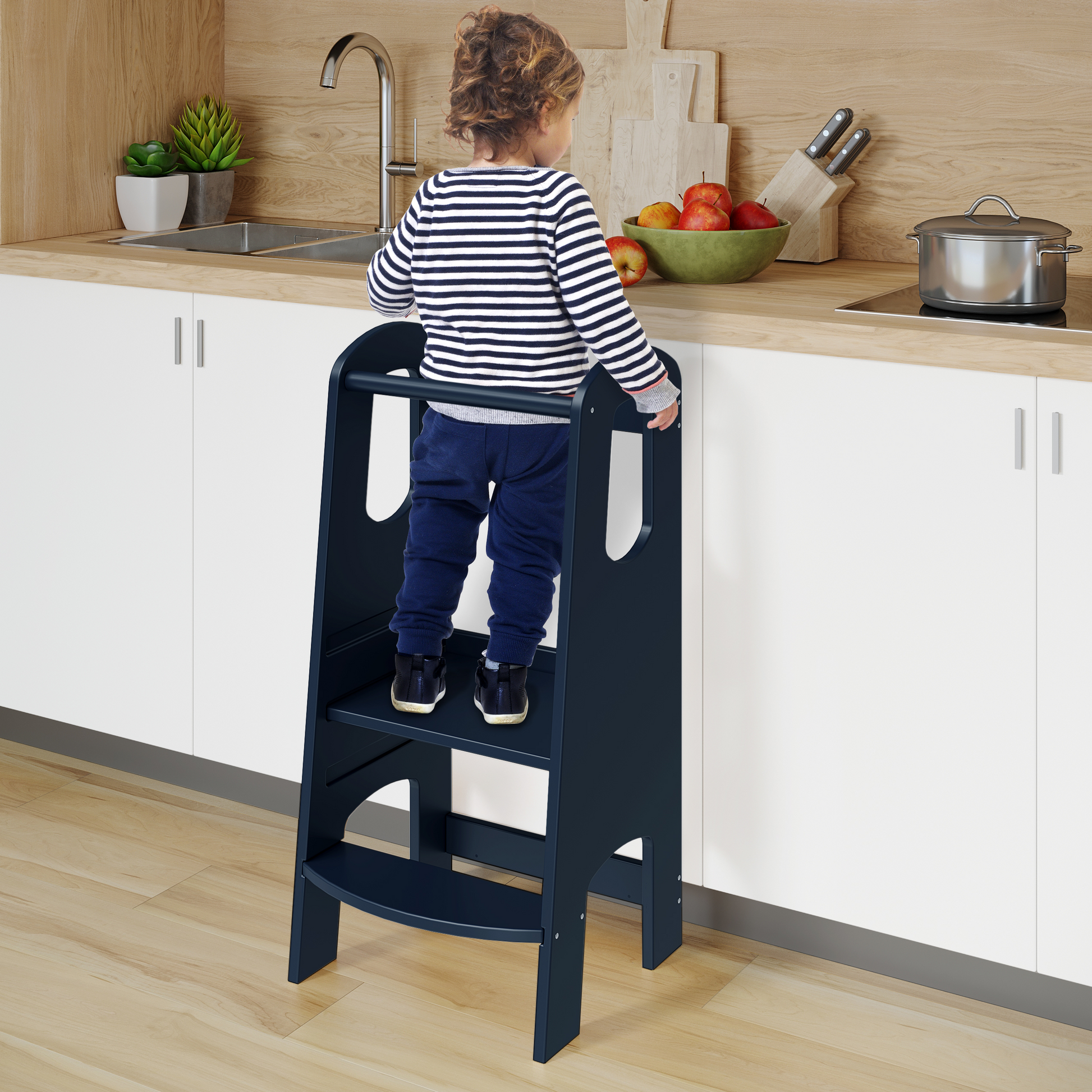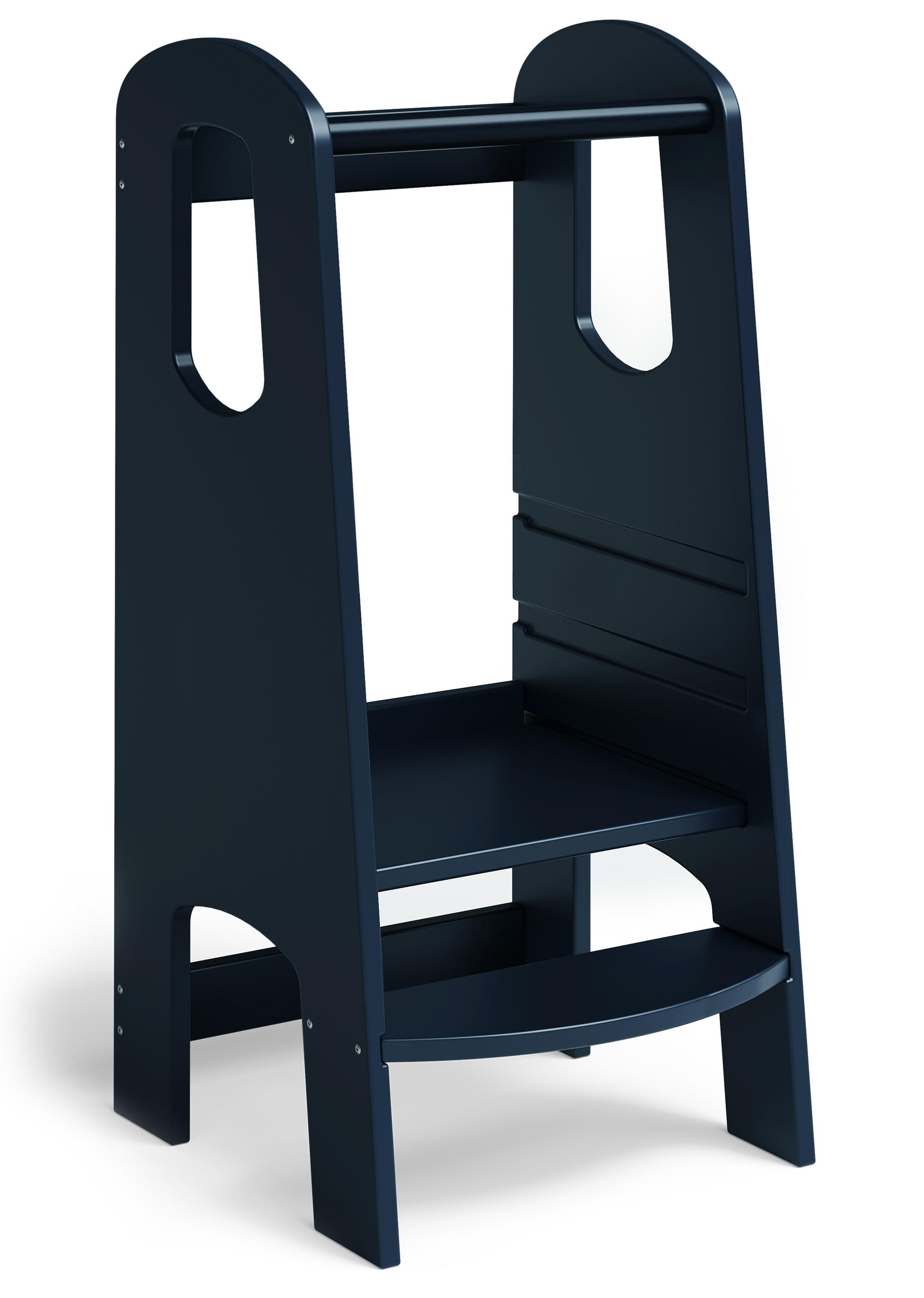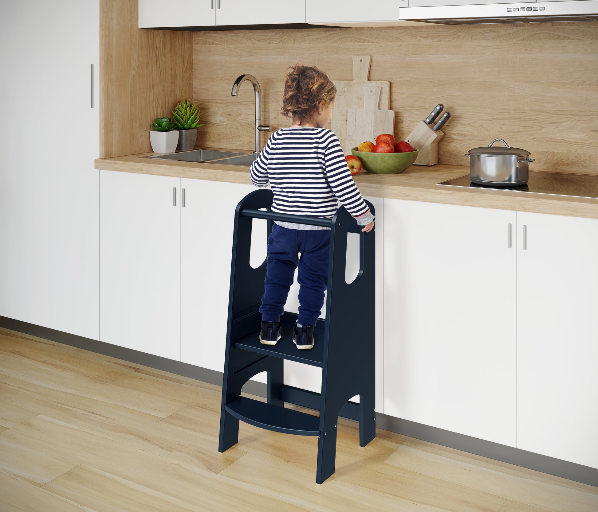 Ganz gleich, ob in der Küche, am Esstisch, im Bad oder Kinderzimmer: Mit dem Lernturm 'Luni' können Kleinkinder in den Familienalltag schneller und leichter integriert werden.