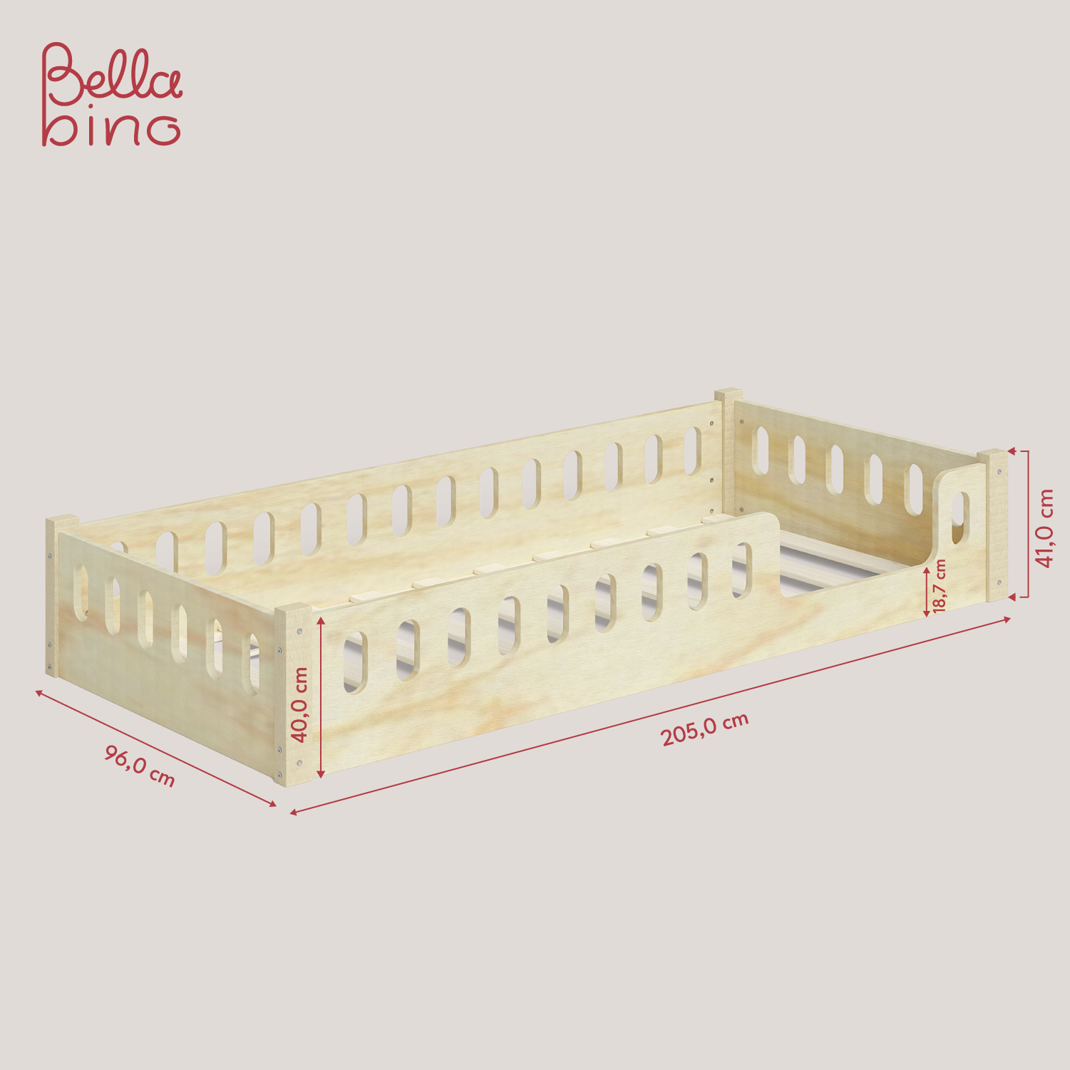 Das Bodenbett 'Miera' von Bellabino bietet eine komfortable und ästhetische Schlafmöglichkeit für Kinder. Mit Maßen von 205 cm Breite, 41 cm Höhe und 96 cm Tiefe ist es perfekt auf die Bedürfnisse der Kleinen abgestimmt. Das hochwertige Sperrholzmaterial garantiert nicht nur eine ansprechende Optik, sondern auch Langlebigkeit.