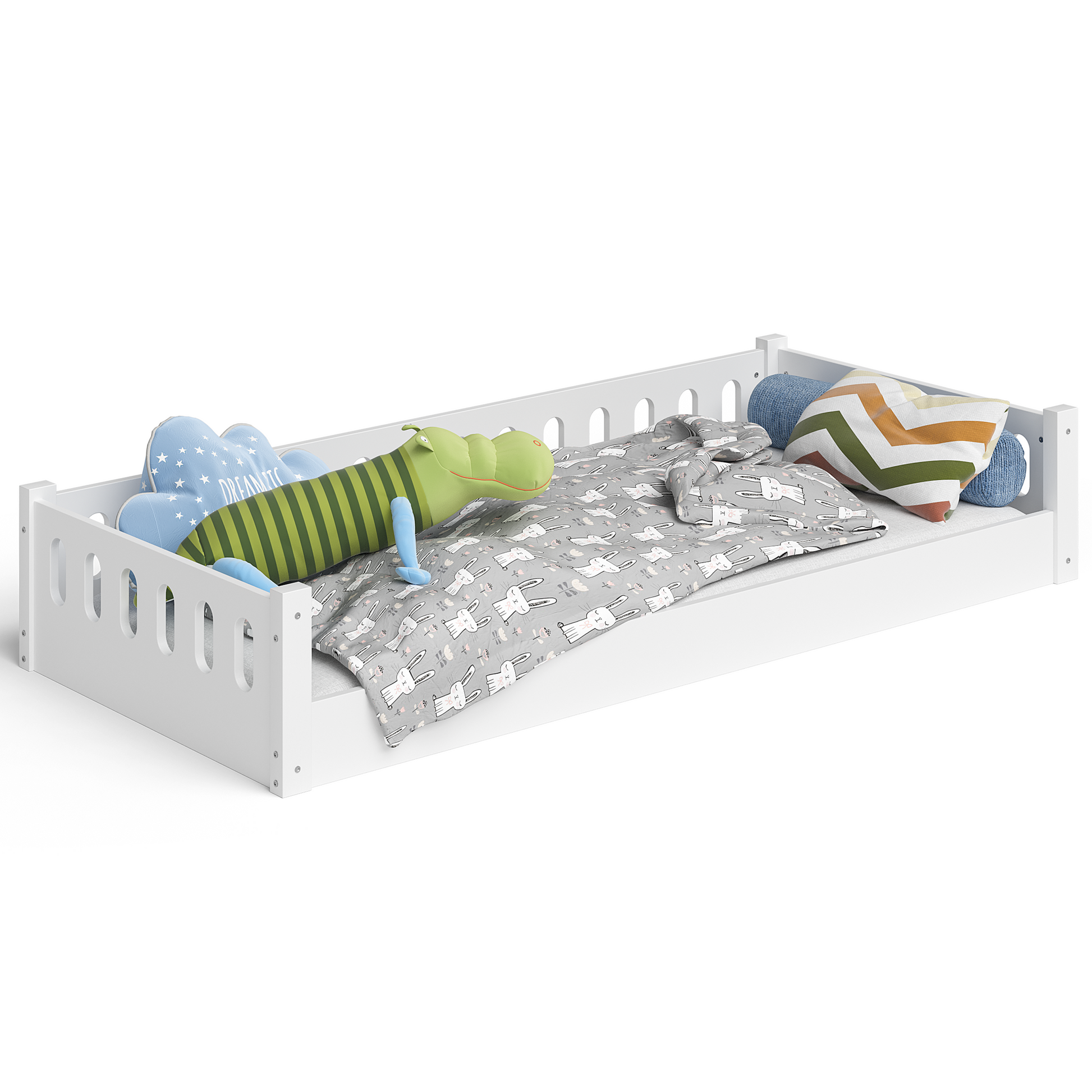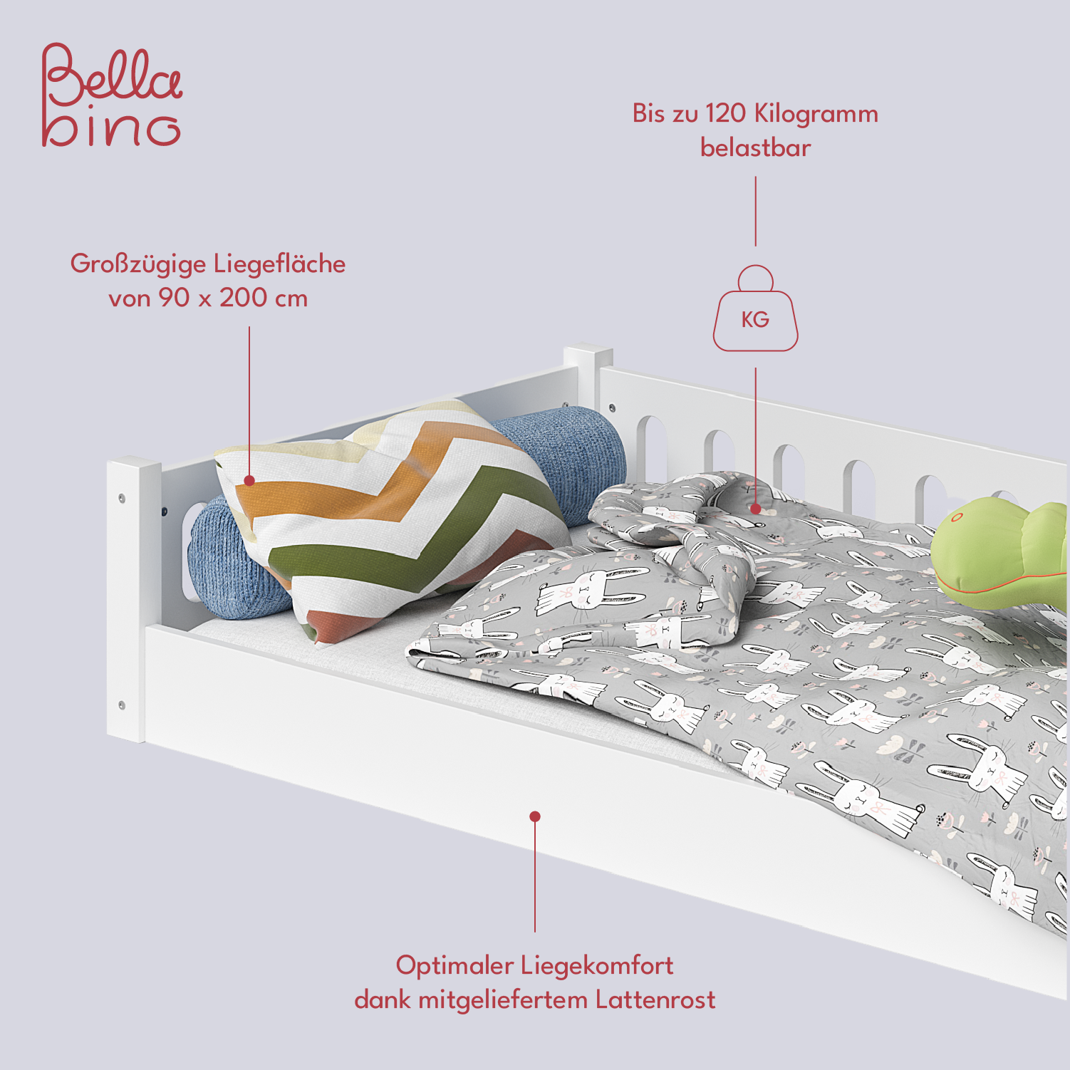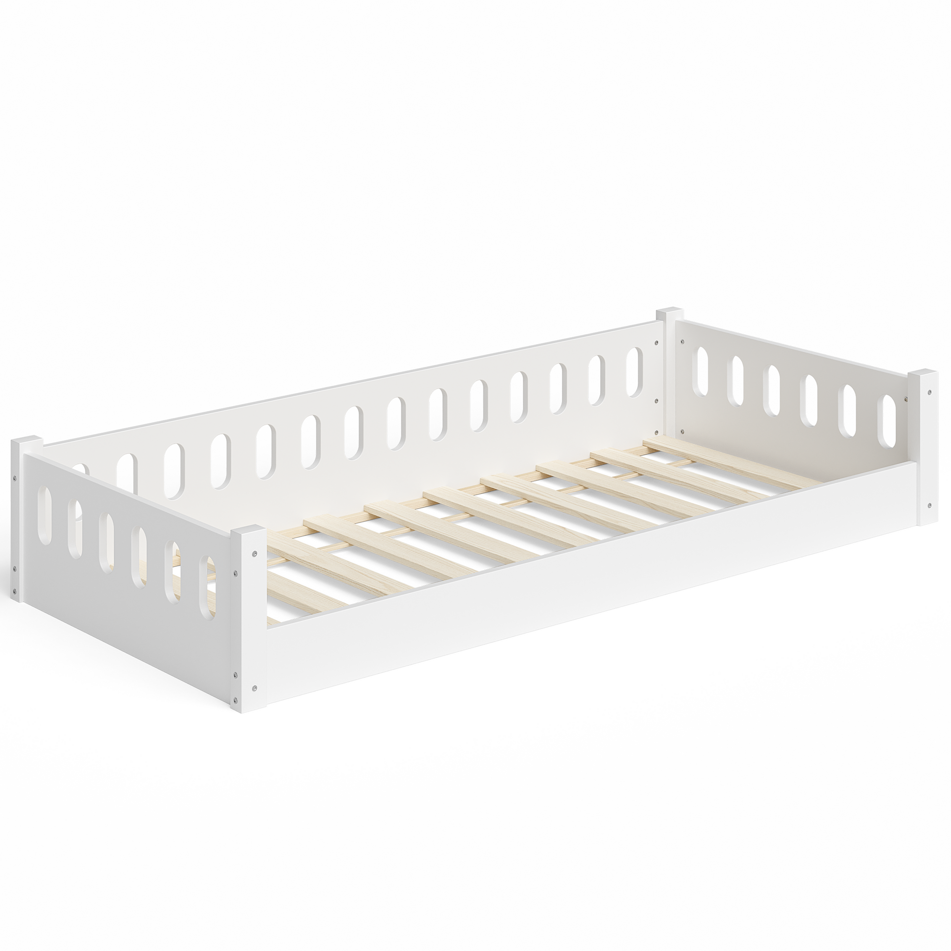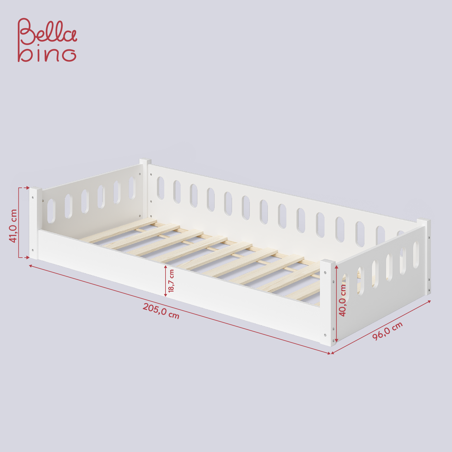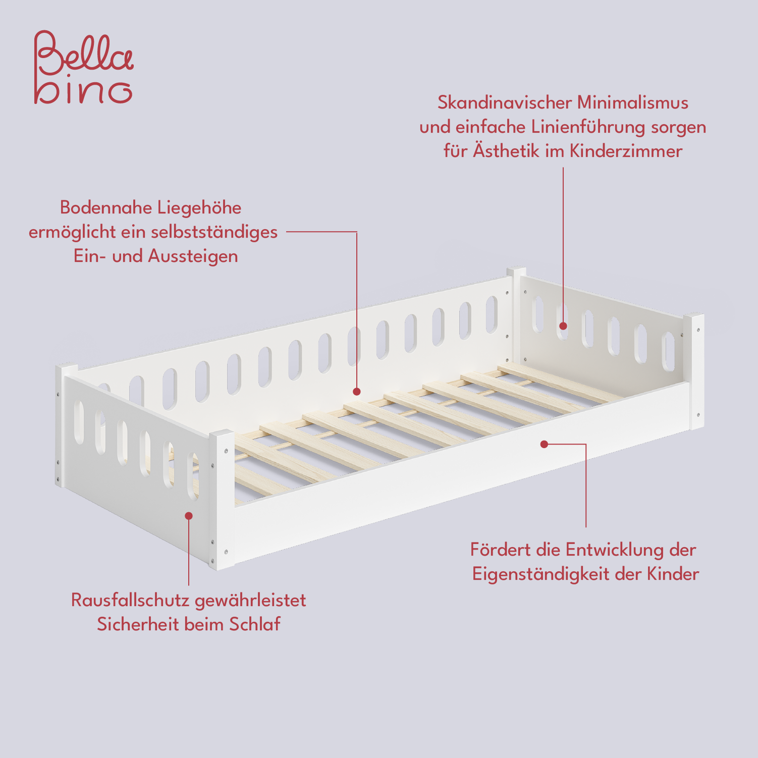 Miera Bodenbett mit offener Seite inkl. Rolllattenrost, MDF weiß, 90 x 200 cm