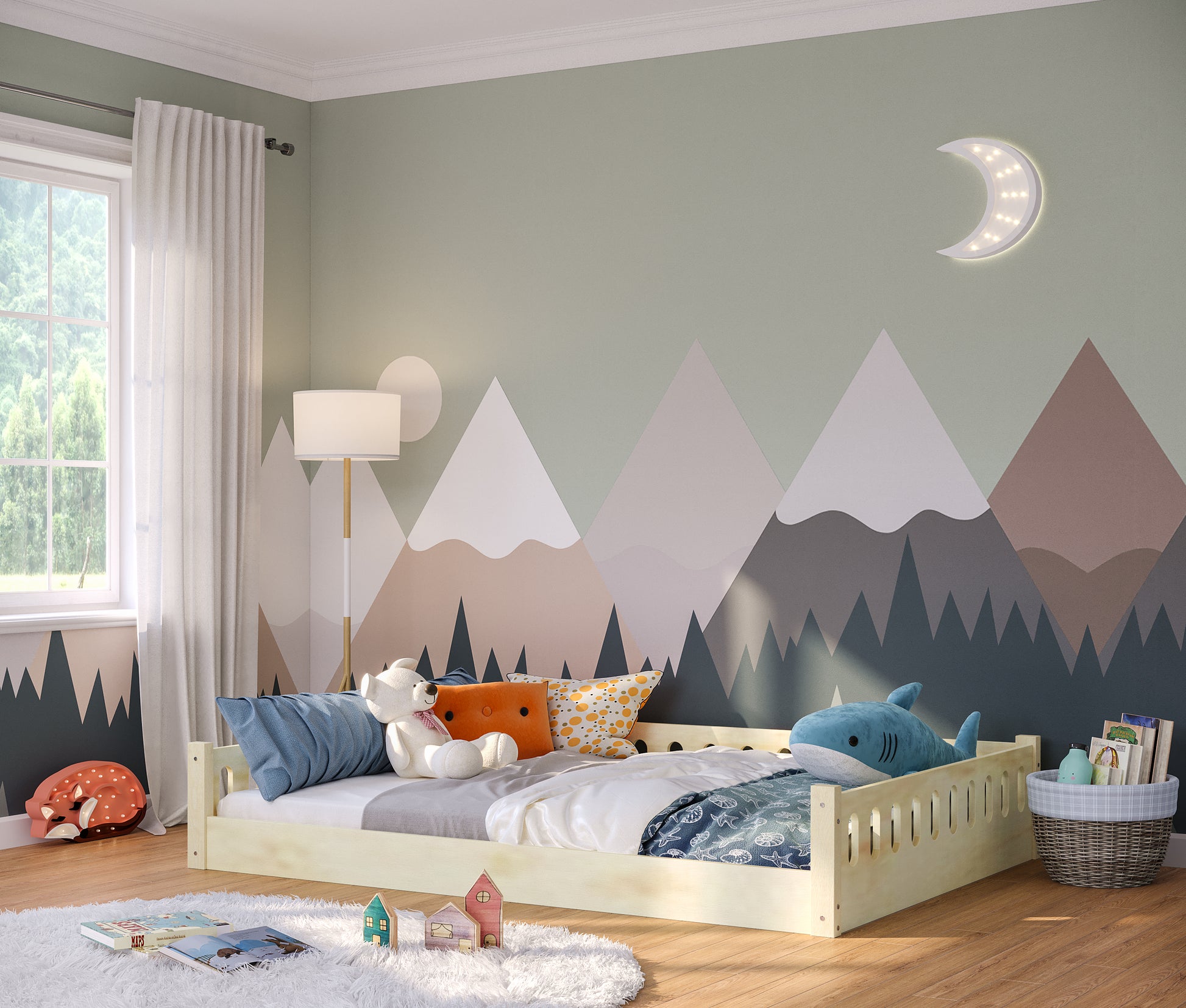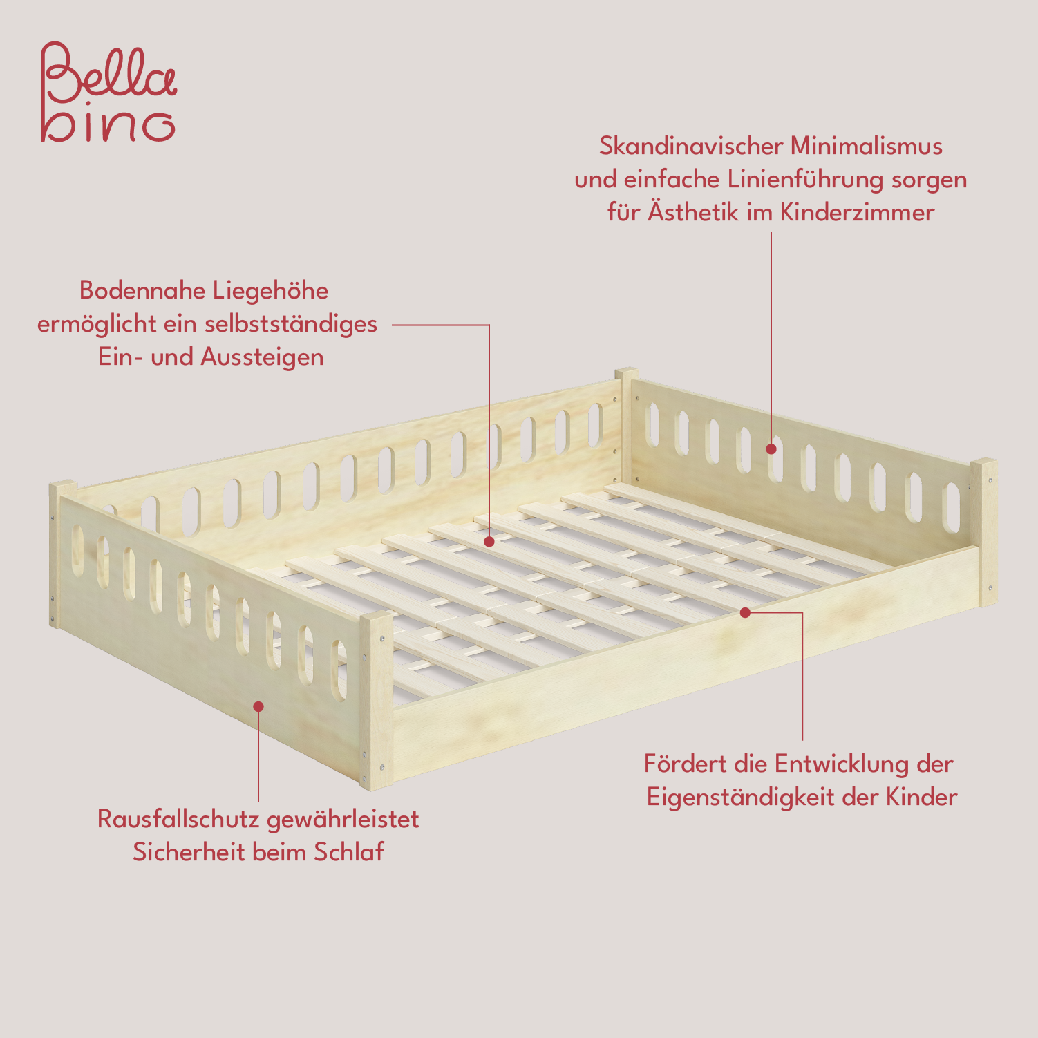 'Miera' von Bellabino schafft ein funktionales, sicheres Bodenbett mit zeitlosem Design und kinderfreundlicher Ästhetik für ein gemütliches und inspirierendes Kinderzimmer.