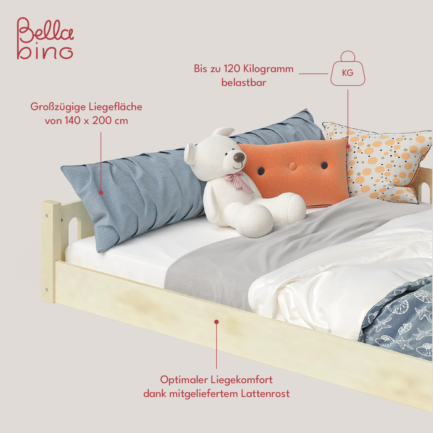 Miera Bodenbett mit offener Seite inkl. Rolllattenrost, Sperrholz natur, 140 x 200 cm
