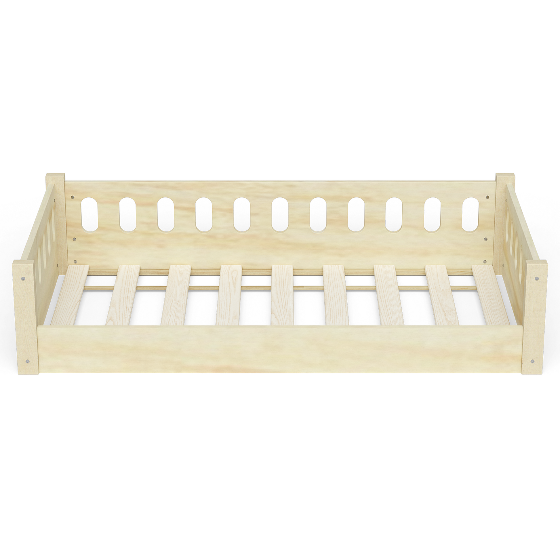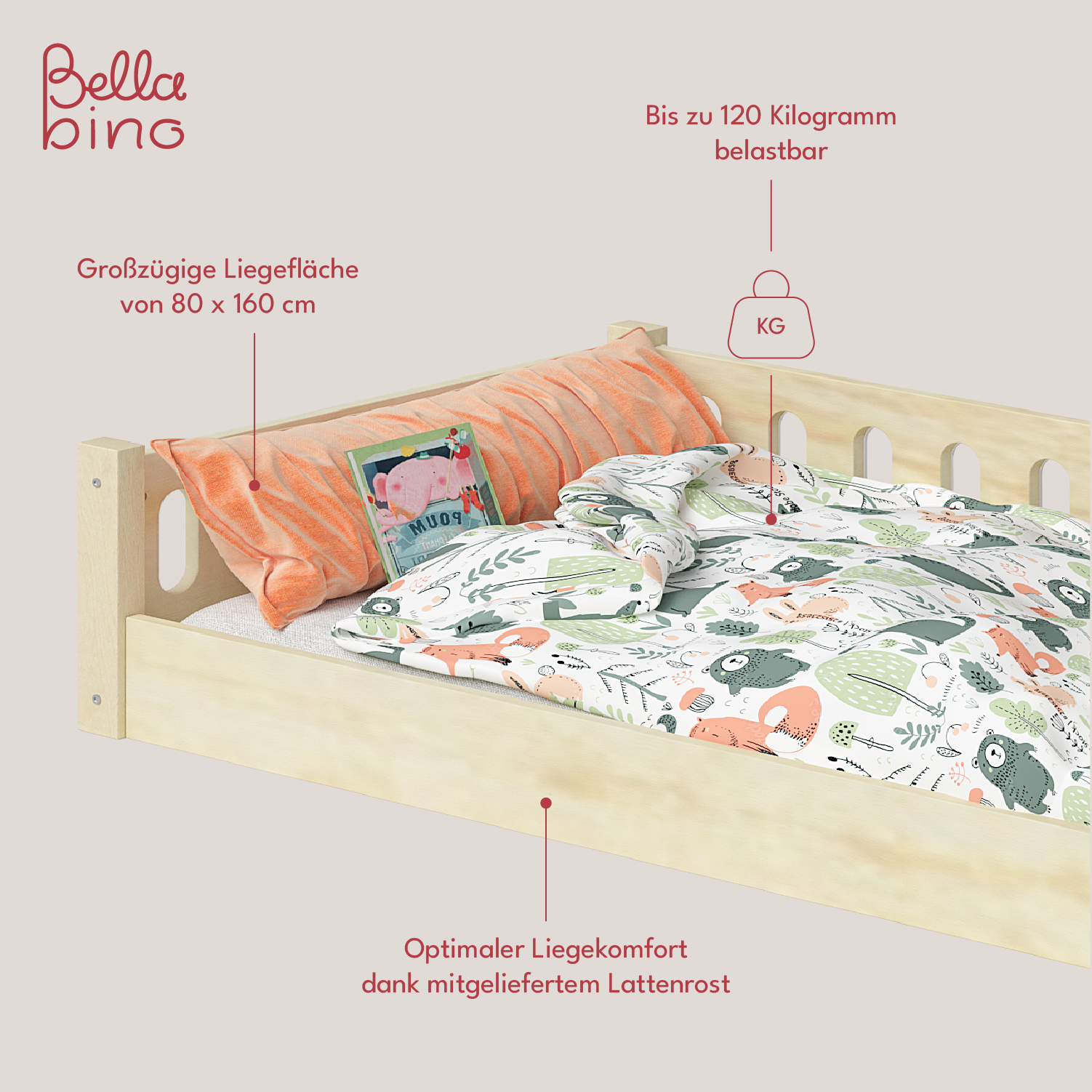 Miera Bodenbett mit offener Seite inkl. Rolllattenrost, Sperrholz natur lackiert, 80 x 160 cm