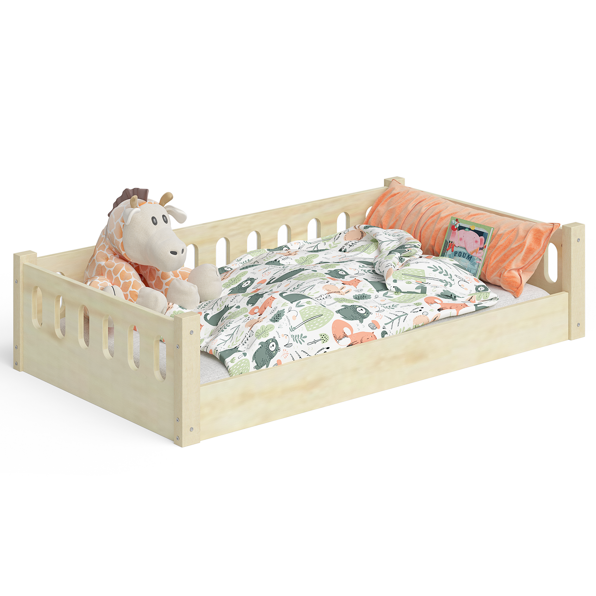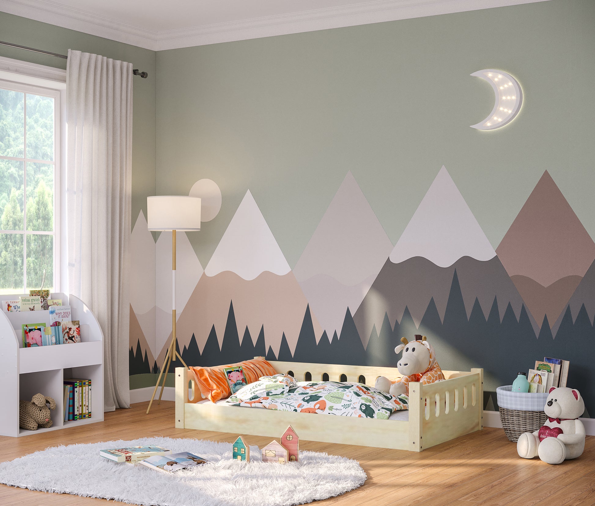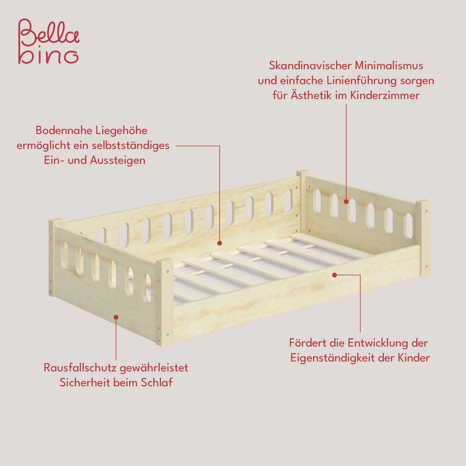 'Miera' von Bellabino schafft ein funktionales, sicheres Bodenbett mit zeitlosem Design und kinderfreundlicher Ästhetik für ein gemütliches und inspirierendes Kinderzimmer.