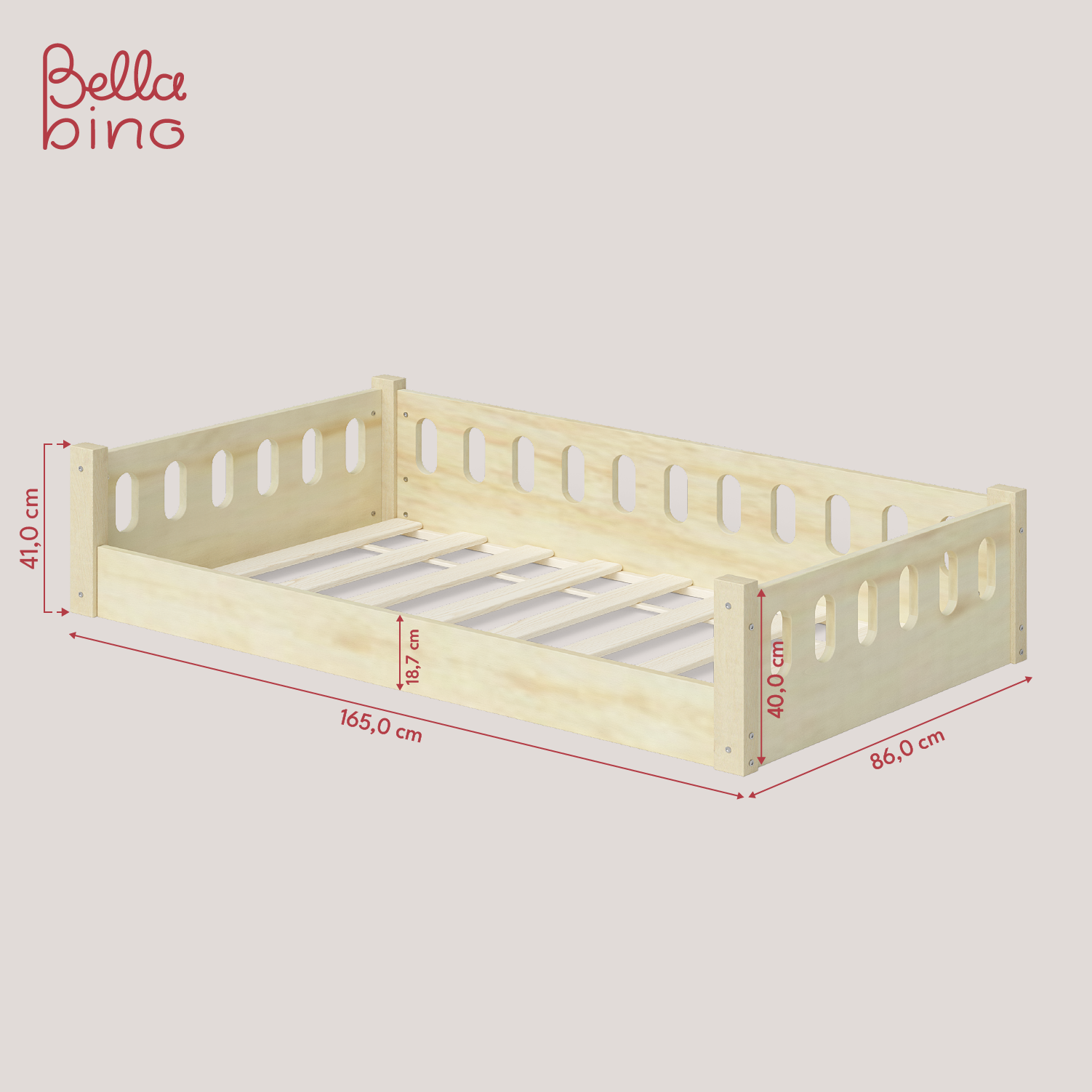 Das Bodenbett 'Miera' von Bellabino bietet eine komfortable und ästhetische Schlafmöglichkeit für kleine Kinder. Mit Maßen von 165 cm Breite, 41 cm Höhe und 86 cm Tiefe ist es perfekt auf die Bedürfnisse der Kleinen abgestimmt. Das hochwertige Sperrholzmaterial gewährleistet nicht nur eine ansprechende Optik, sondern auch eine lange Lebensdauer.