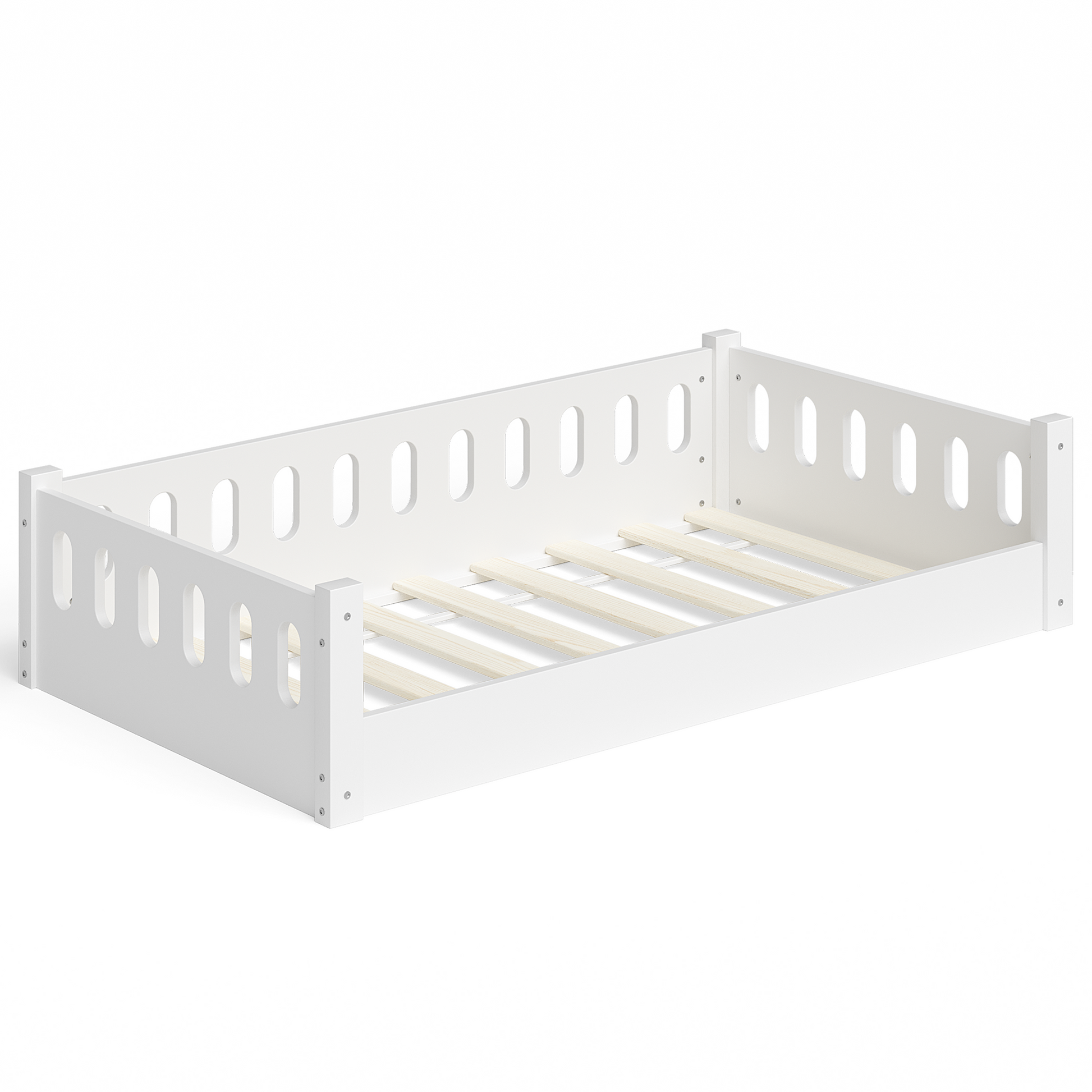Miera Bodenbett mit offener Seite inkl. Rolllattenrost, Sperrholz weiß lackiert, 80 x 160 cm