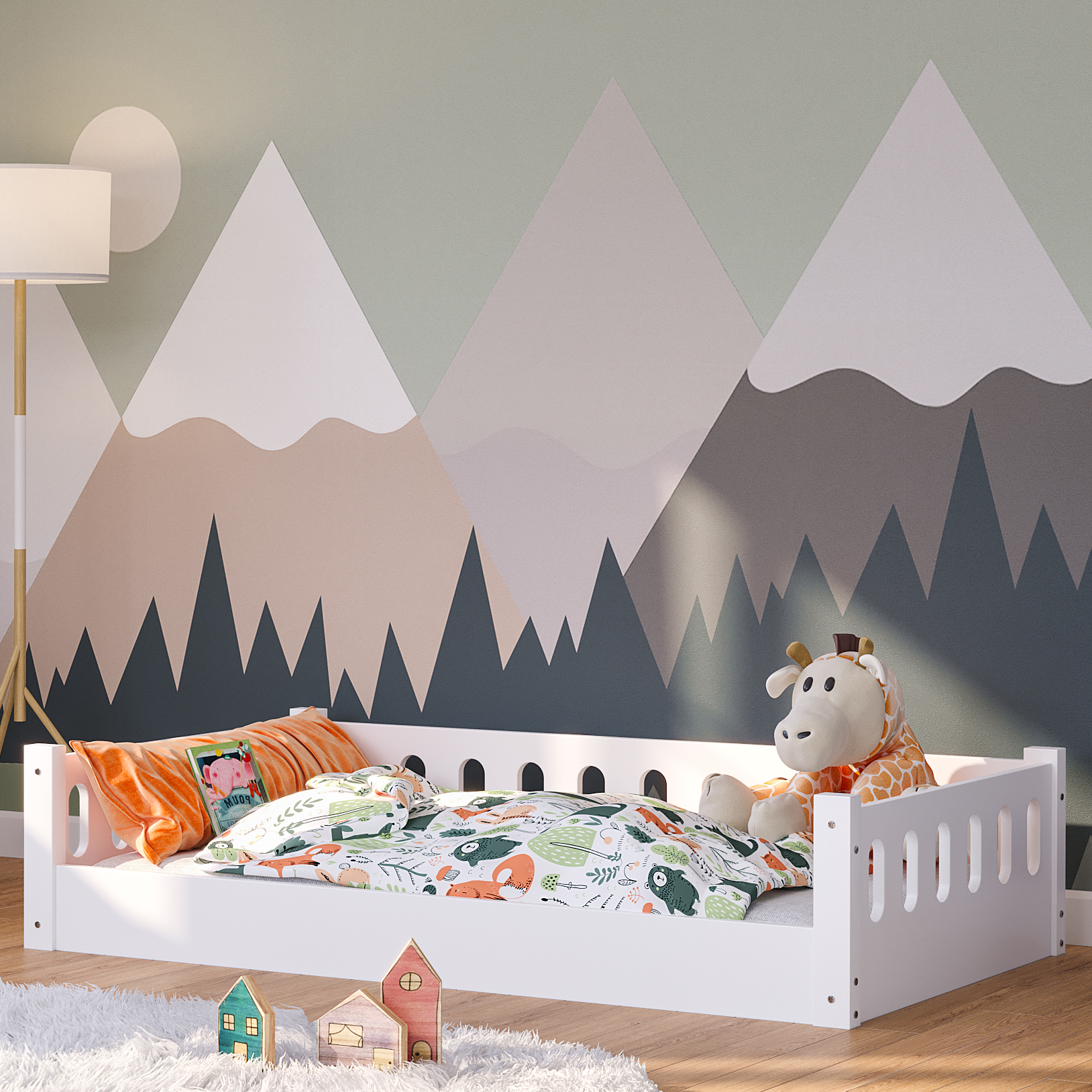 'Miera' von Bellabino schafft ein funktionales, sicheres Bodenbett mit zeitlosem Design und kinderfreundlicher Ästhetik für ein gemütliches und inspirierendes Kinderzimmer.