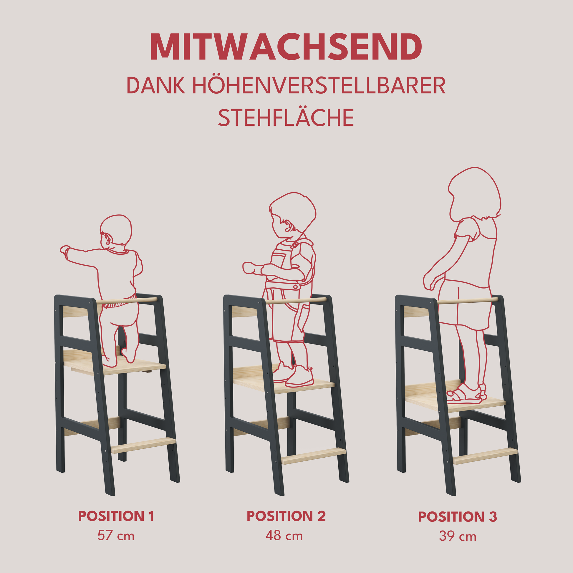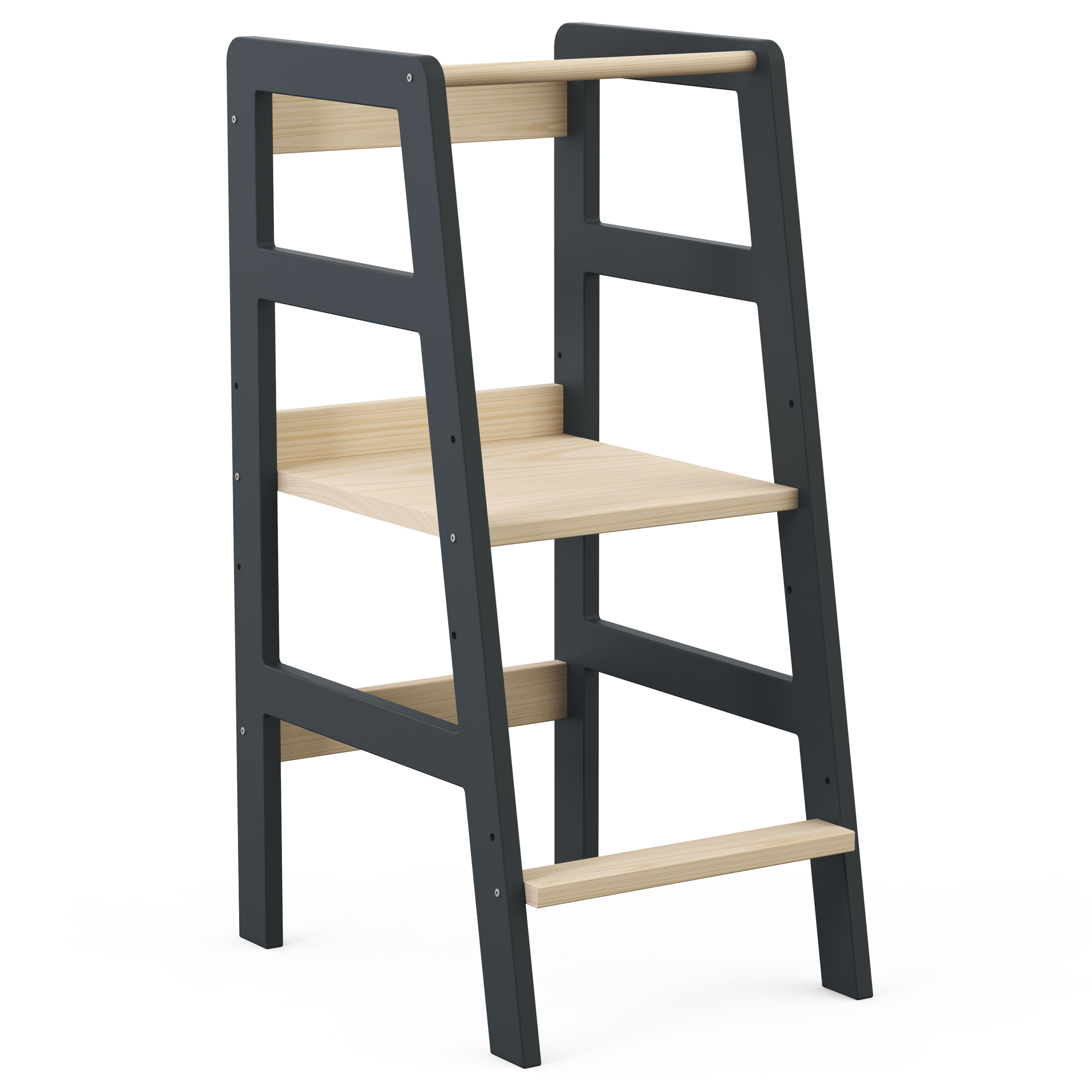 Milo Lernturm, Tritt 3-fach höhenverstellbar, grau/natur lackiert, Kiefer Massivholz