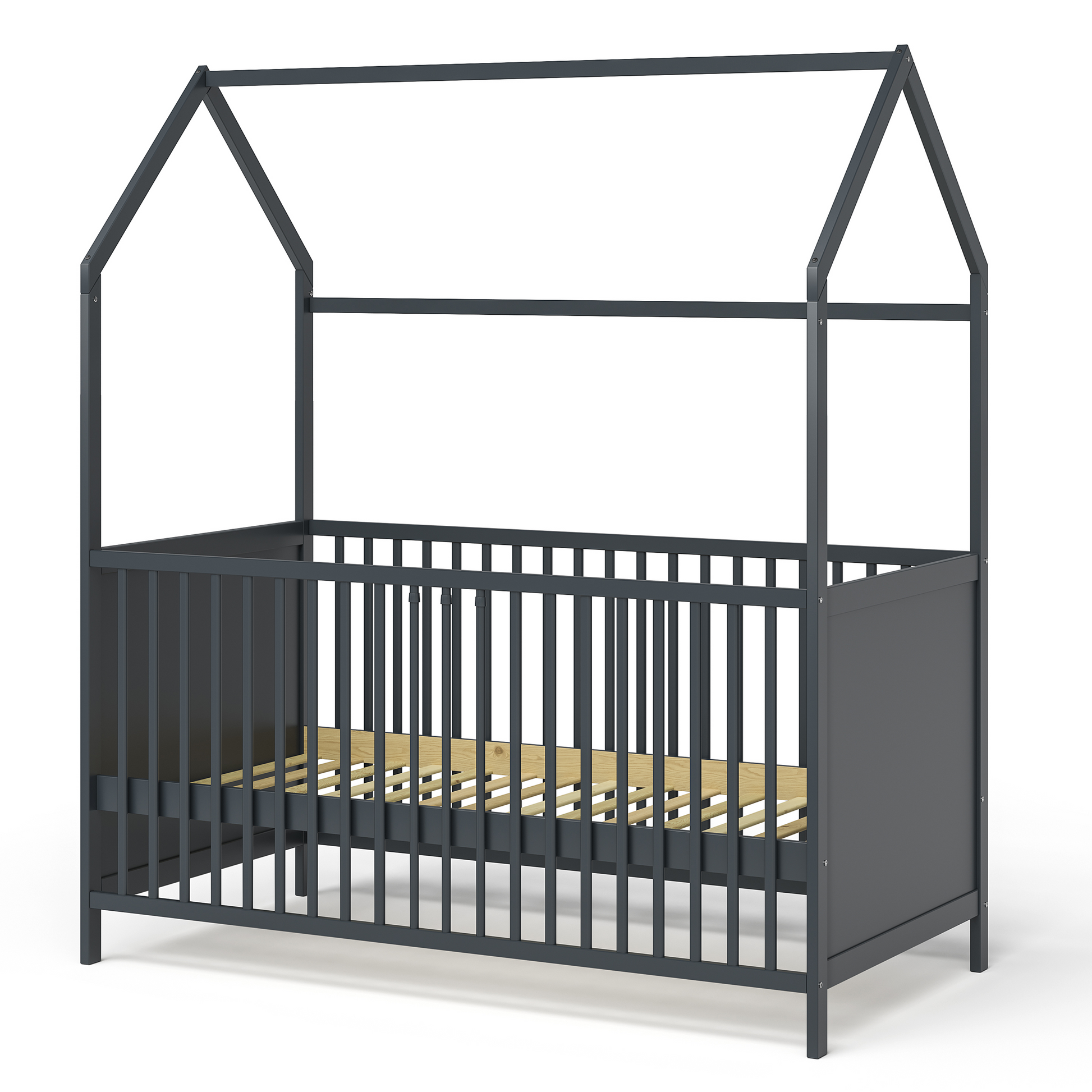 Nika Hausbett 70x140 cm, grau lackiert, Kiefer massiv, 3-fach höhenverstellbar, inkl. Lattenrost