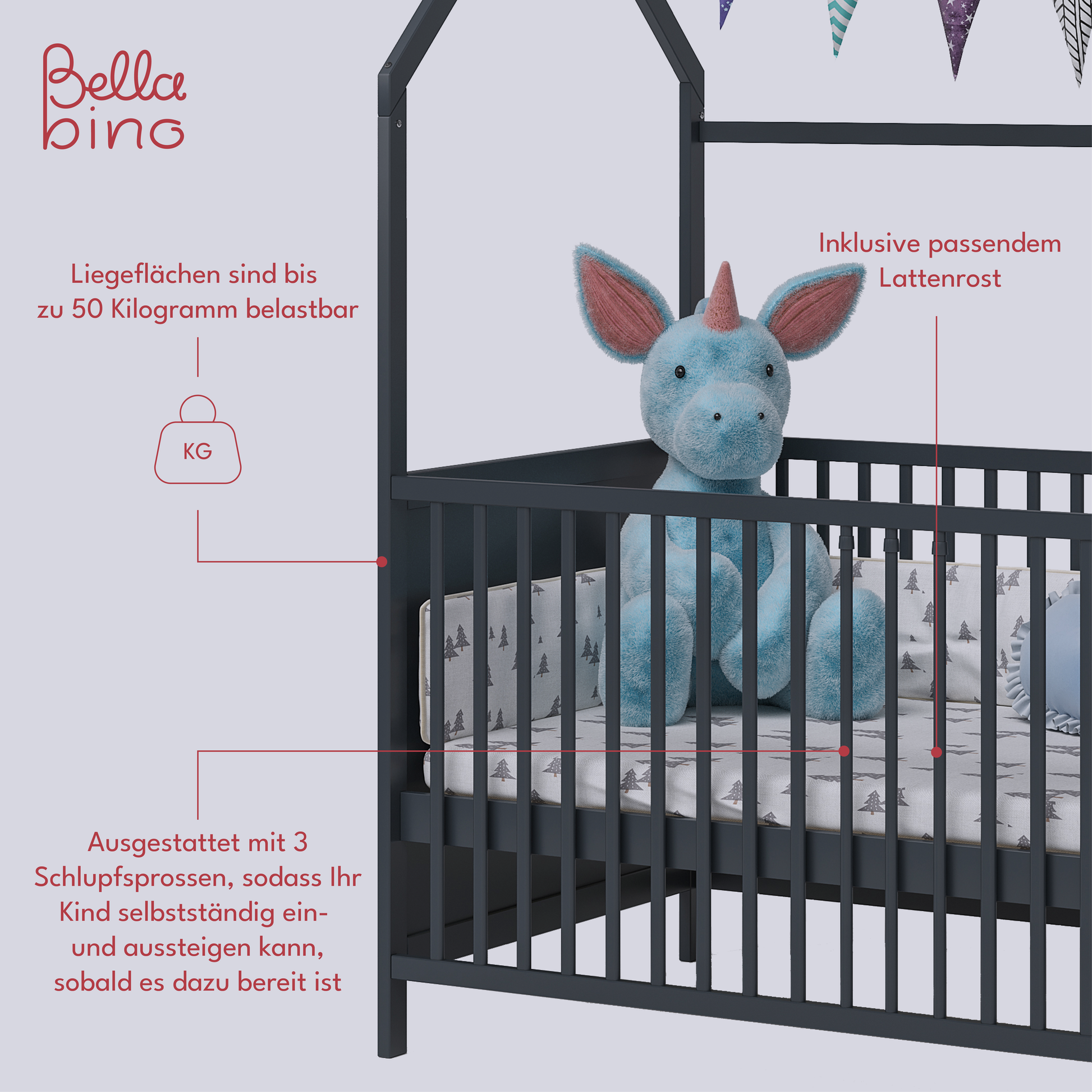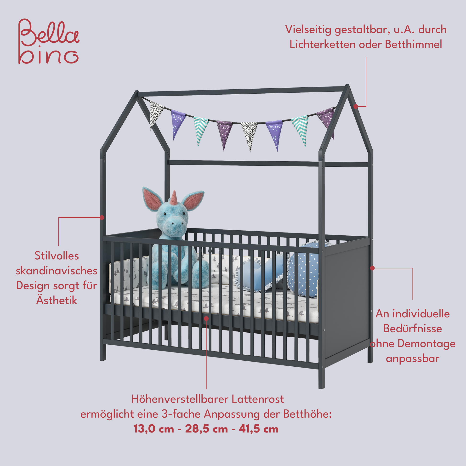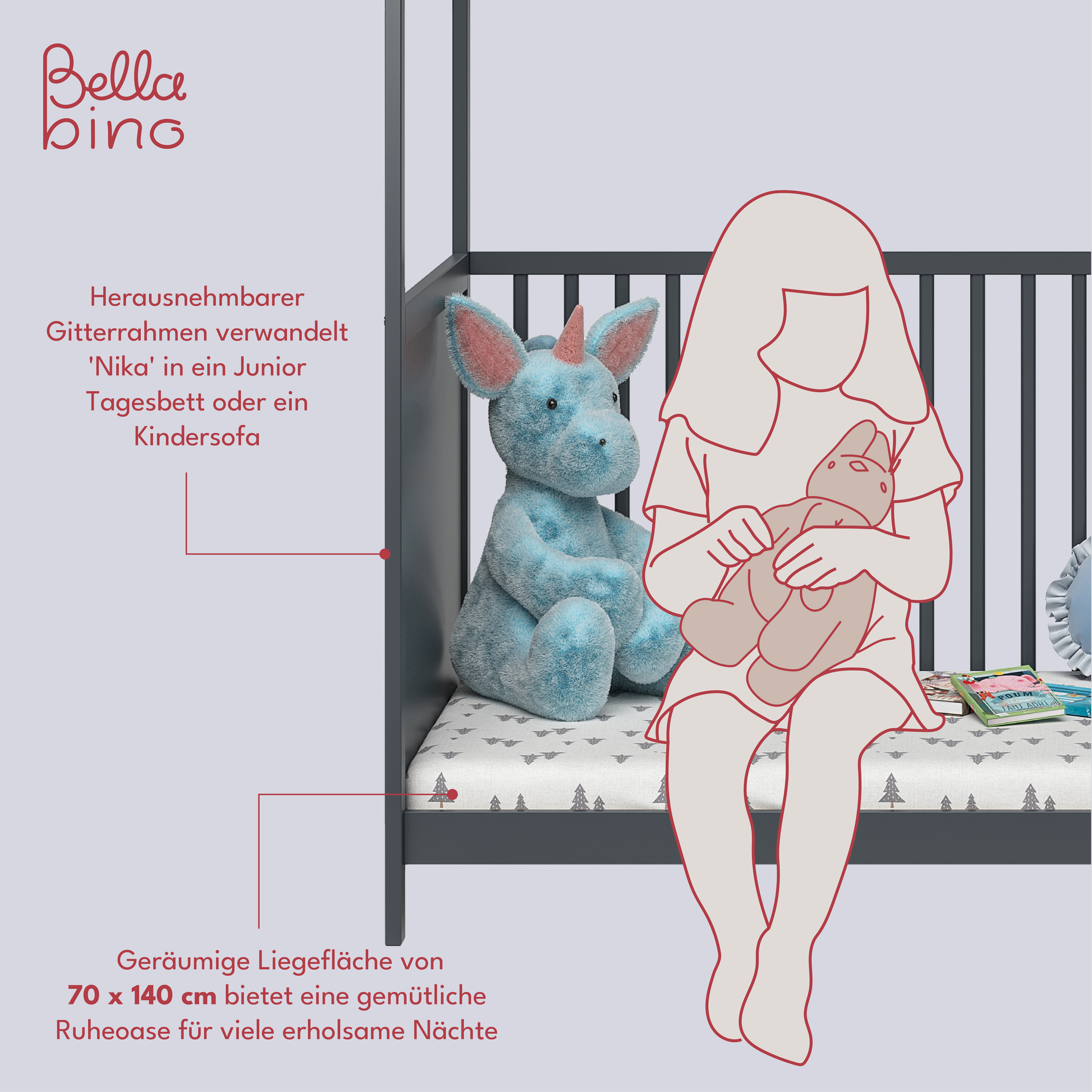 Mit seiner ausgefallenen Optik eines Kindeshauses bringt das Hausbett ‚Nika‘ von Bellabino einen Hauch Geborgenheit in jedes Babyzimmer. Durch sein modernes Design im skandinavischen Stil sorgt das Kinderbett für einen angenehmen Look und lässt sich mit der vorhandenen Einrichtung immer perfekt kombinieren.