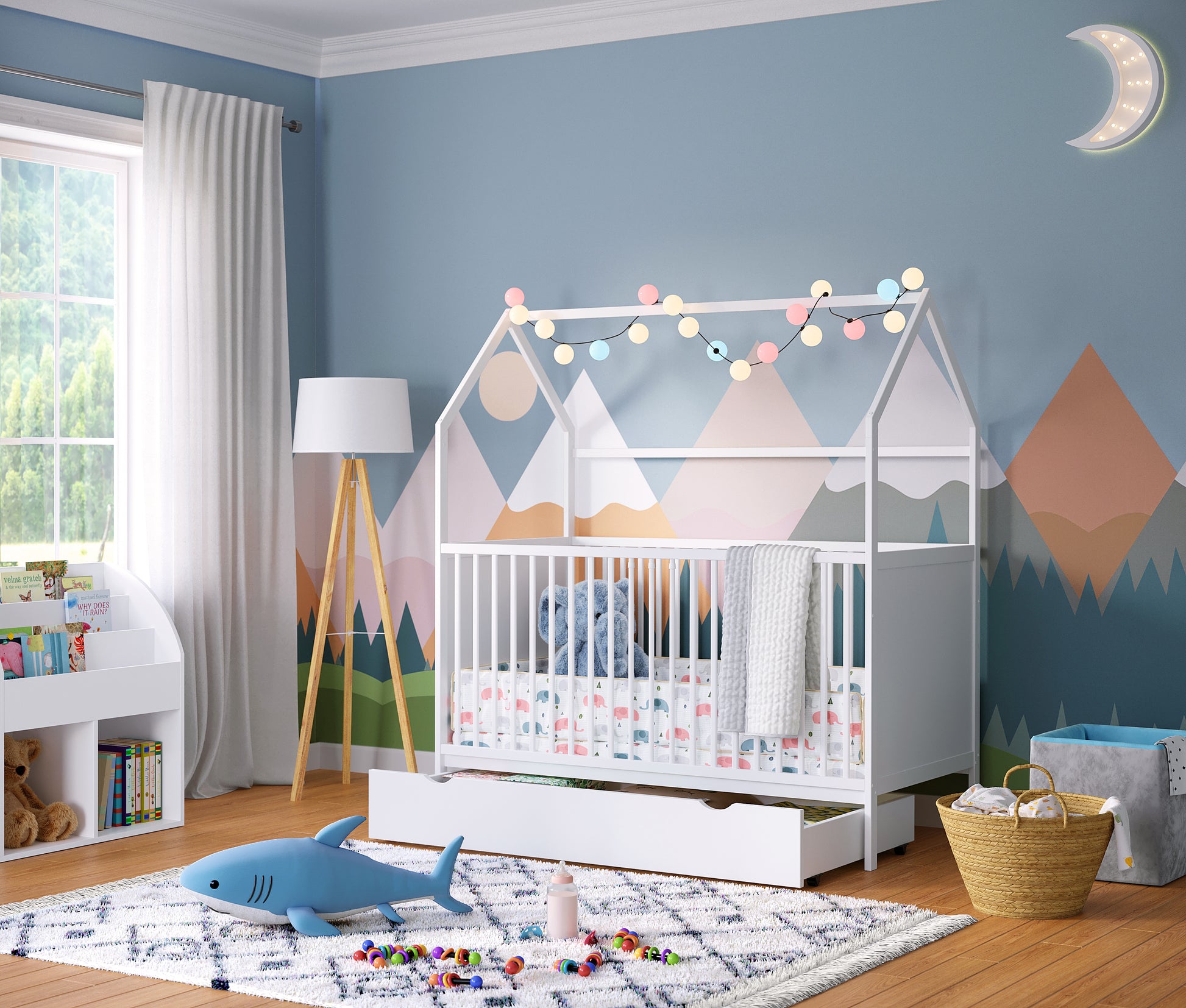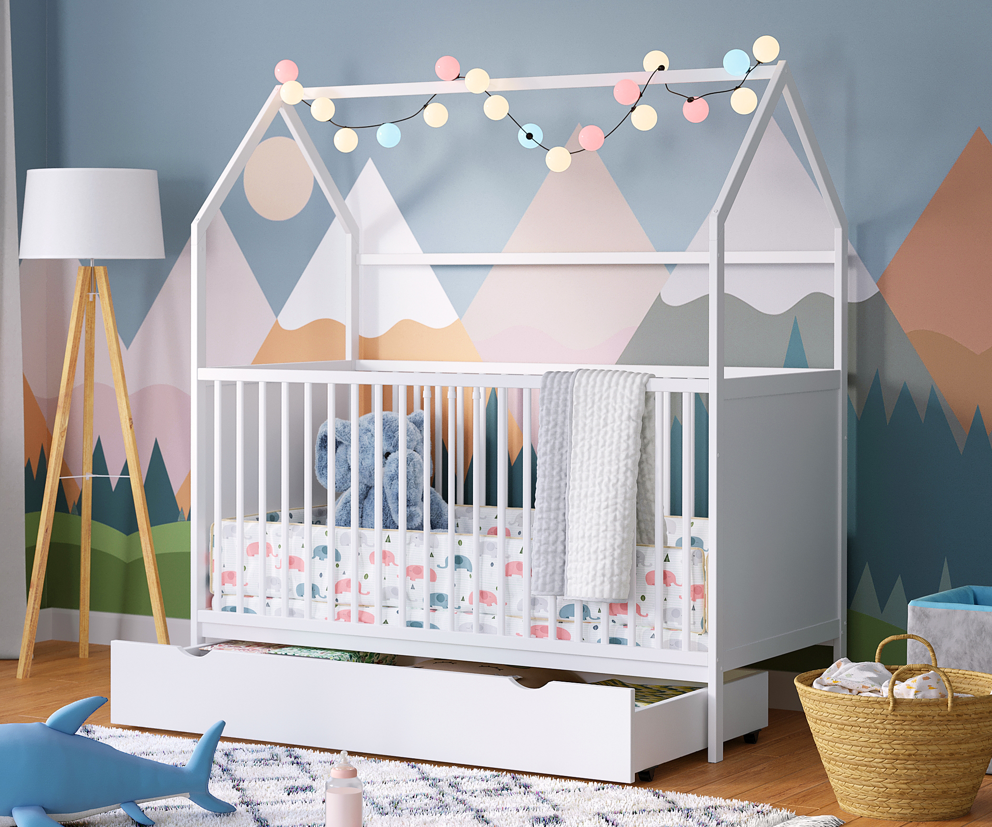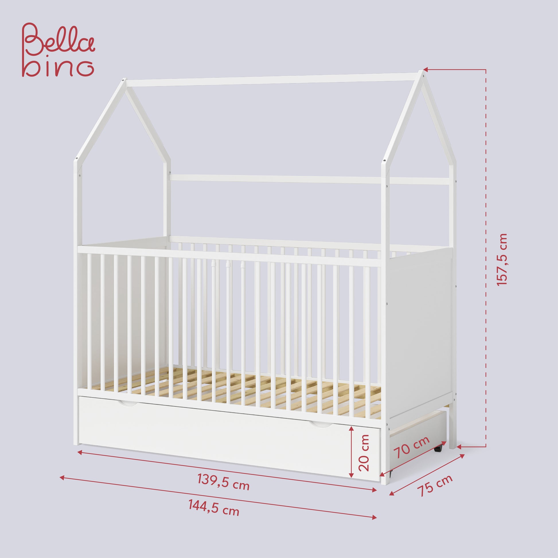 Mit 'Nika‘ bietet Bellabino ein modernes Babybett, das durch das ausgefallene Design jedes Kinderzimmer mit Stil und Geschmack bereichert. Das Bettchen in der Form eines gemütlichen Hauses zeichnet sich durch die skandinavische Optik aus und lässt sich mit diversen Einrichtungsstilen problemlos kombinieren.