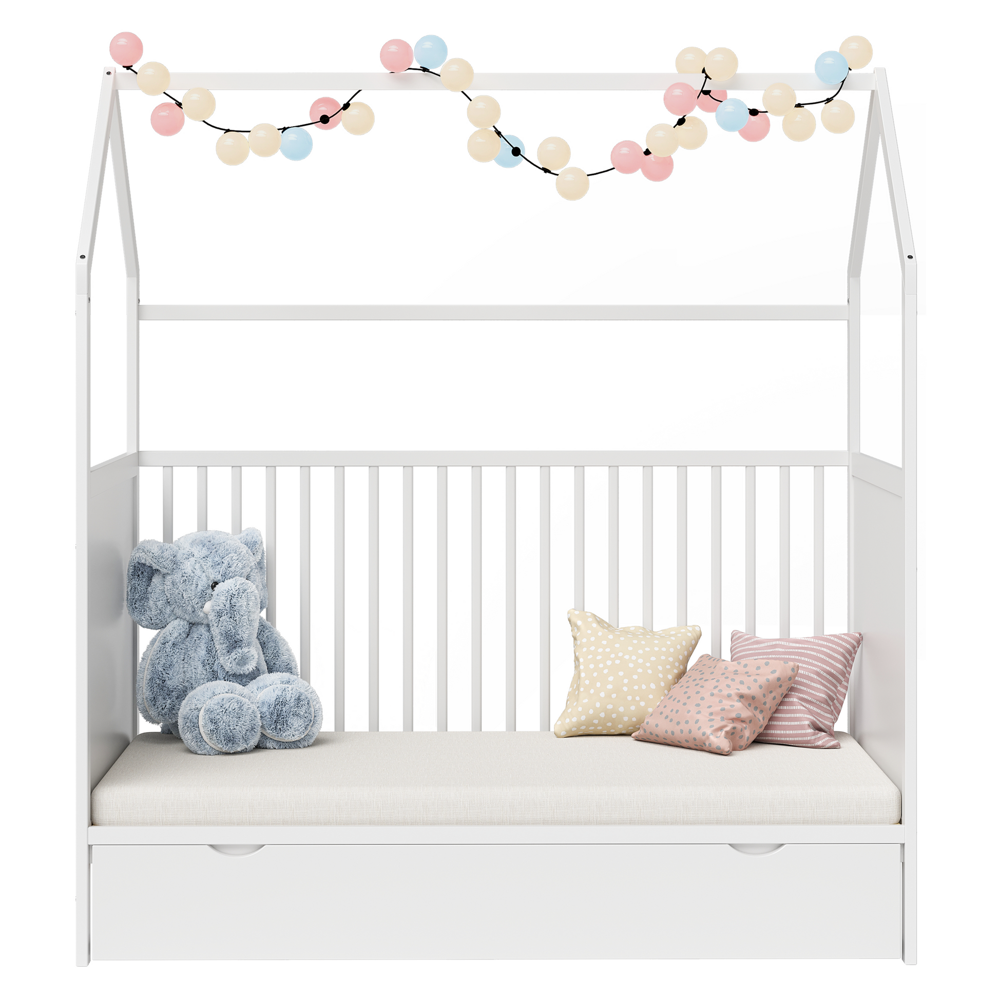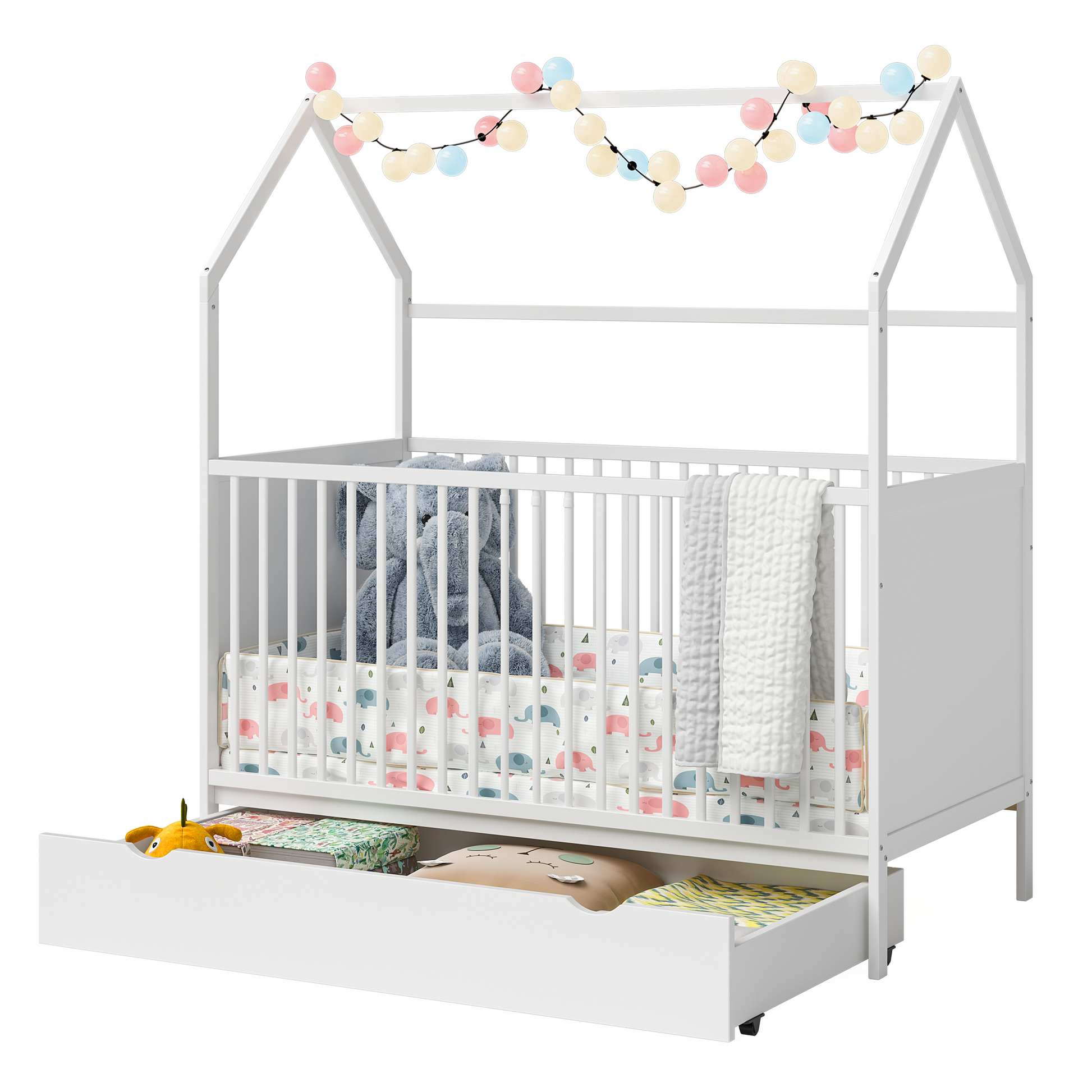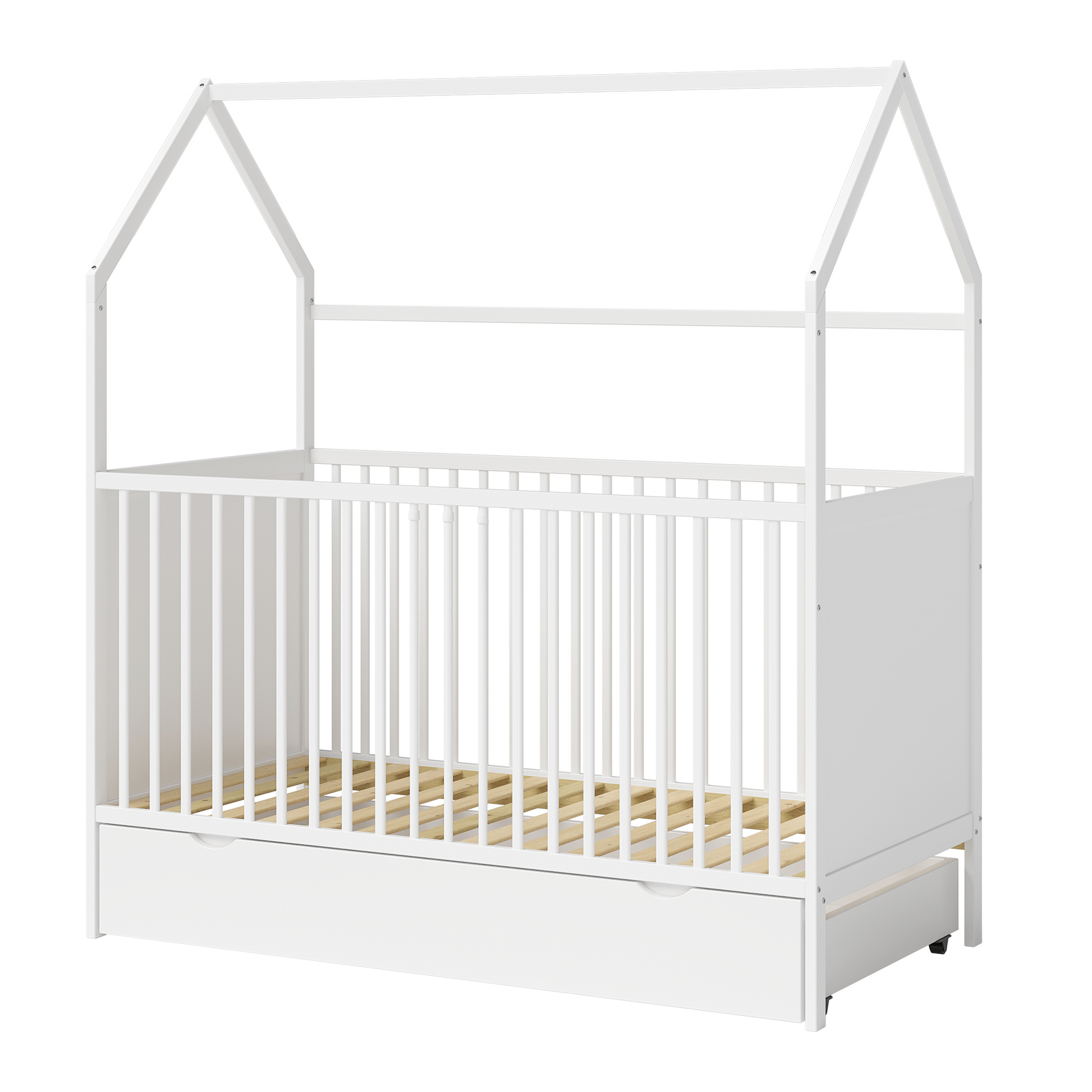 Nika Hausbett 70x140 cm mit Schublade, weiß lackiert, 3-fach höhenverstellbar, inkl. Lattenrost
