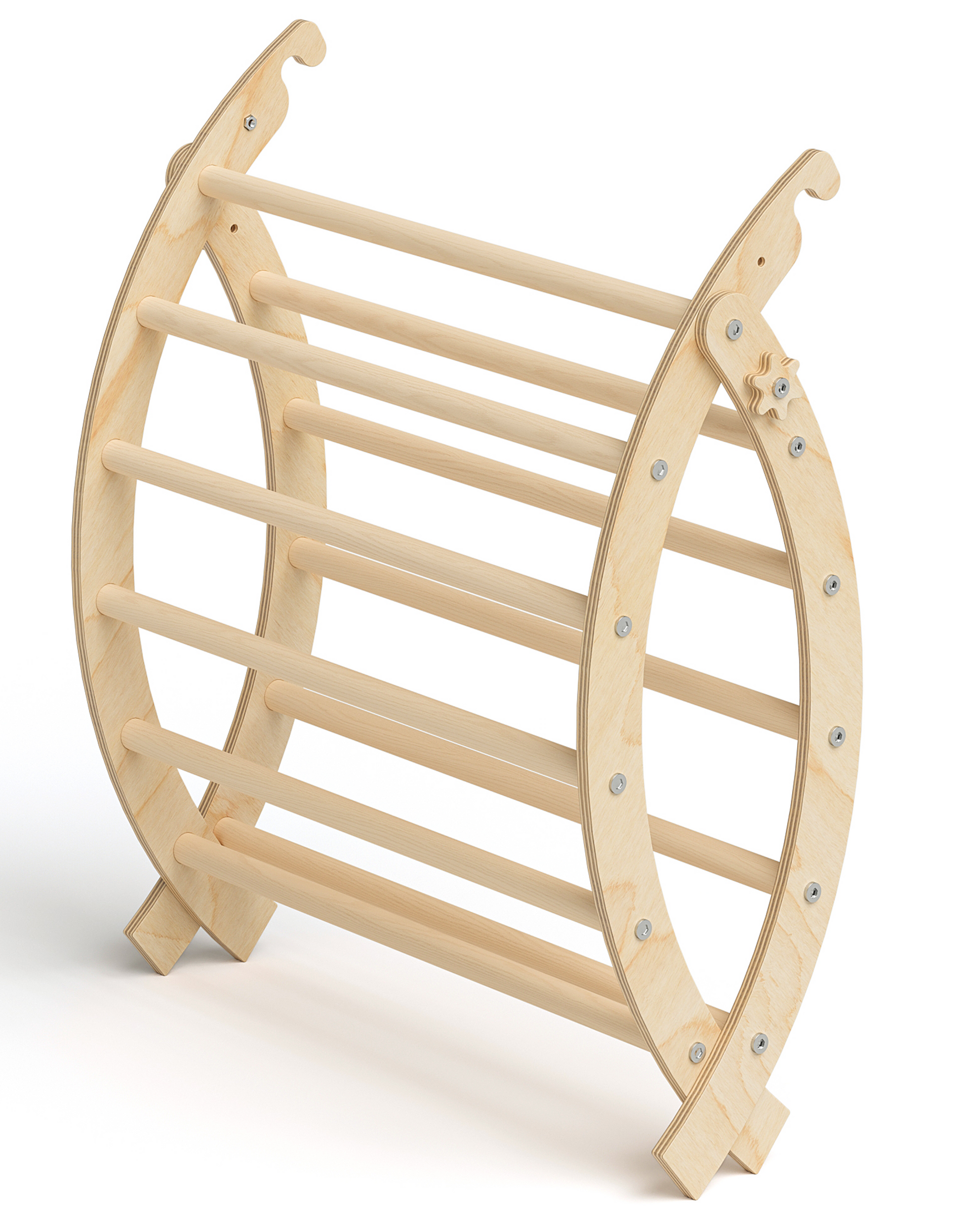 Kletterbogen und Wippe in Einem: Dank seiner flexiblen Bauweise bietet ‚Ruki‘ vom Hersteller Bellabino ein multifunktionales Spielzeug für Kinder ab einem Alter von 3 Jahren. 'Ruki' überzeugt durch die zahlreiche Spielmöglichkeiten, mit welchen die Kleinen ihre motorischen Fähigkeiten trainieren können. Einmal aufgeklappt, kann das Spielgerät als Kletterbogen genutzt werden: Hier kann das Kind seine Koordination üben und das Gleichgewicht verbessern. In einem Augenblick lässt sich 'Ruki' aber auch in eine ausgefallene Wippe verwandeln, mit der die Kleinen das Balancieren üben können.