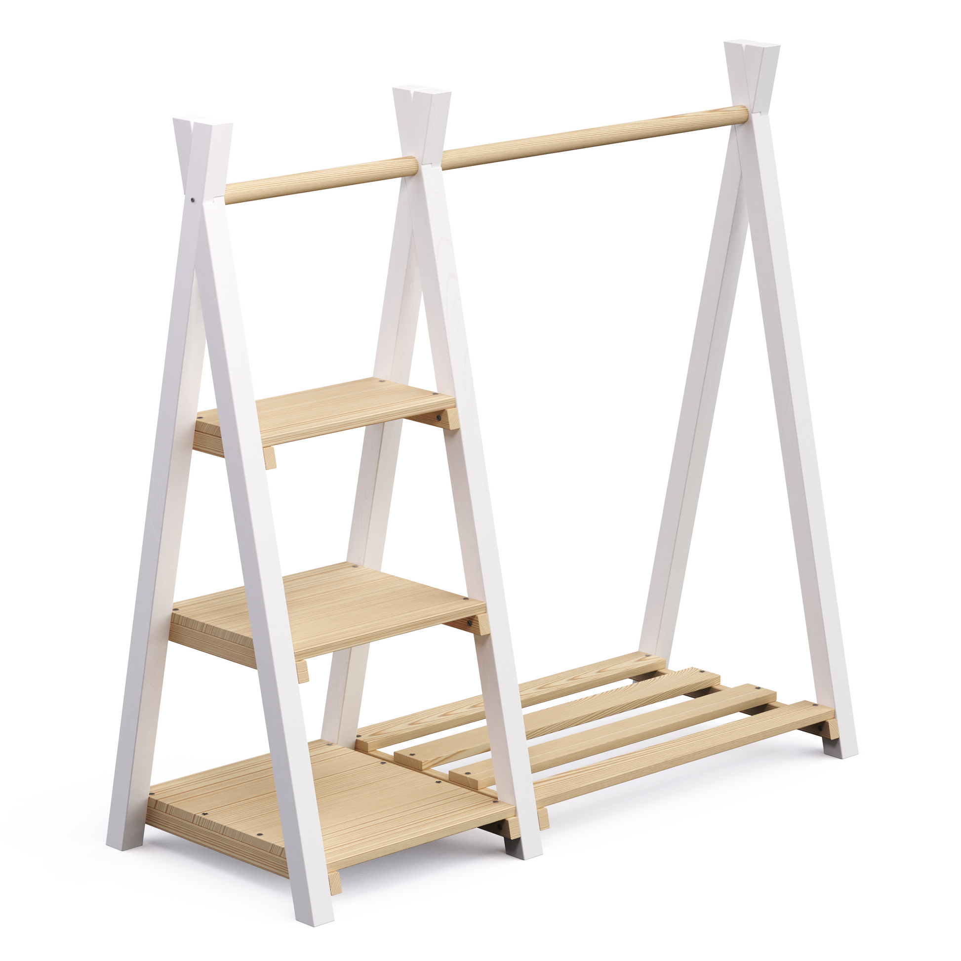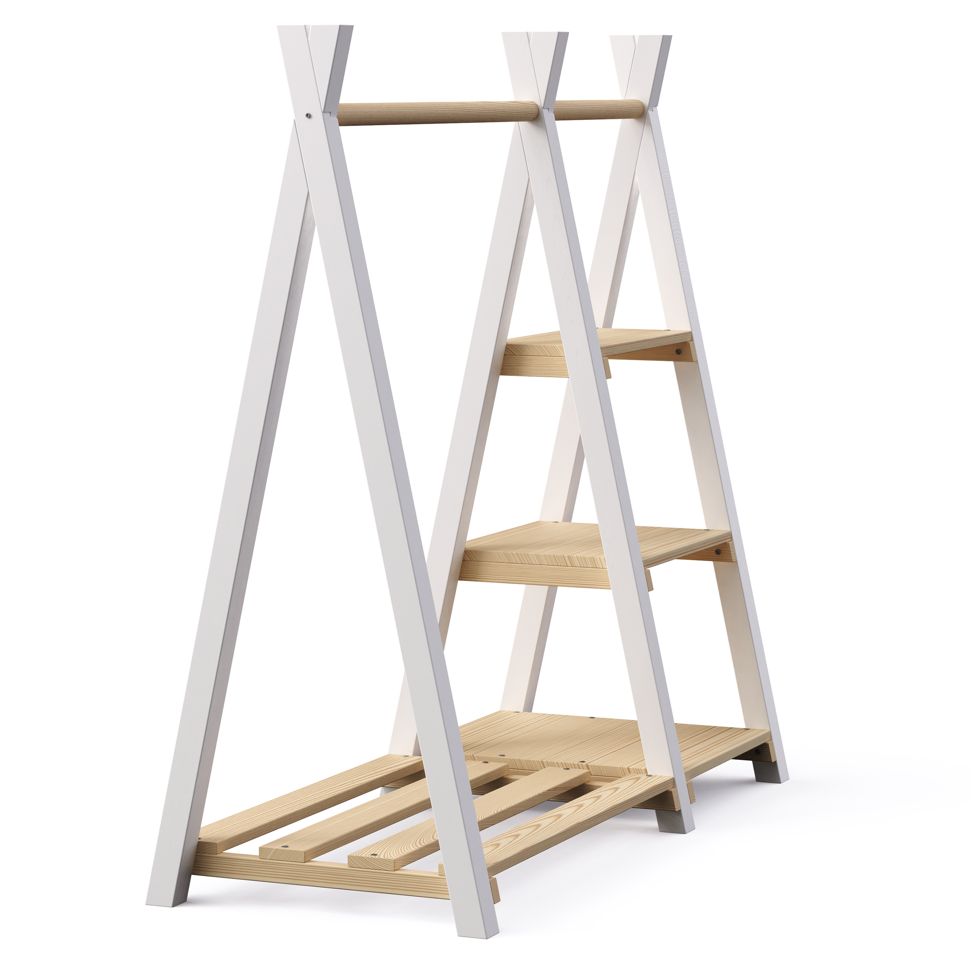 Ryck Tipi-Kleiderstange inkl. 3 Regalen und Schuhablagefläche, Kiefer massiv, natur/weiß