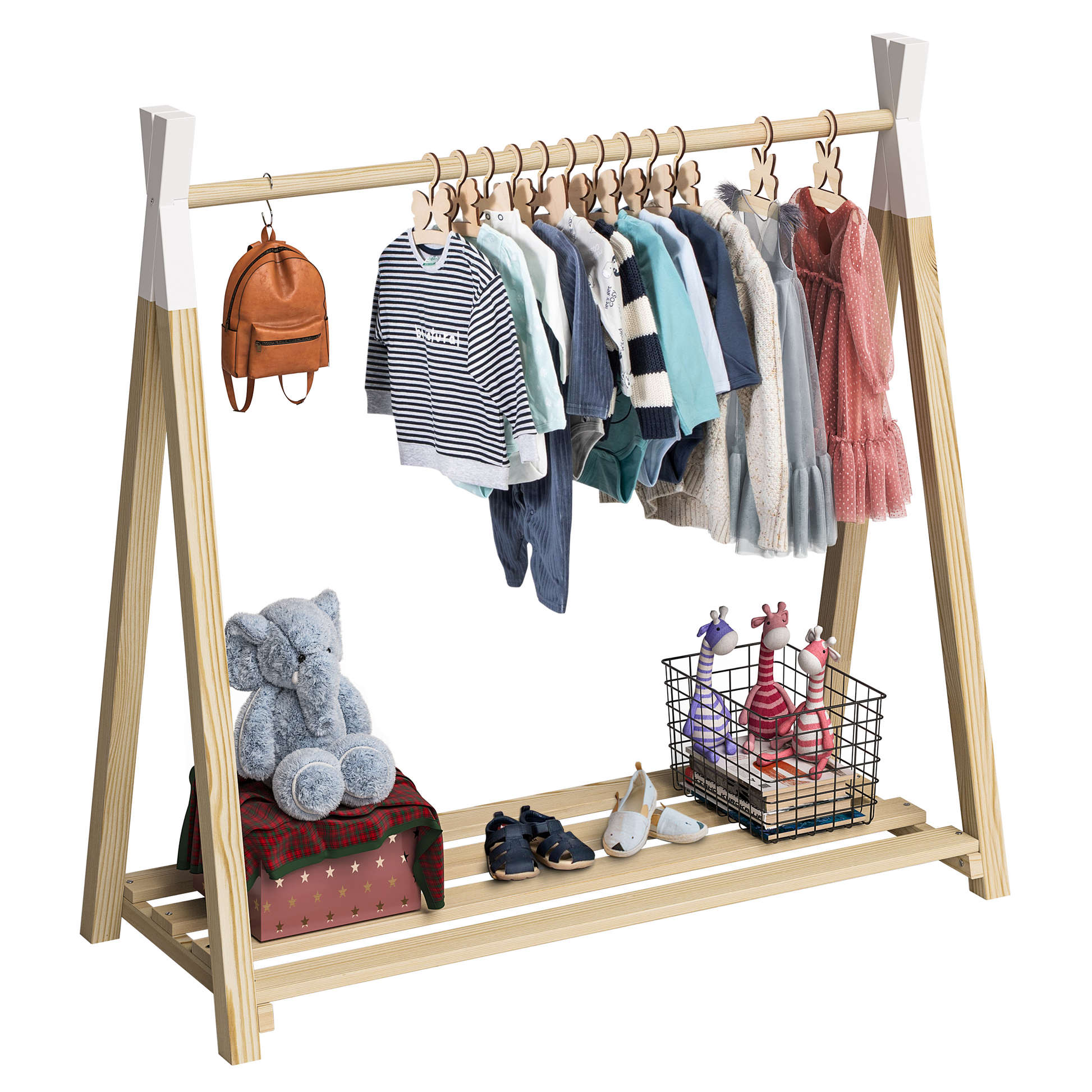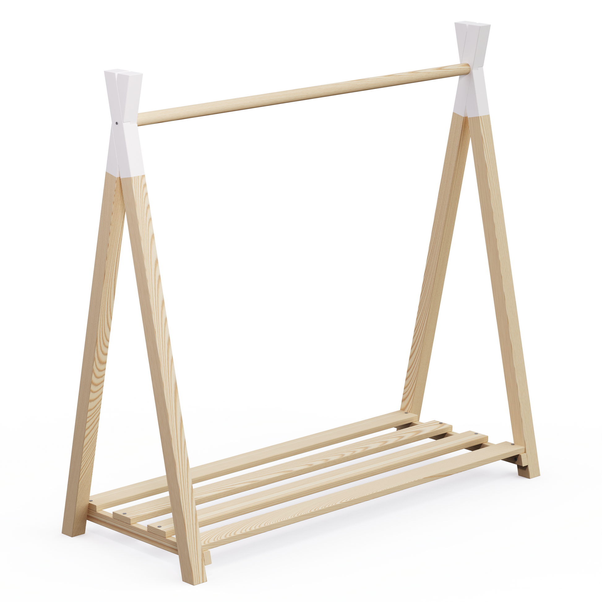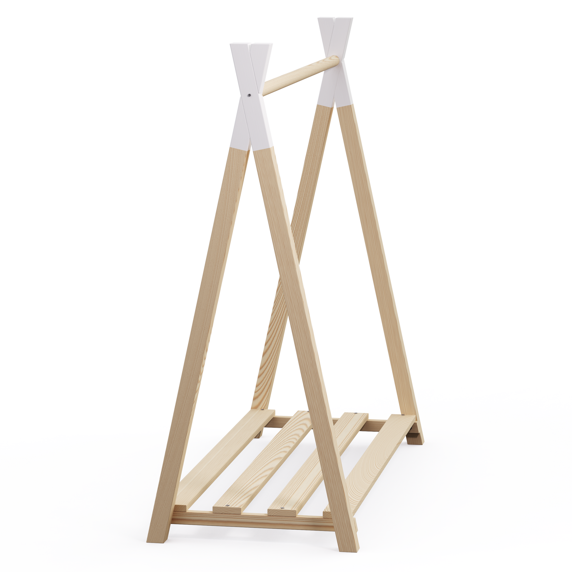 Ryck Tipi-Kleiderstange inkl. Schuhablagefläche, Kiefer massiv, natur mit weißen Spitzen