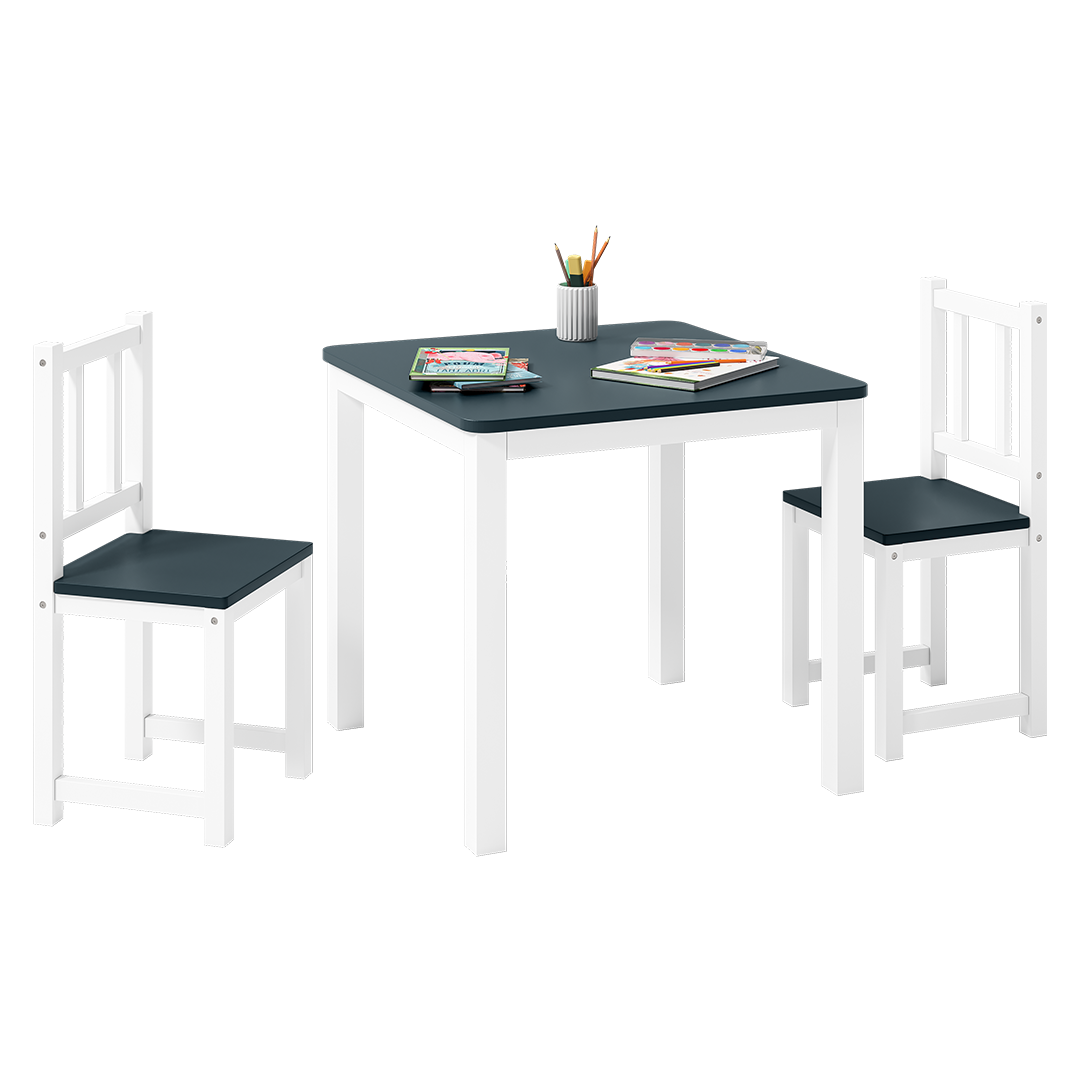 Sora Kindersitzgarnitur, 2x Stuhl und 1x Tisch, weiß/anthrazit, Kiefer, ab 2 Jahren