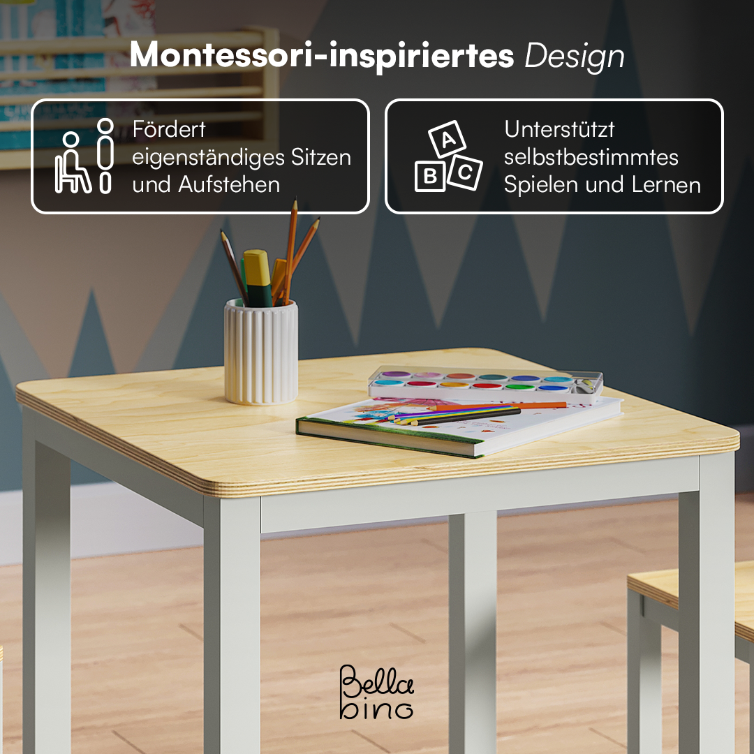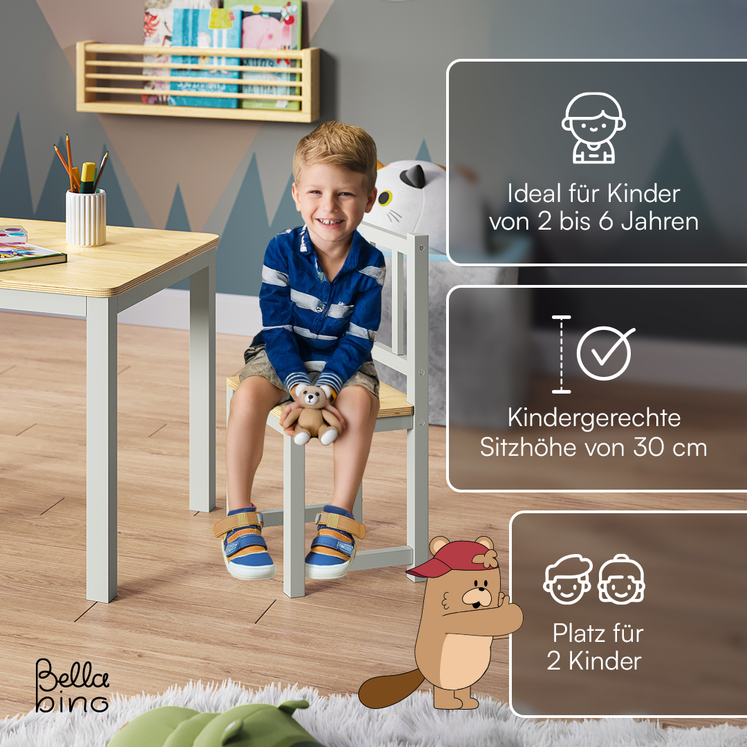 Sora Kindersitzgarnitur, grau/natur, 2x Stuhl und 1x Tisch