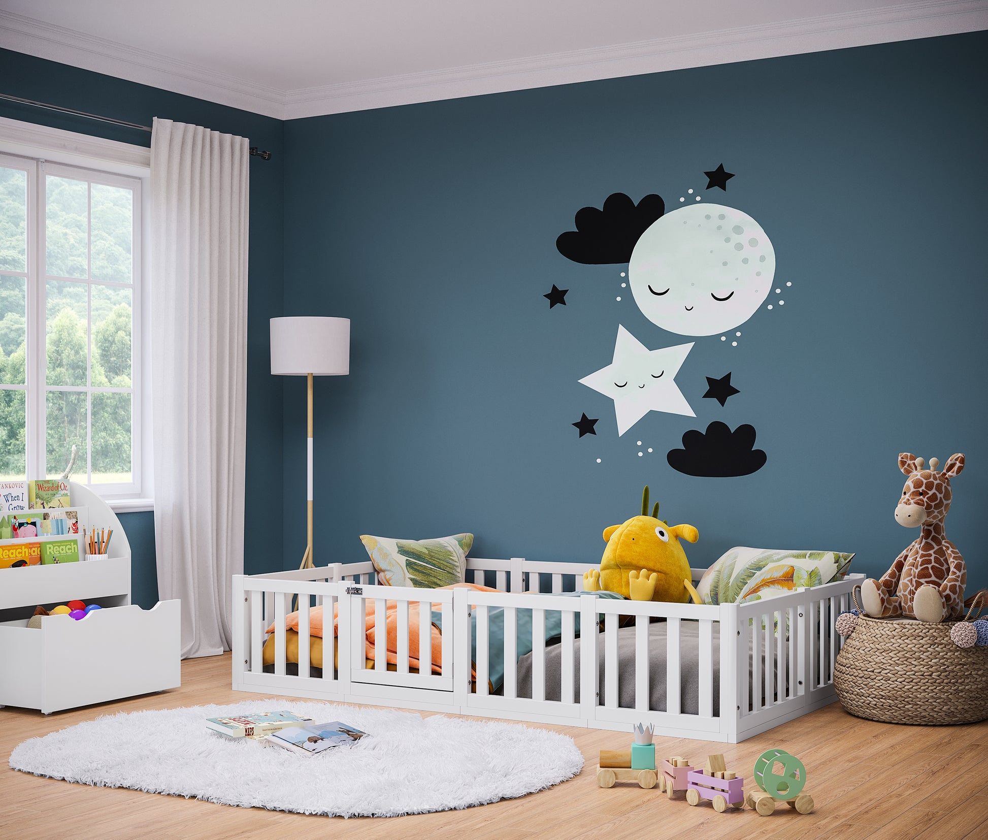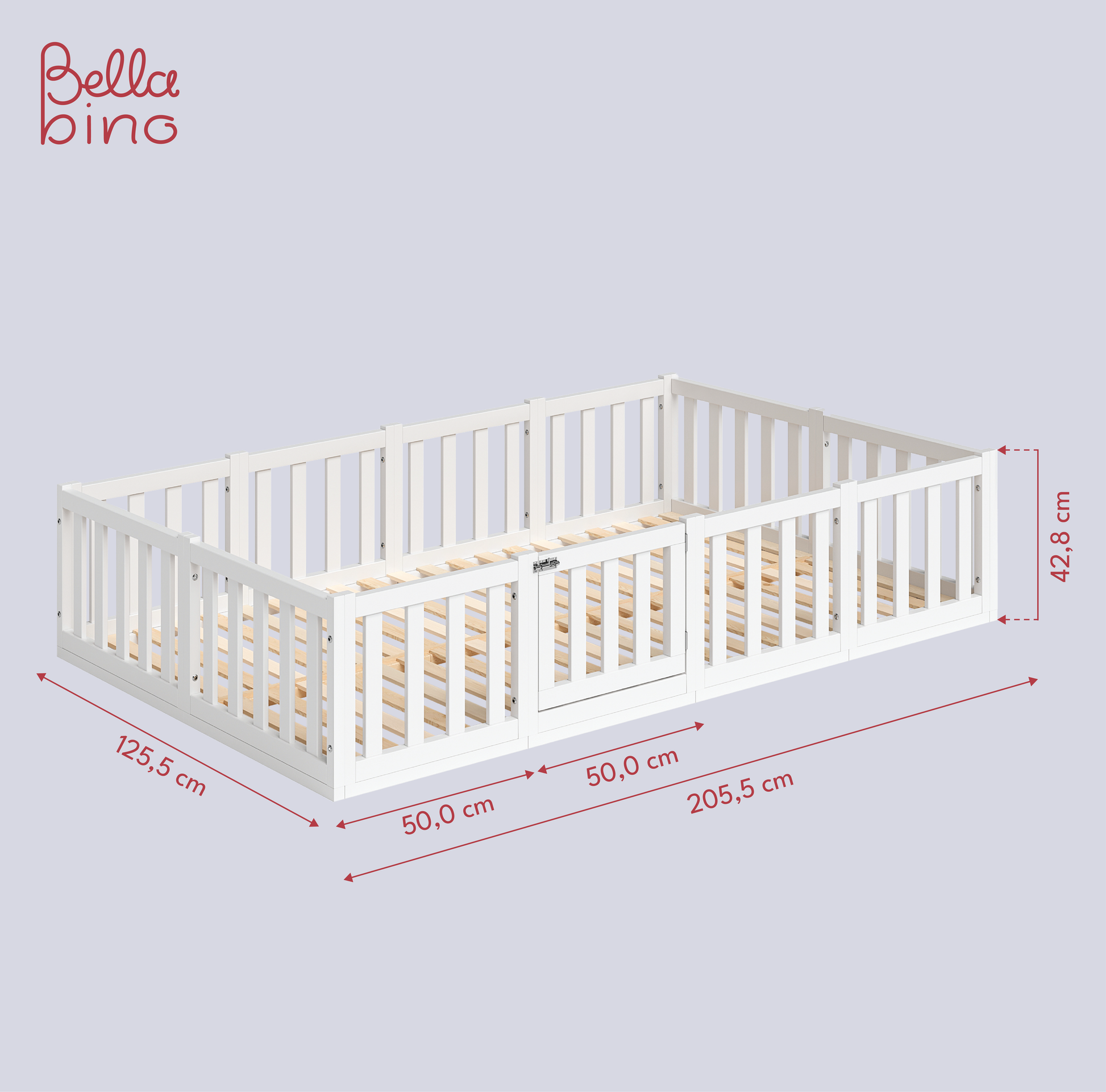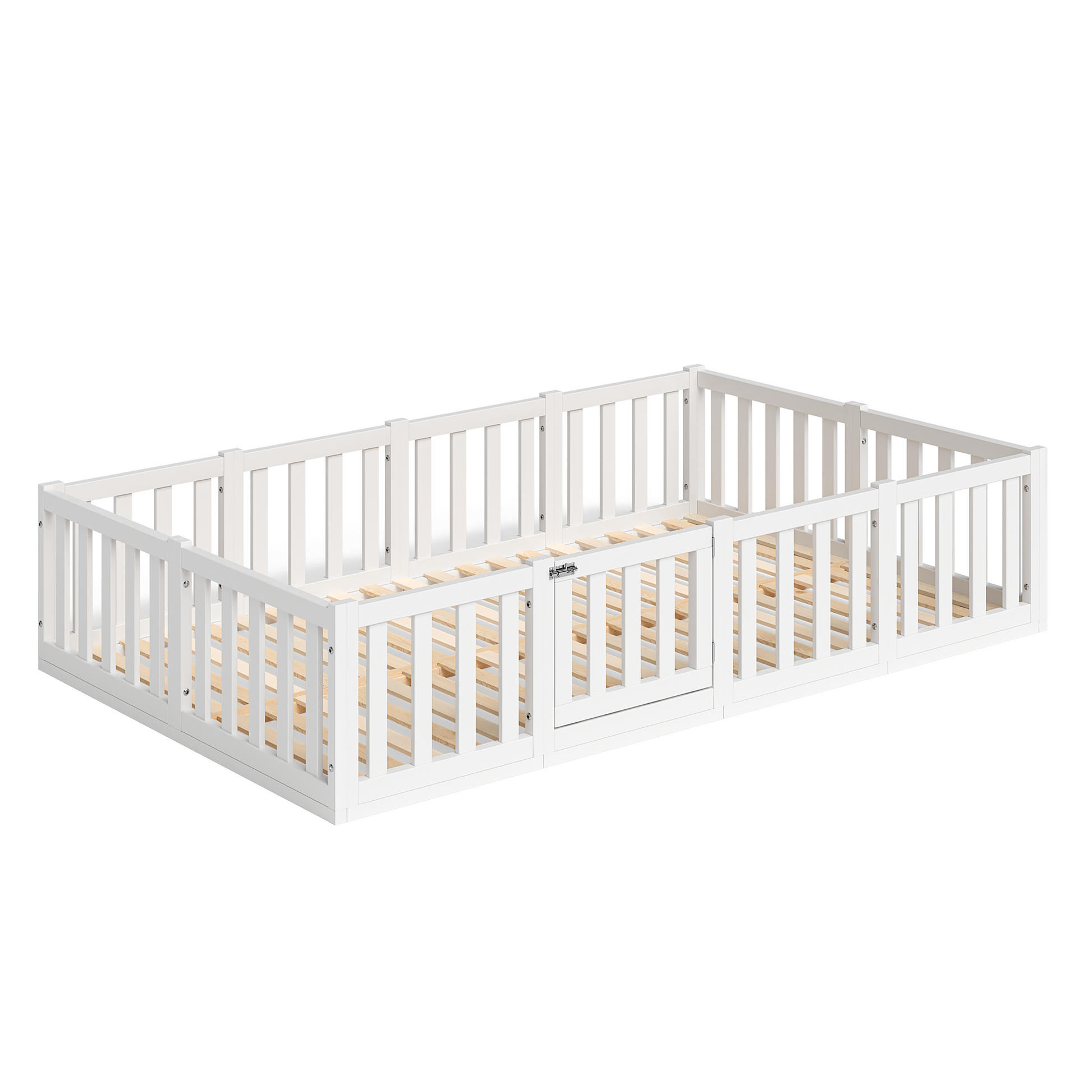 - Lieferumfang: Bodenbett inkl. Rausfallschutz mit Tür und Lattenrost