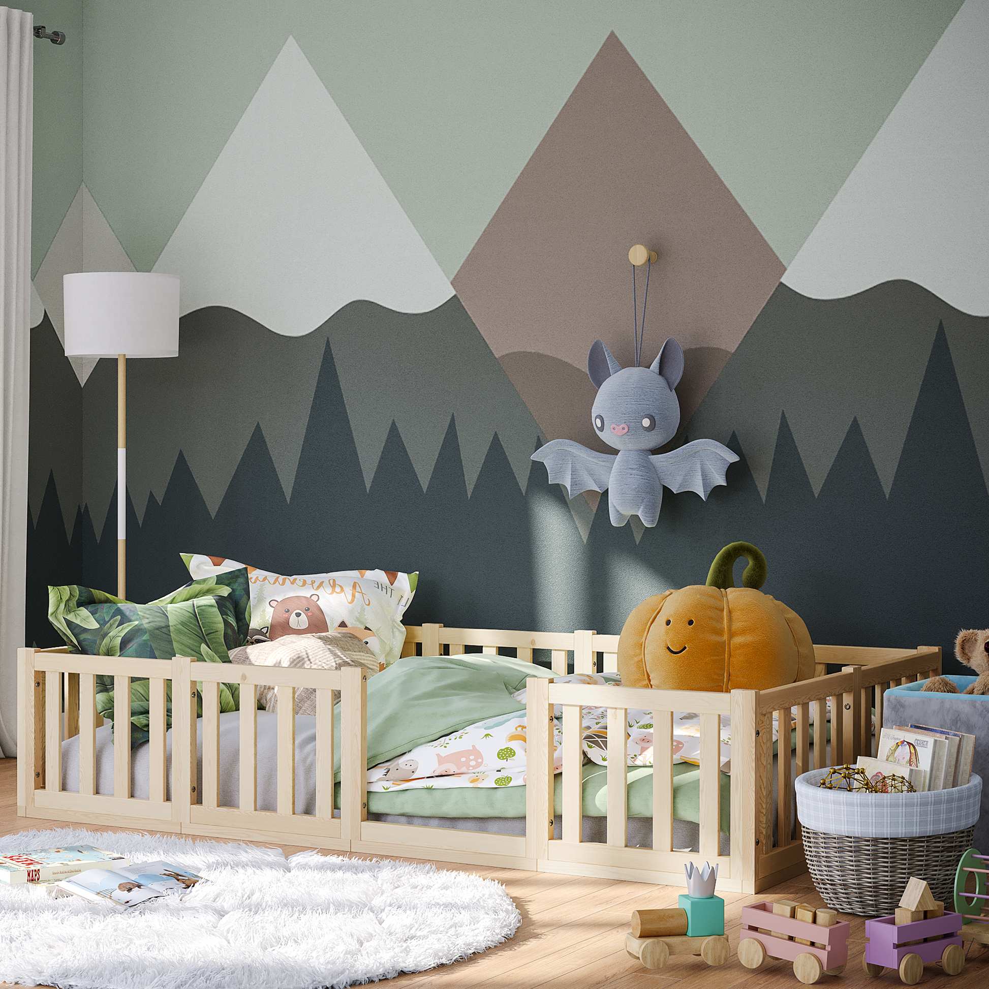 Das Bodenbett 'Tapi' von Bellabino bietet eine behagliche und funktionale Schlaflösung für Kinder, die sich frei und eigenständig in ihrem Zimmer bewegen möchten. 'Tapi' wird direkt auf dem Boden platziert, sodass das Bett eine niedrige Höhe aufweist. Dadurch kann das Kind die Liegefläche eigenständig nutzen und braucht beim Ein- und Aussteigen nicht mehr die Hilfe von Mama und Papa.