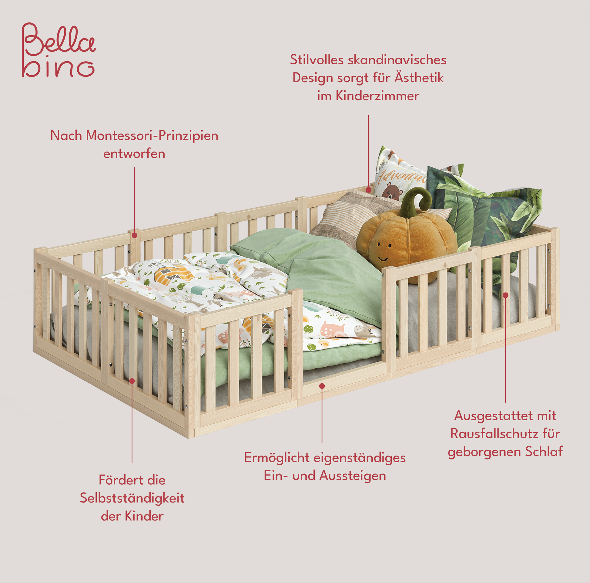 - Lieferumfang: Bodenbett inkl. Rausfallschutz und Lattenrost