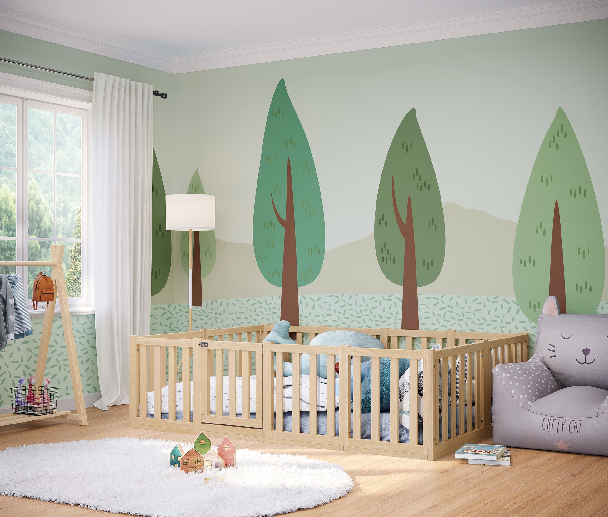 Um den Kleinen einen erholsamen Schlaf zu schenken, verfügt das Bett über eine geräumige Liegefläche von 140 x 200 cm, die bereits mit einem passenden Lattenrost ausgestattet ist. Das Bett ist zudem mit einem extra hohen Rausfallschutz ausgestattet, der für die nötige Sicherheit während des Schlafes sorgt. Eine kleine Tür an der Längsseite erleichtert zudem den Zugang zur Liegefläche und garantiert ein einfaches Ein- und Aussteigen. Weiterhin ist das Bodenbett 'Tapi' bis 120 kg belastbar.