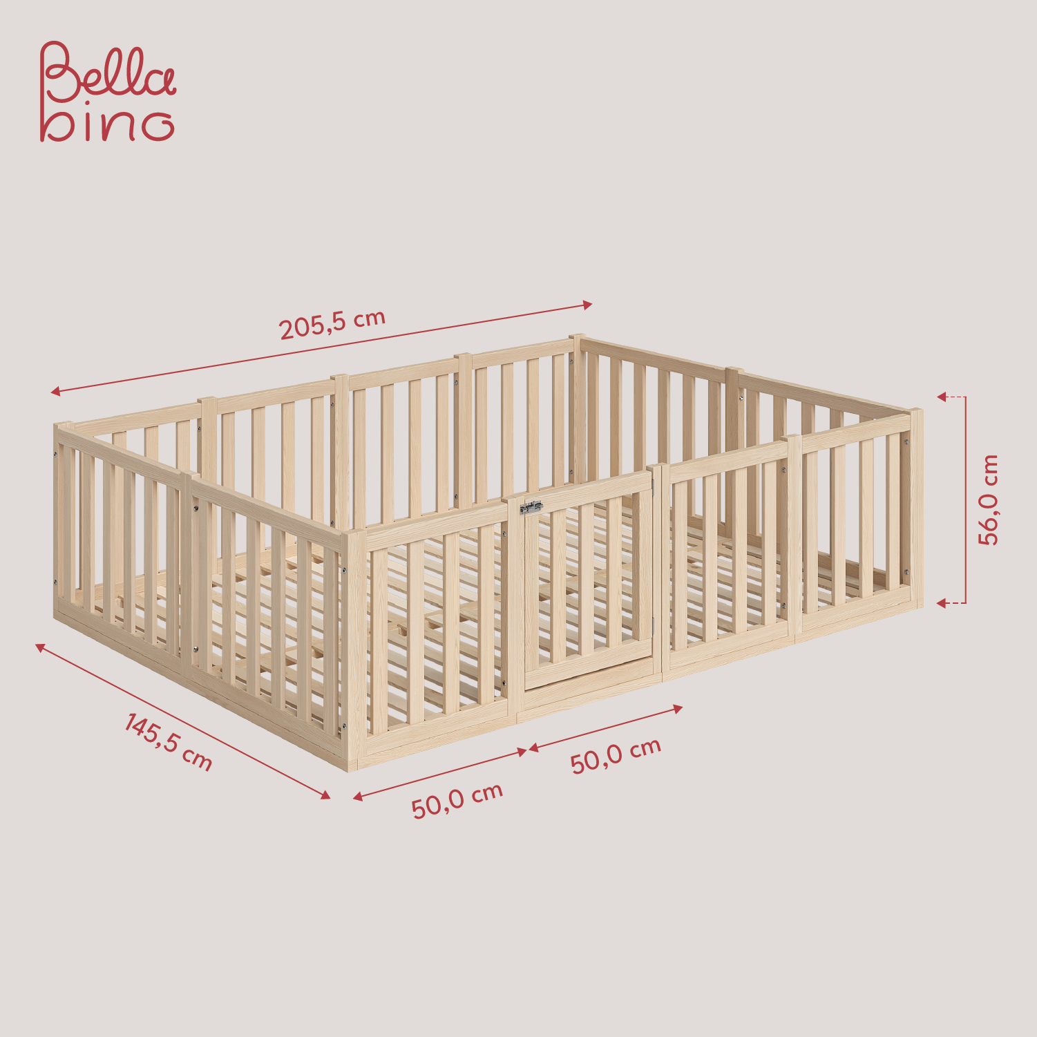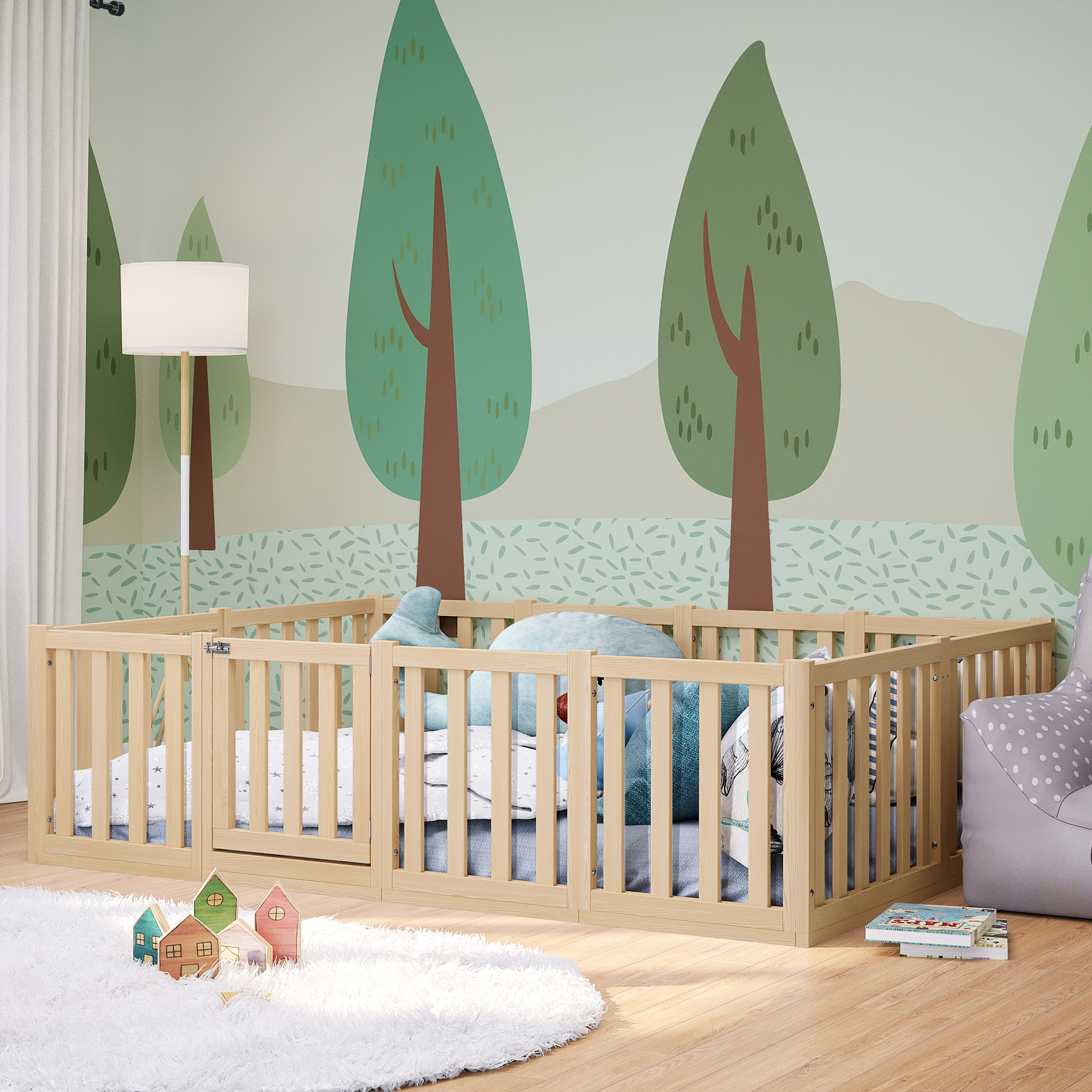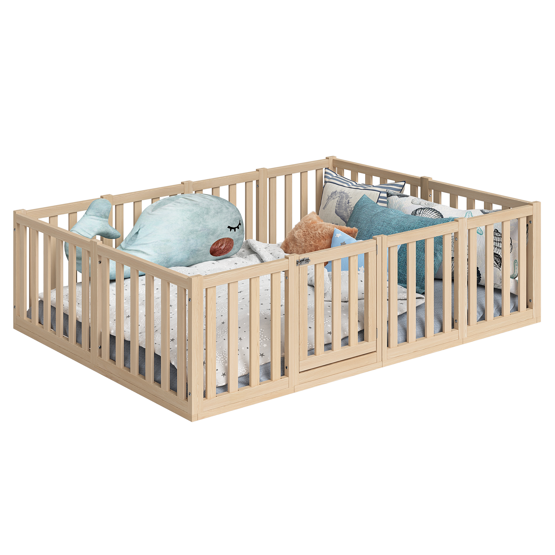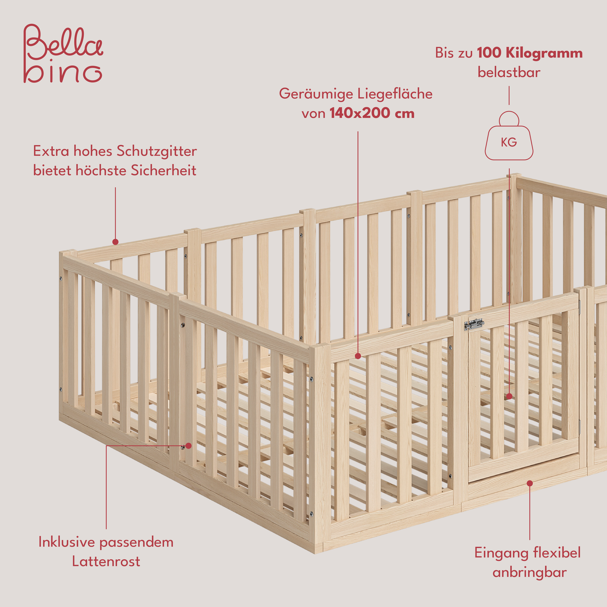 Tapi Bodenbett 140x200 cm mit extra hohem Gitter, mit Tür, natur lackiert, Kiefer massiv, inkl. Lattenrost