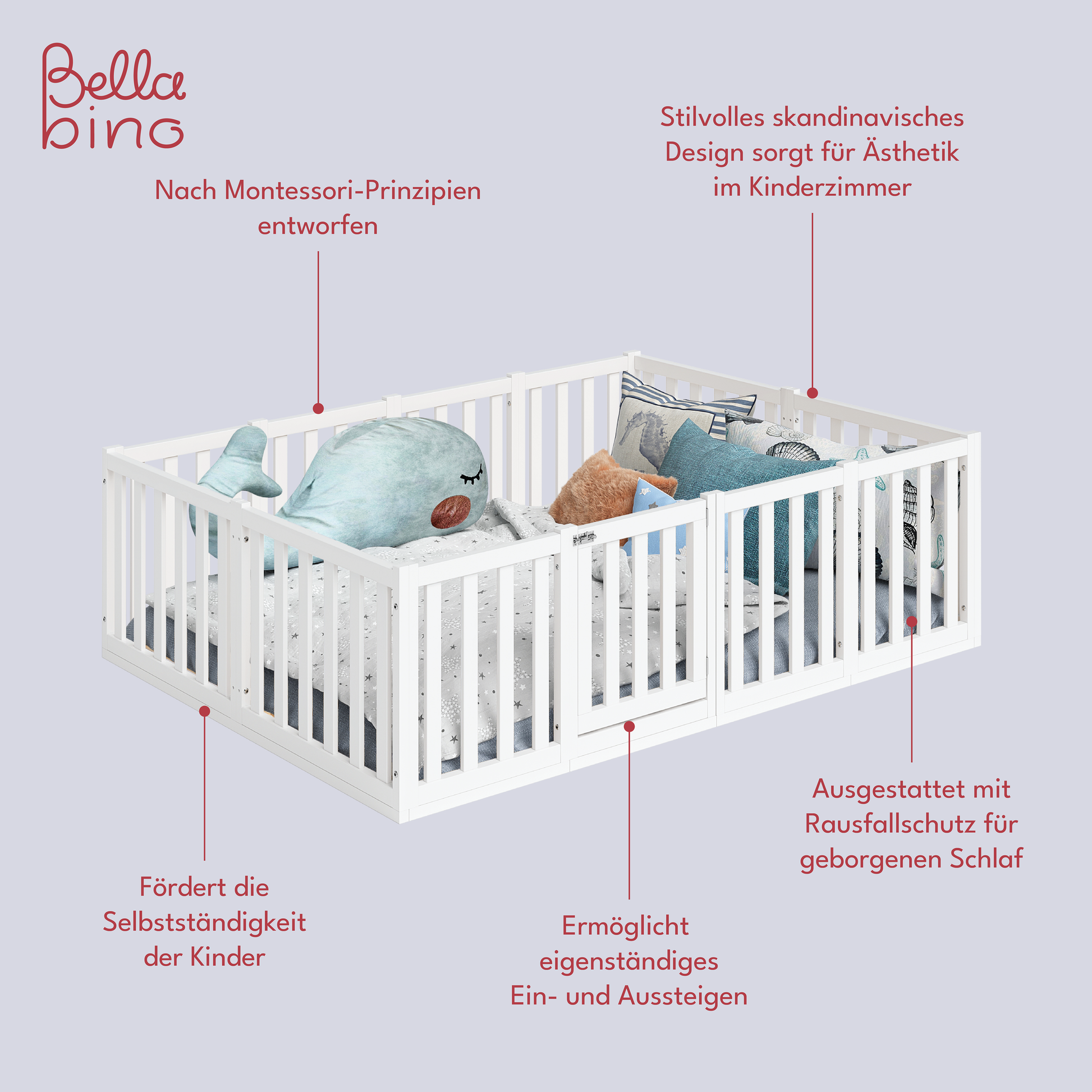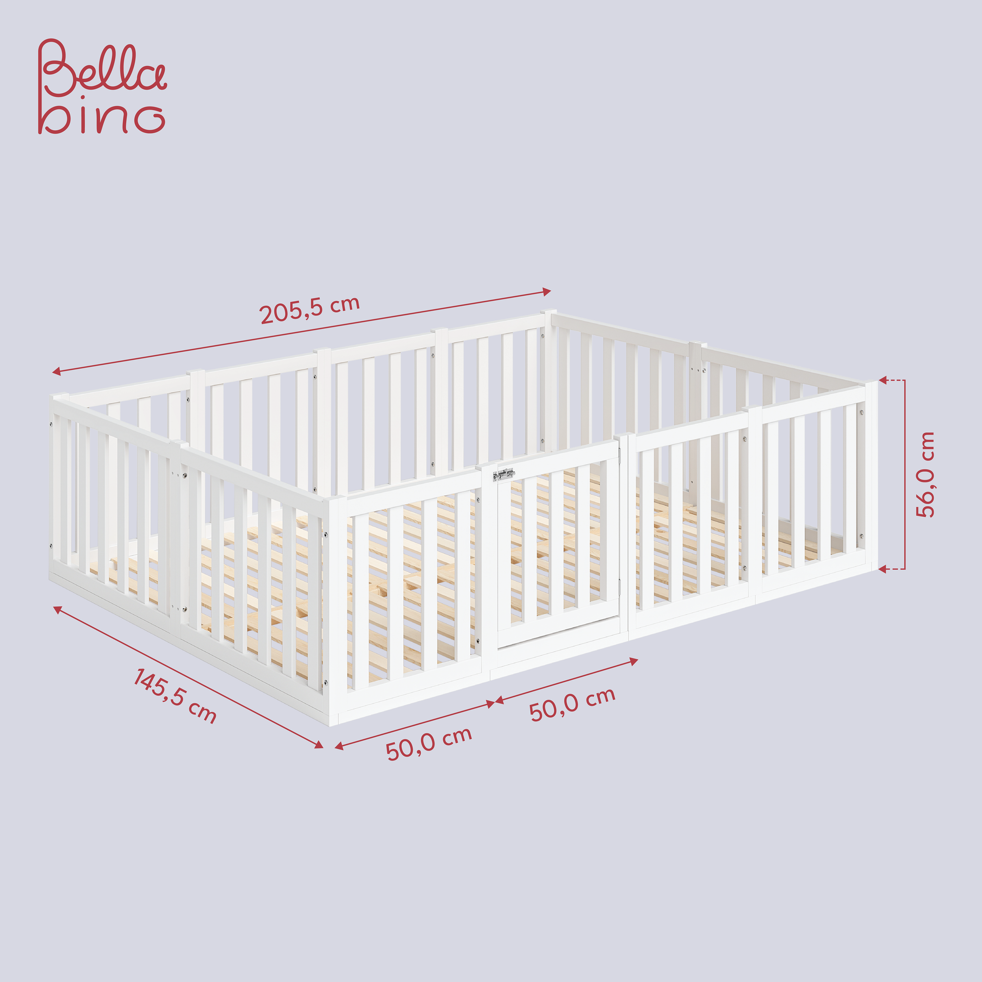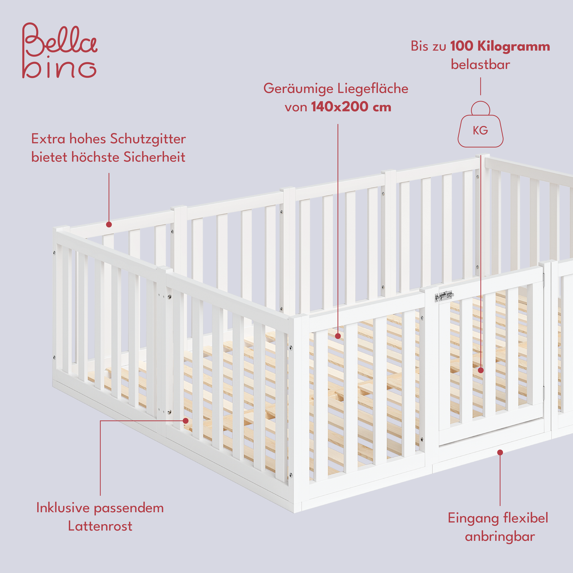 Tapi Bodenbett 140x200 cm mit extra hohem Gitter, mit Tür, weiß lackiert, Kiefer massiv, inkl. Lattenrost