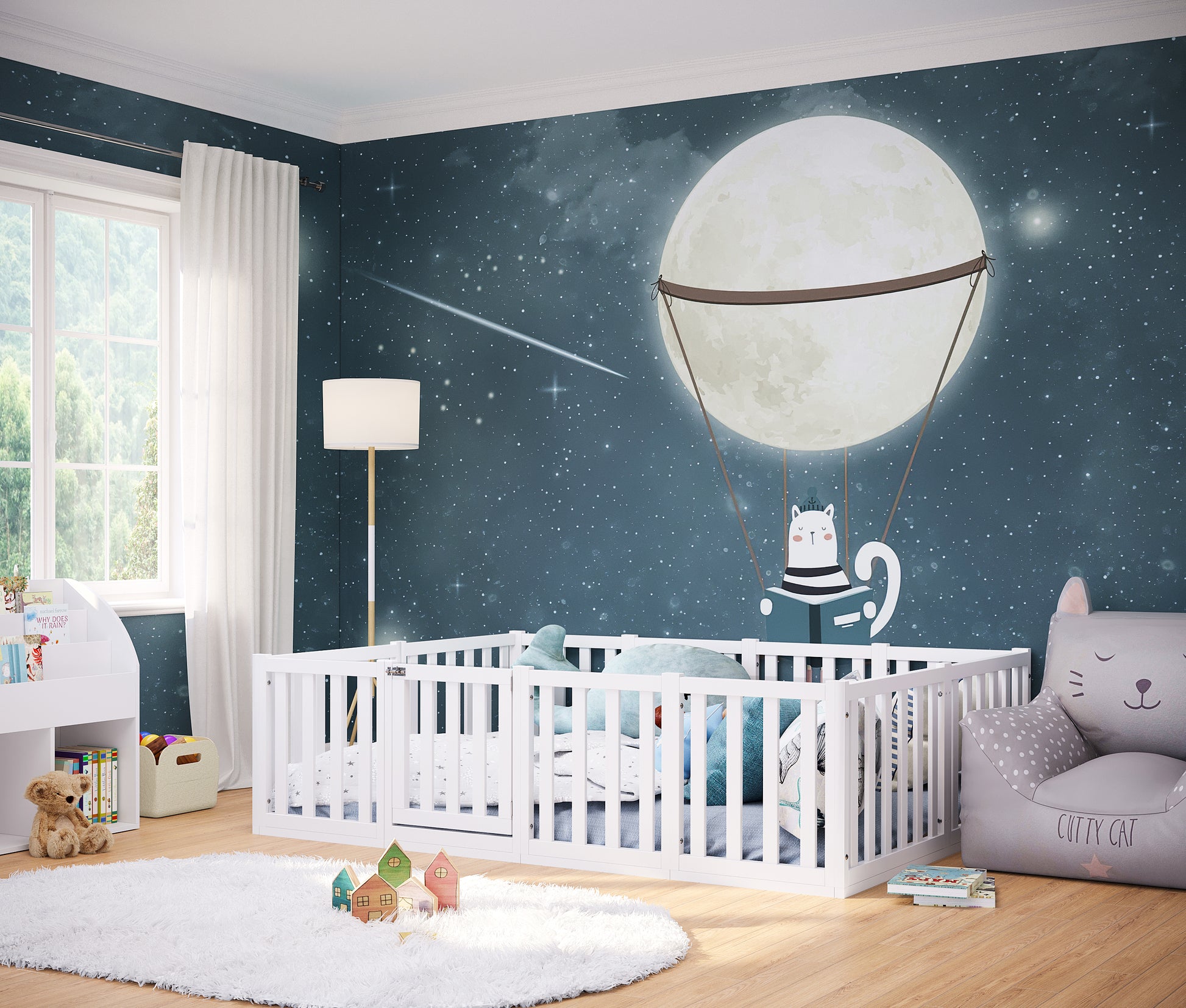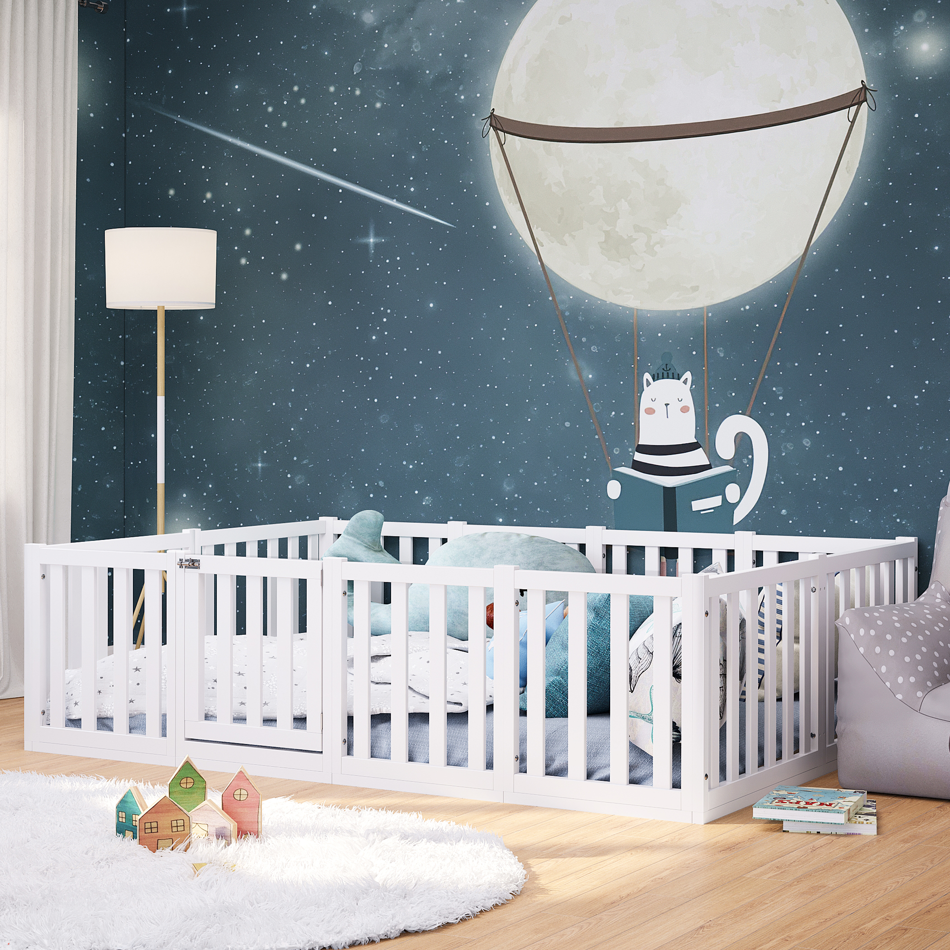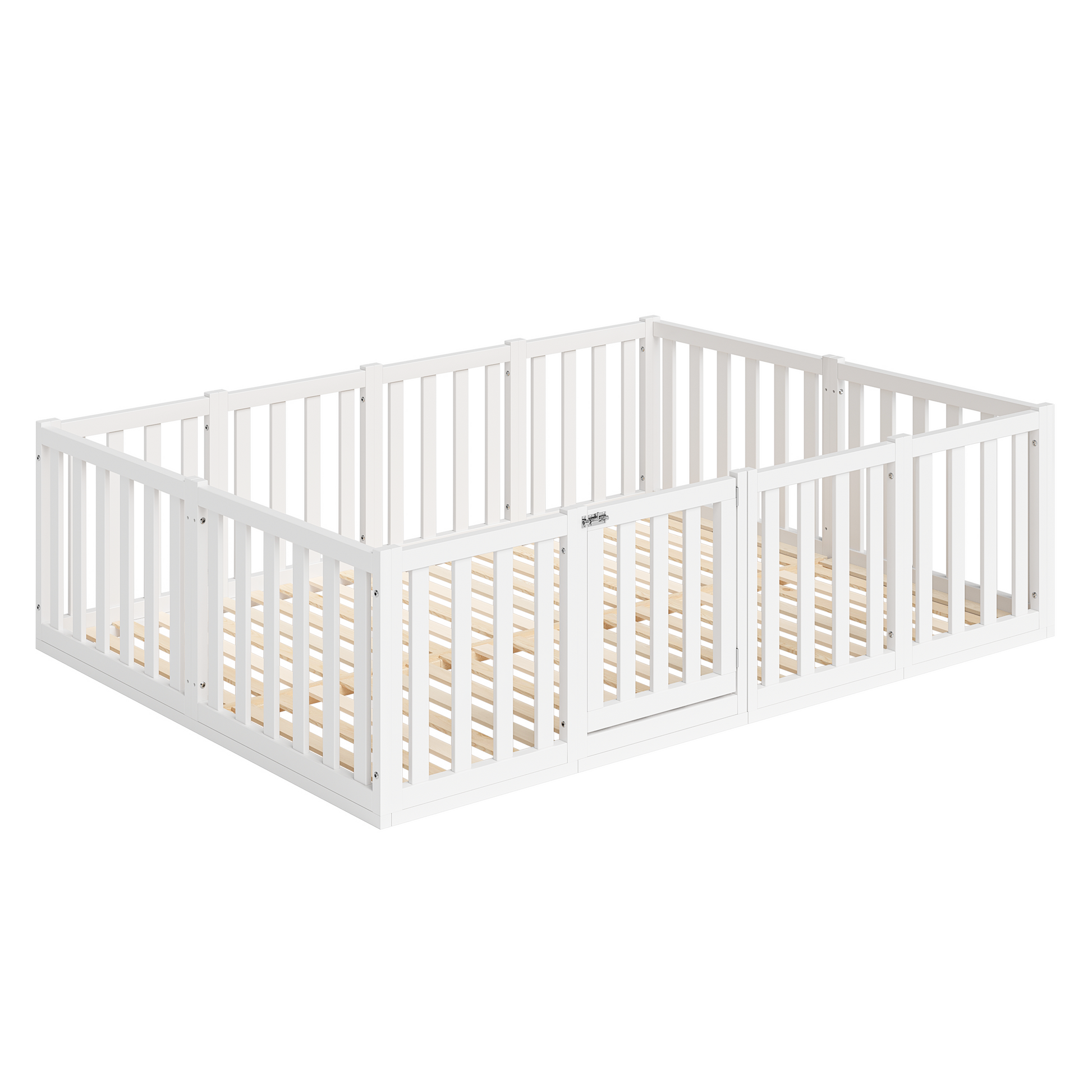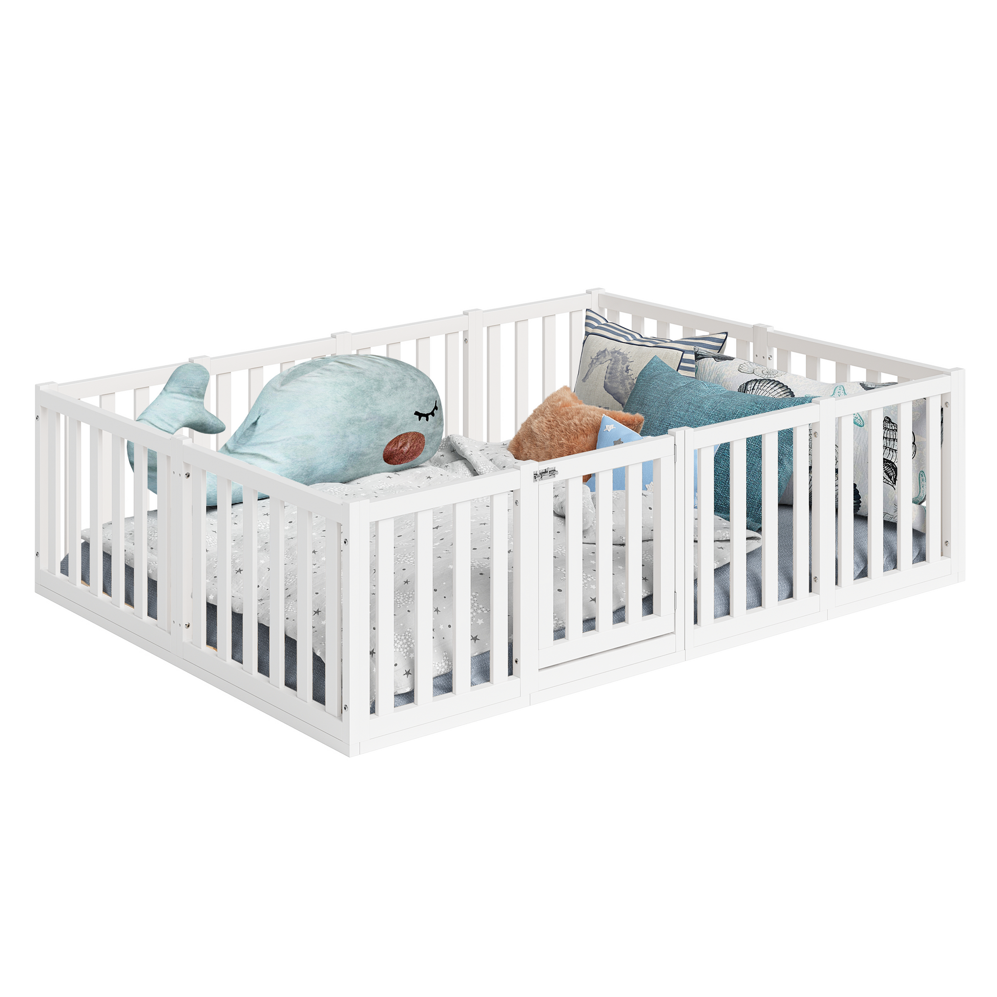 Tapi Bodenbett 140x200 cm mit extra hohem Gitter, mit Tür, weiß lackiert, Kiefer massiv, inkl. Lattenrost