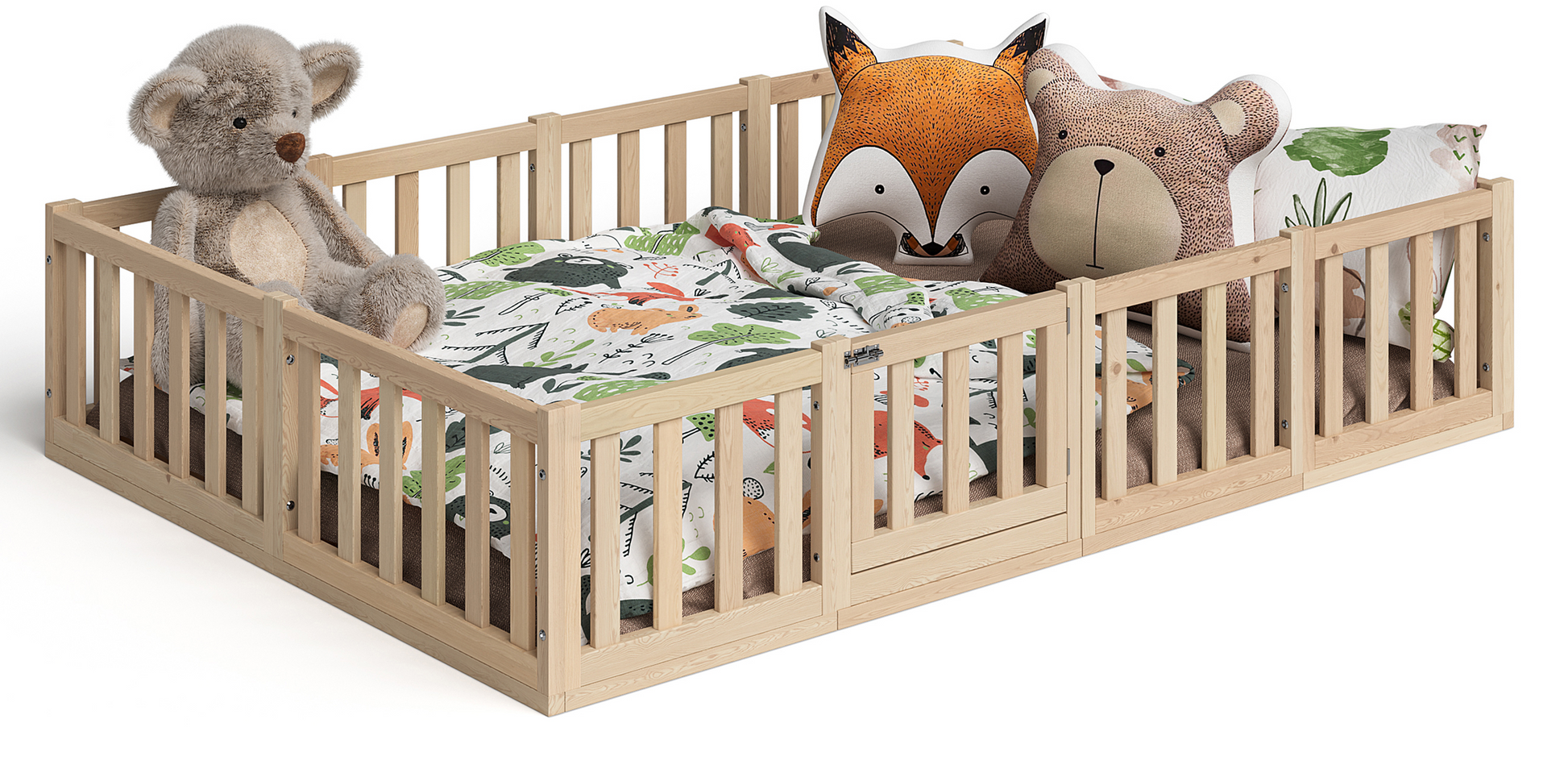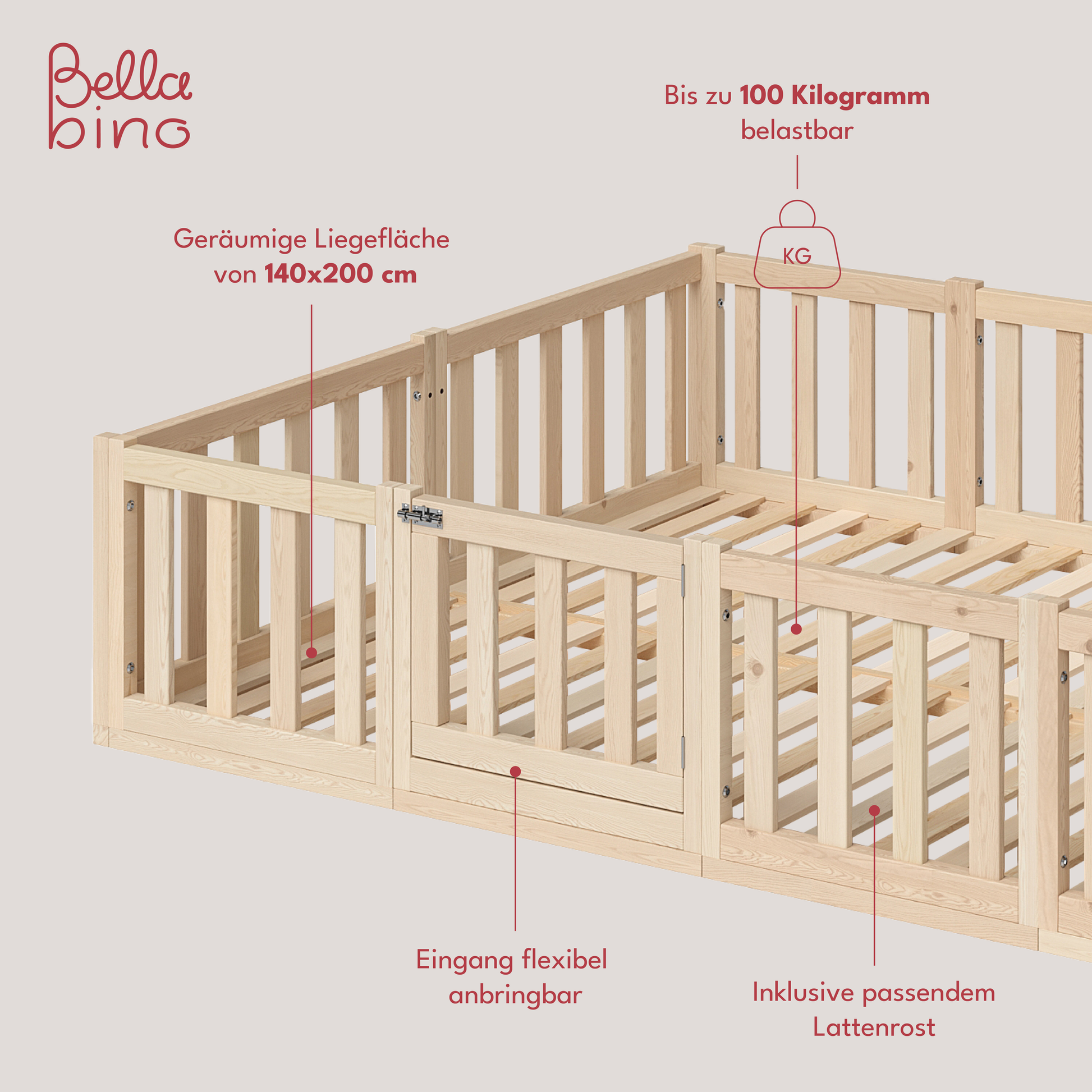 - Lieferumfang: Bodenbett mit Tür, inkl. Rausfallschutz und Lattenrost
