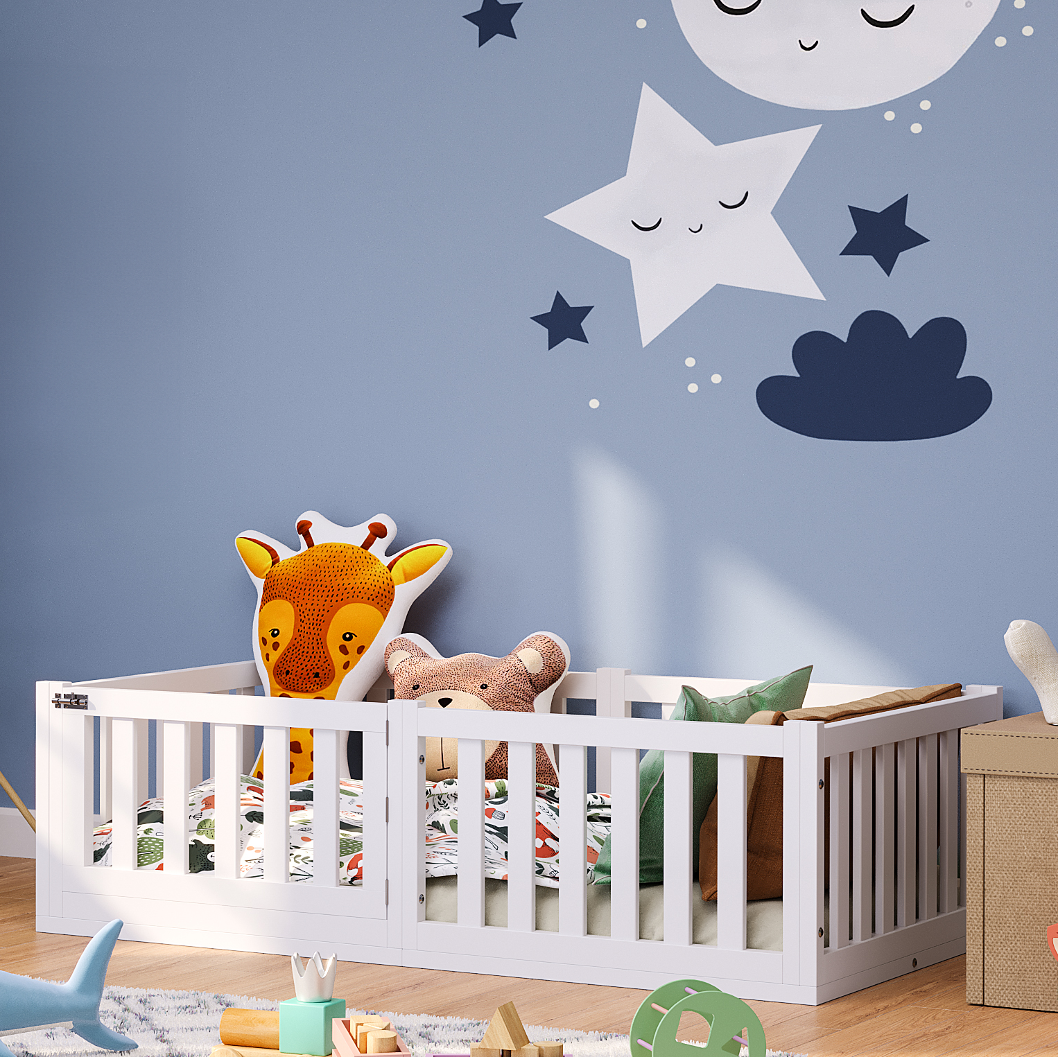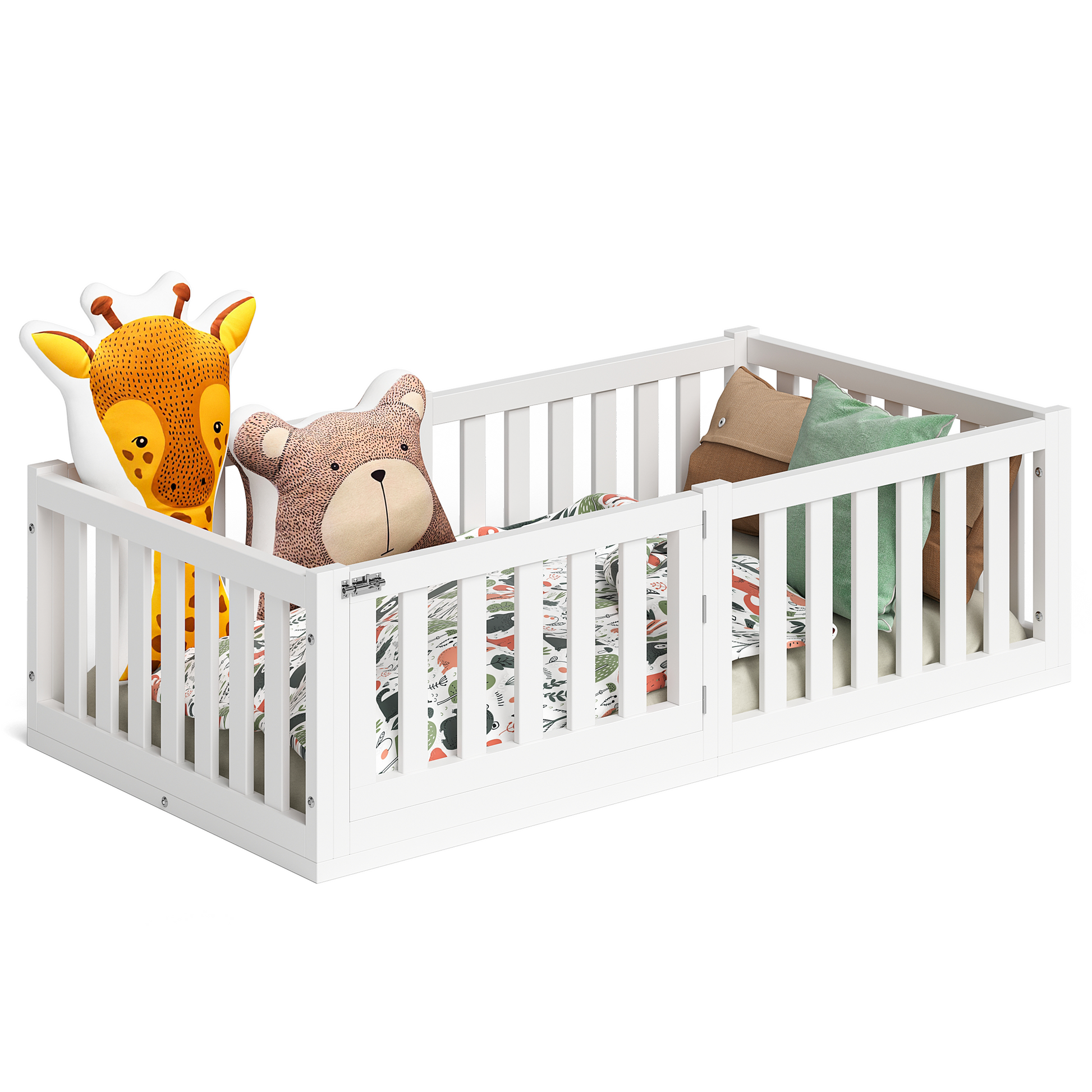 - Lieferumfang: Bodenbett inkl. Rausfallschutz und Lattenrost