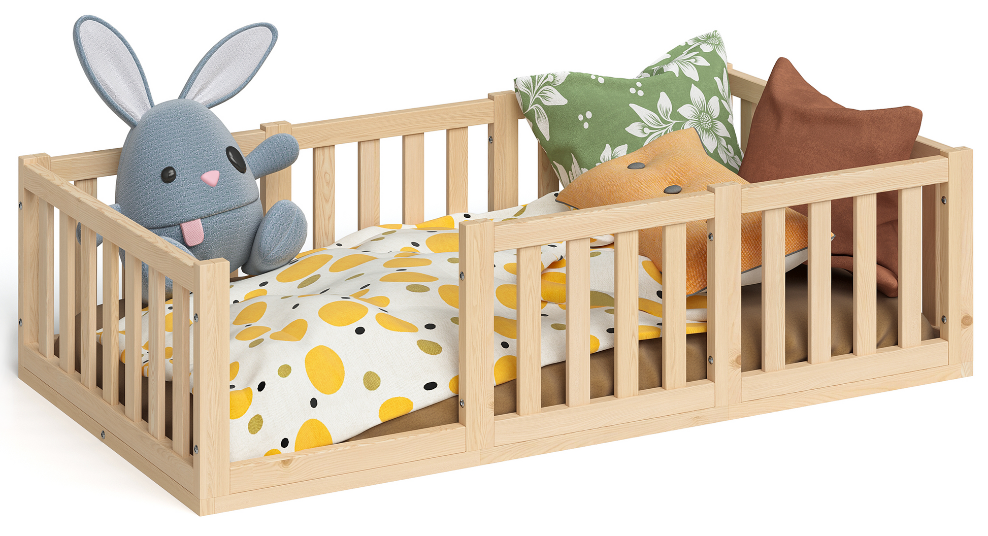 - Lieferumfang: Bodenbett inkl. Rausfallschutz und Lattenrost