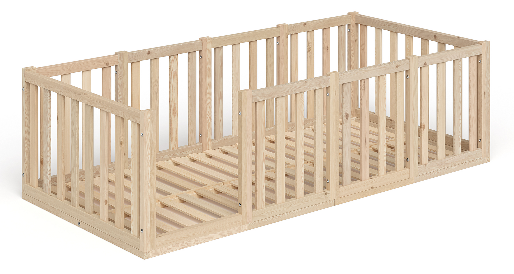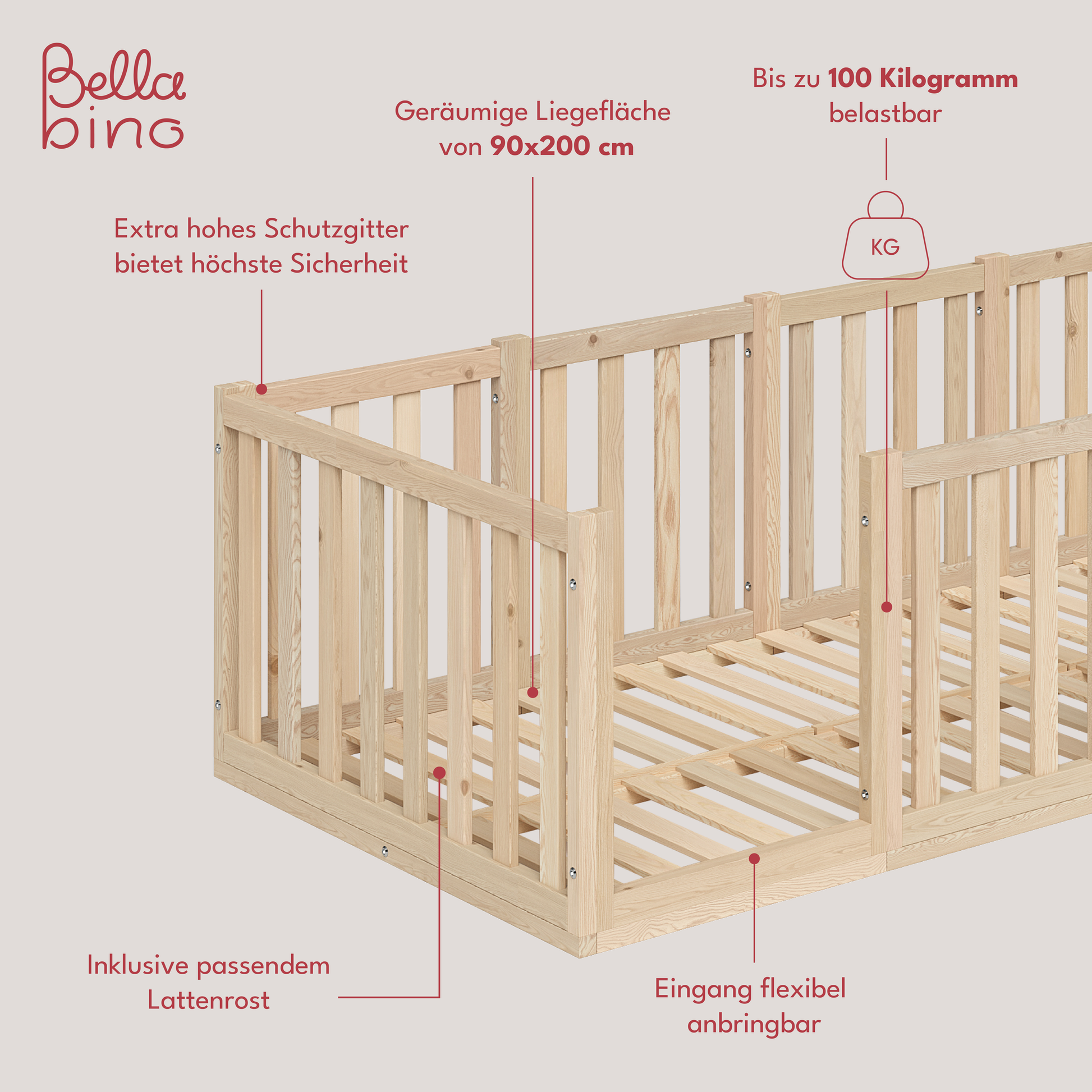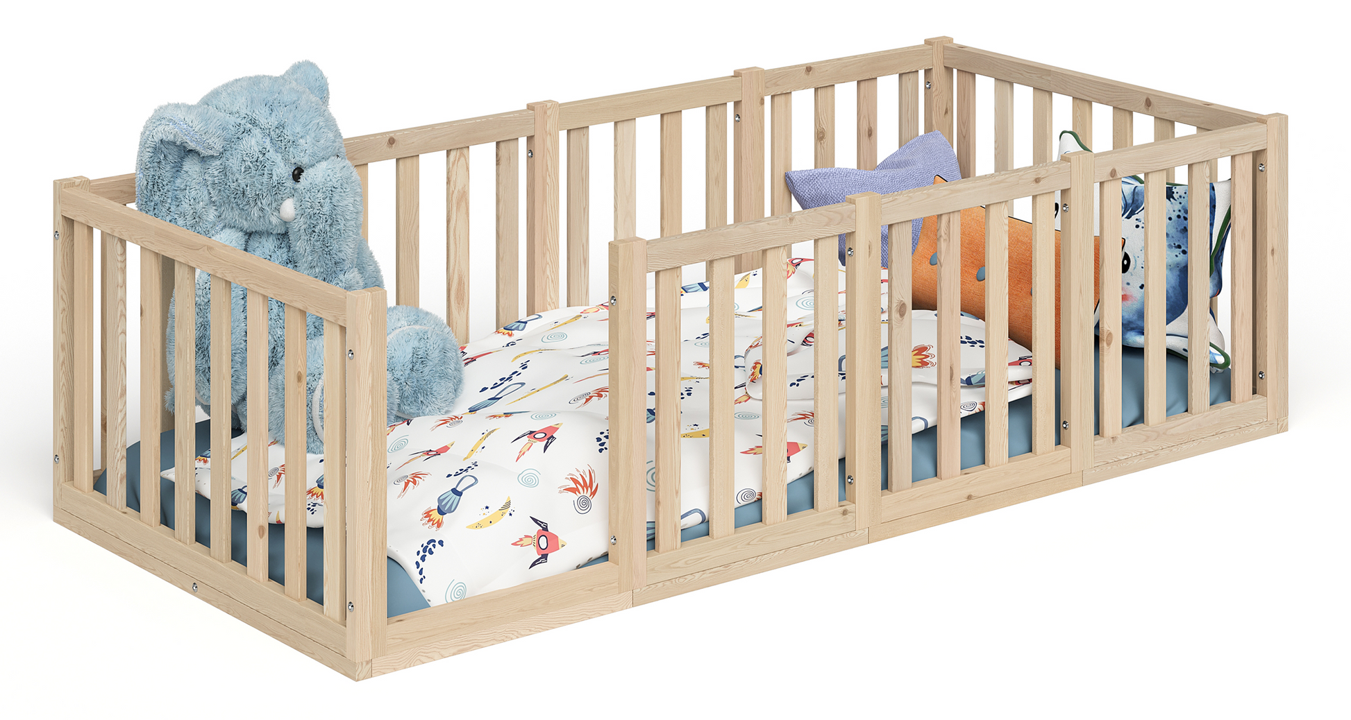 Tapi Bodenbett 90 x 200 cm mit extra hohem Gitter, natur lackiert, Kiefer massiv, inkl. Lattenrost