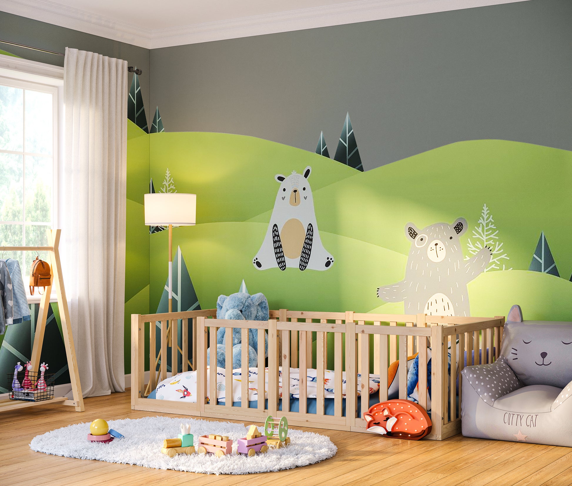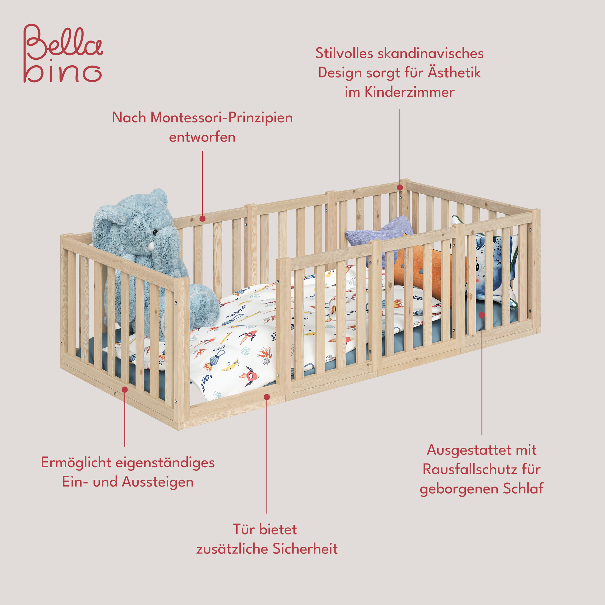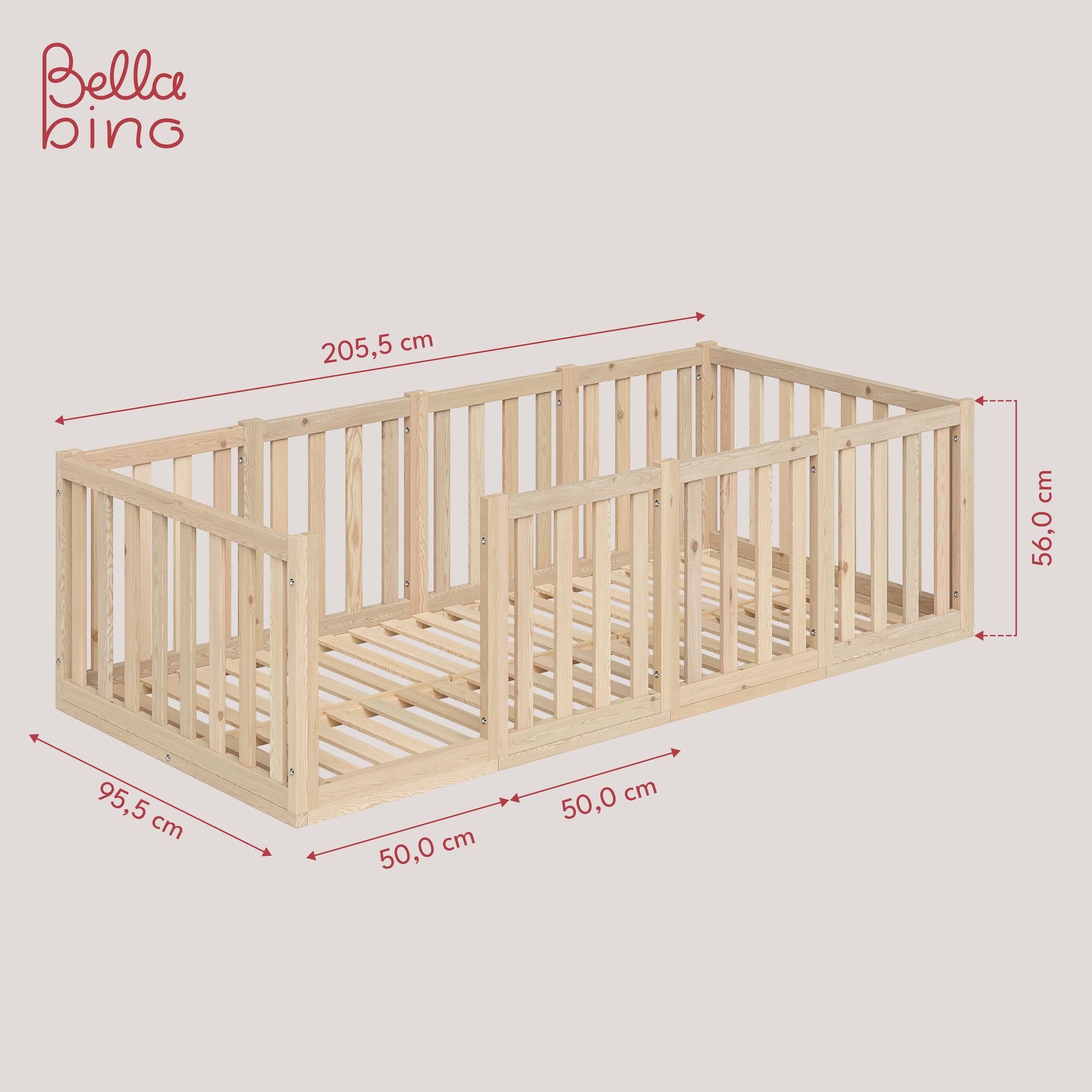 Tapi Bodenbett 90 x 200 cm mit extra hohem Gitter, natur lackiert, Kiefer massiv, inkl. Lattenrost