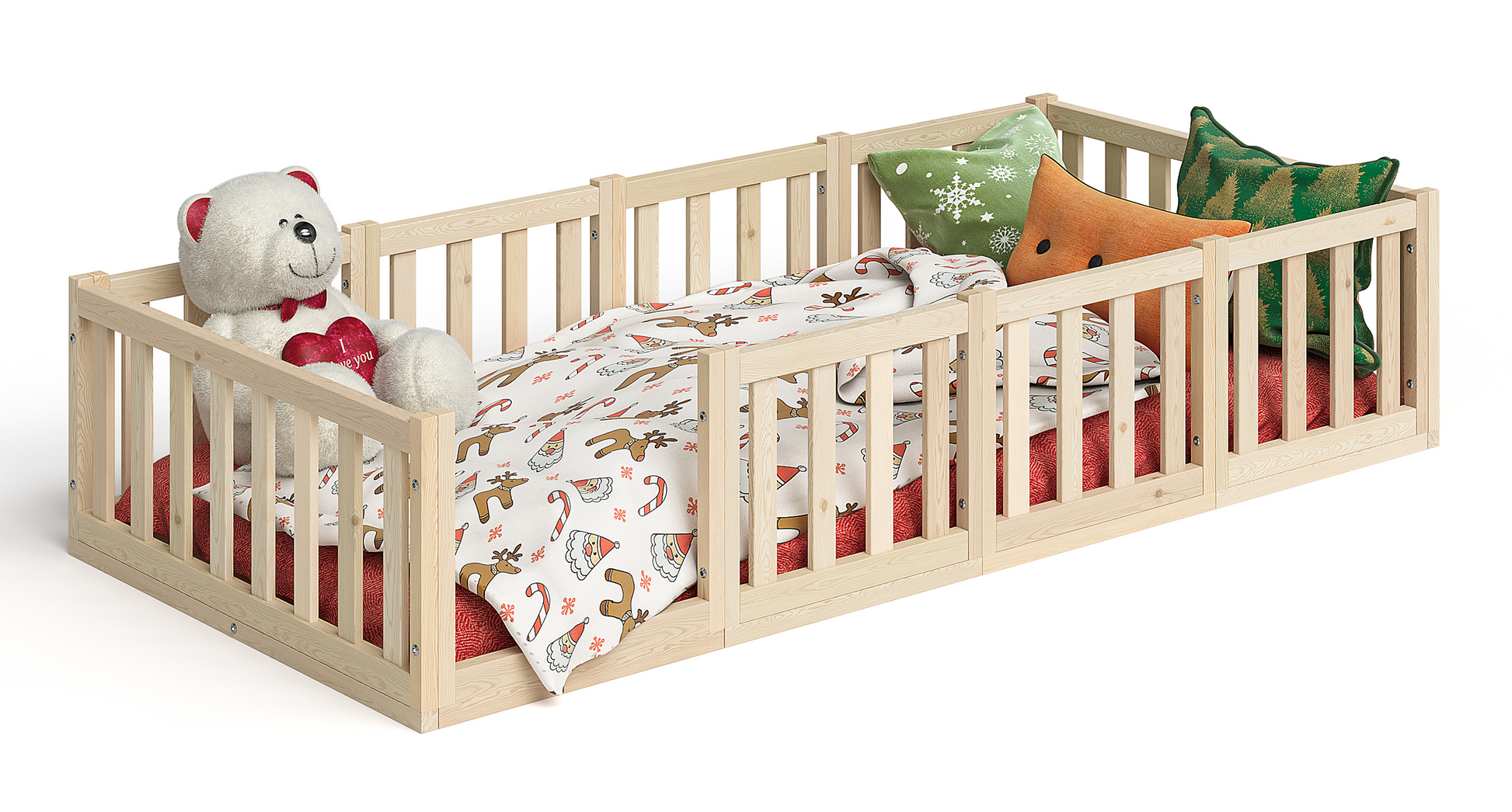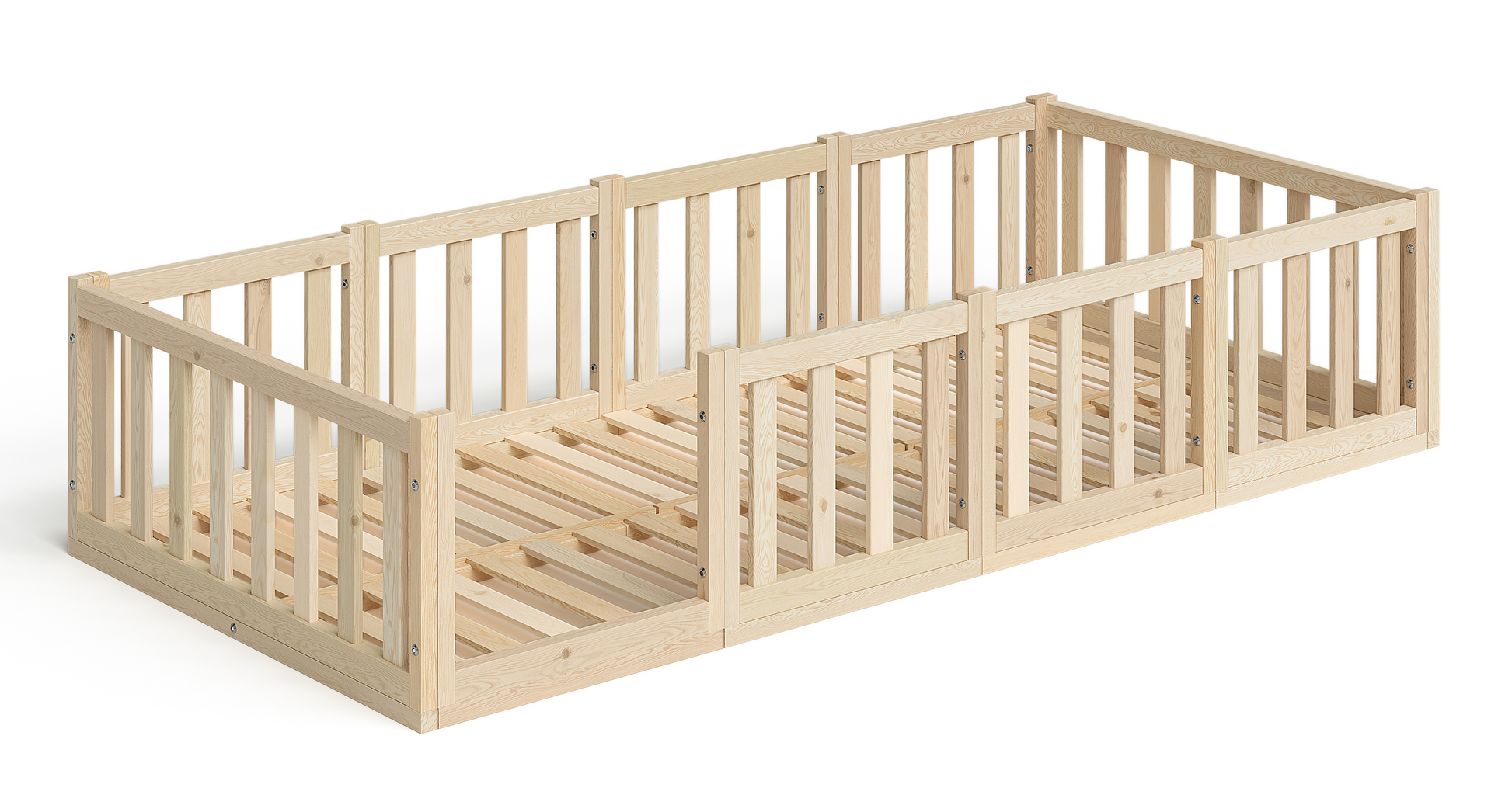 - Lieferumfang: Bodenbett inkl. Rausfallschutz und Lattenrost
