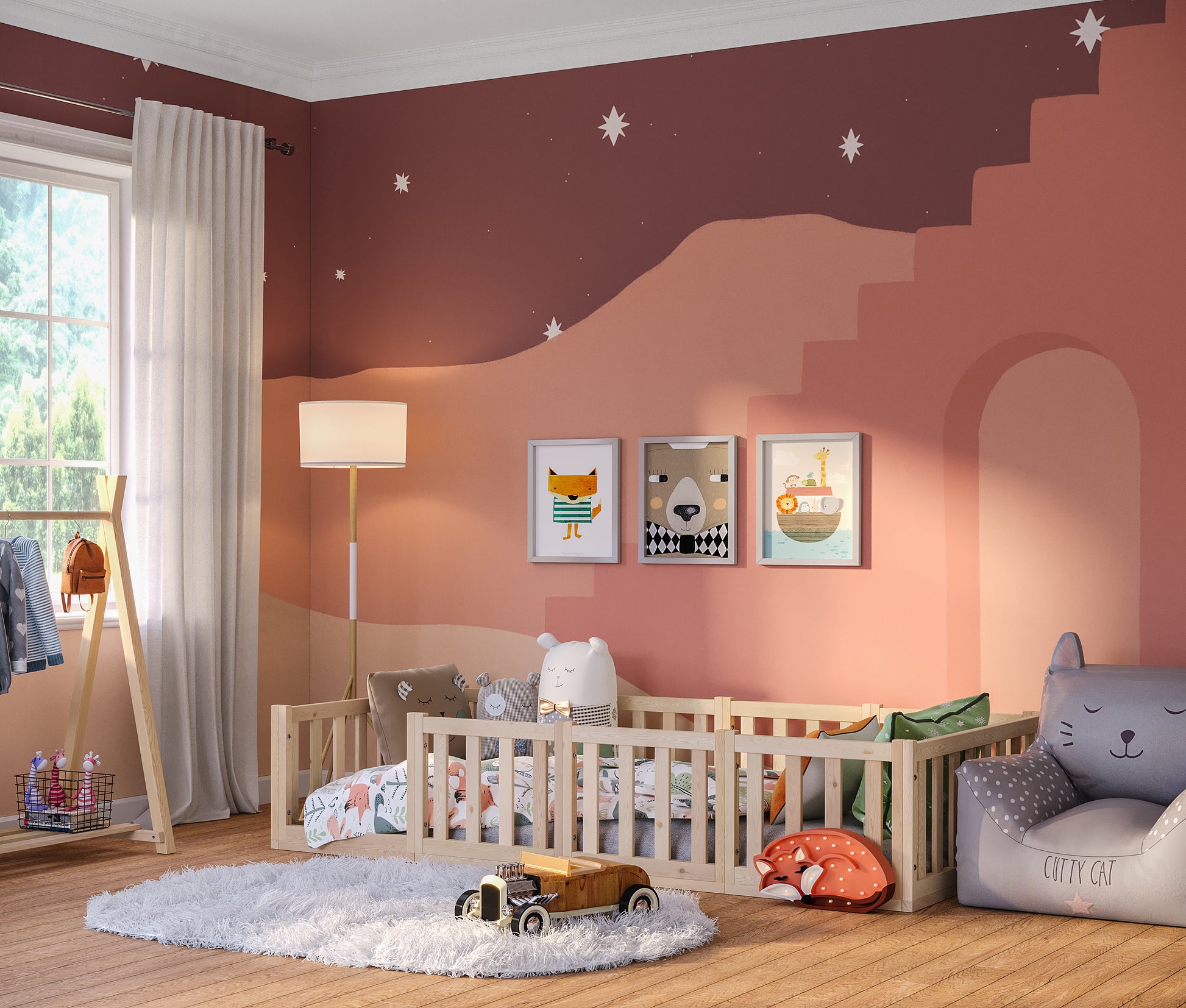 Dank seiner innovativen Bauweise bietet das Bodenbett 'Tapi' eine gemütliche und praktische Schlaflösung für Kinder, die ihr Bett eigenständig nutzen möchten. Das Bettchen von Bellabino wird direkt auf dem Boden platziert und weist dadurch eine niedrige Betthöhe auf. So braucht das Kind beim Ein- und Aussteigen nicht mehr die Hilfe von Mama und Papa.