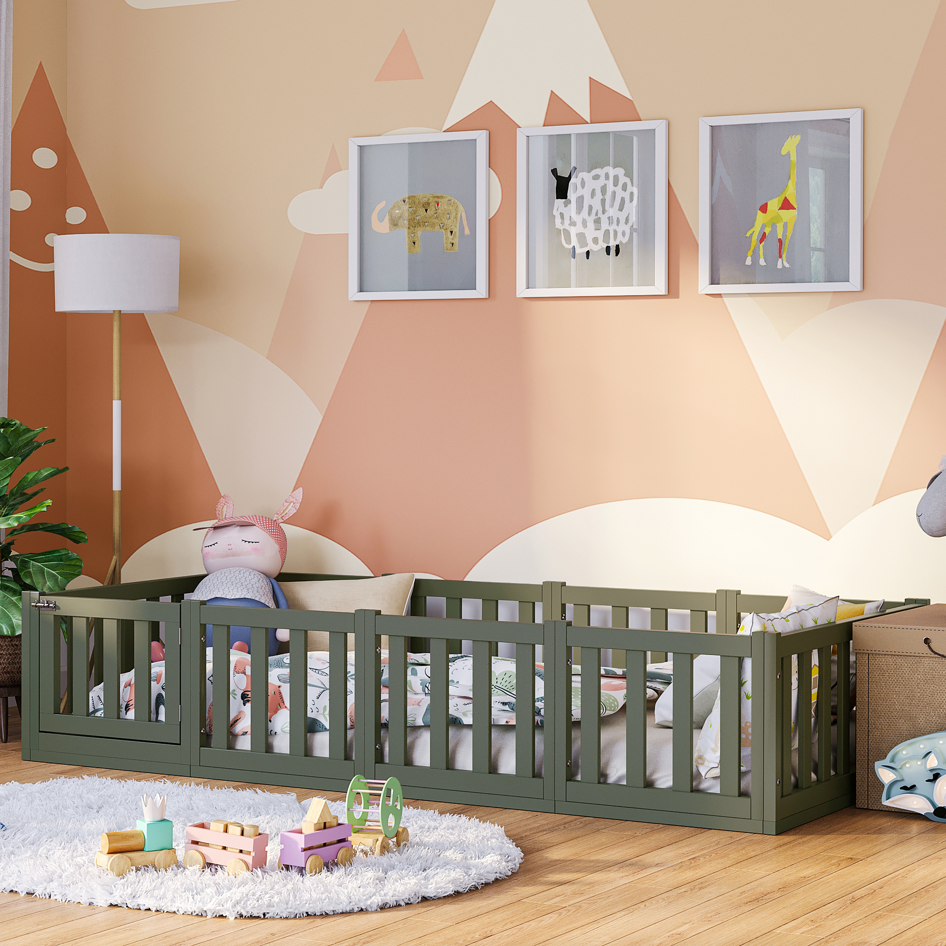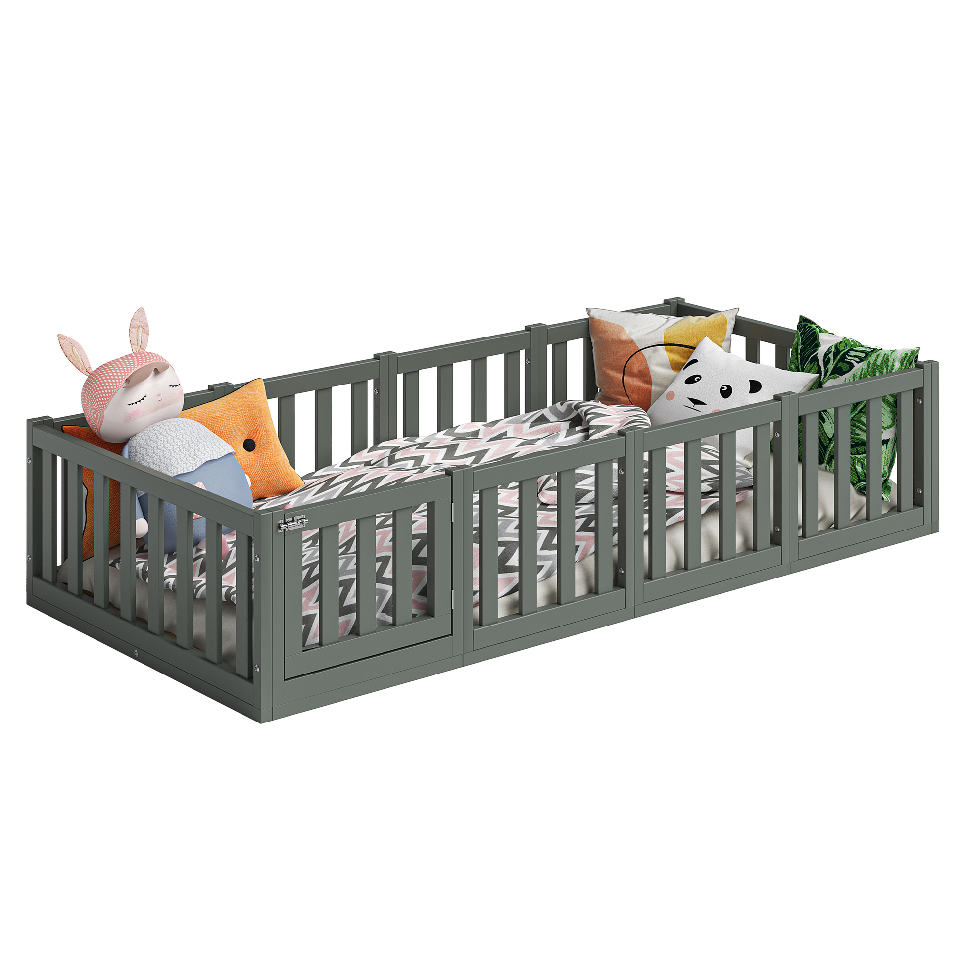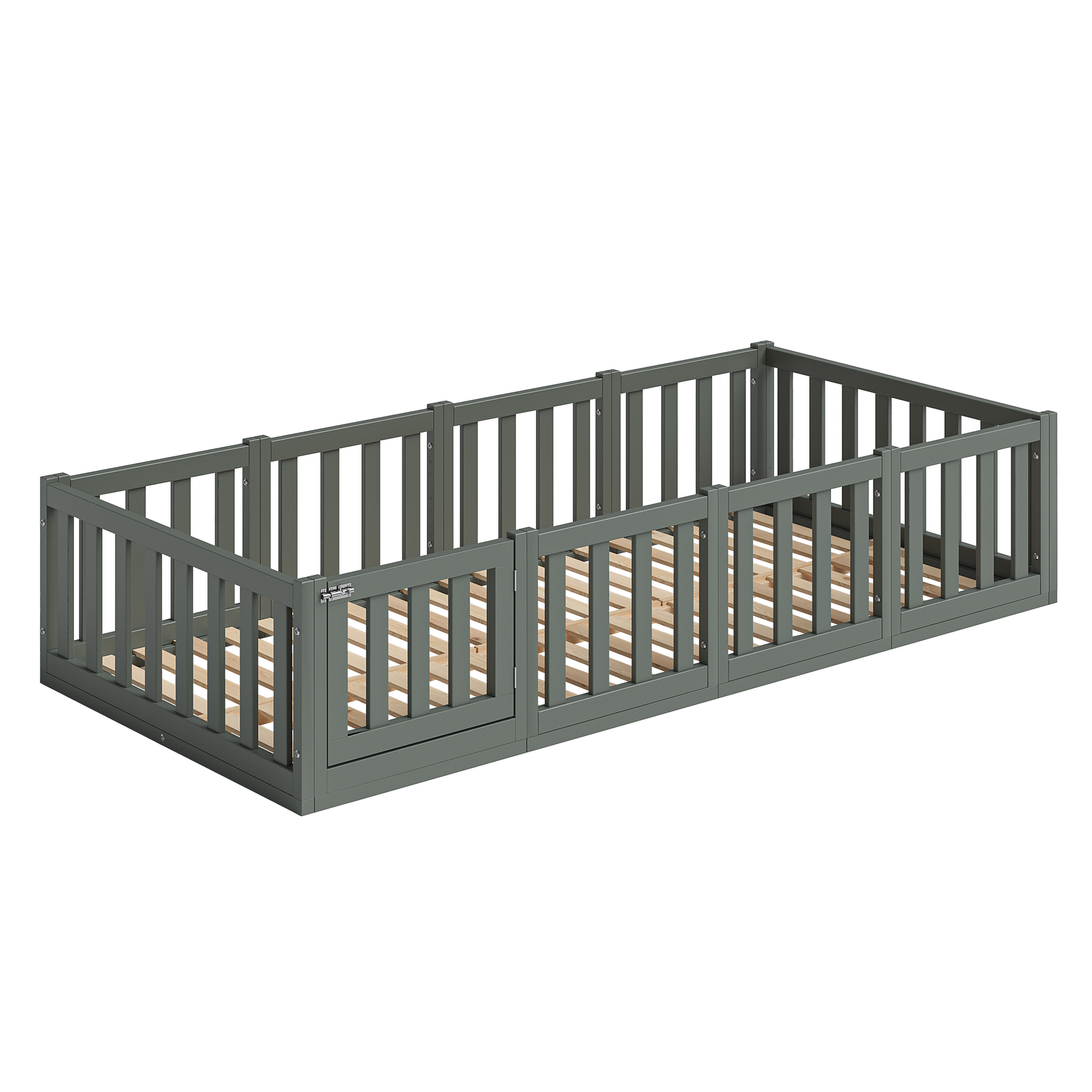 - Lieferumfang: Bodenbett inkl. Rausfallschutz mit Tür und Lattenrost