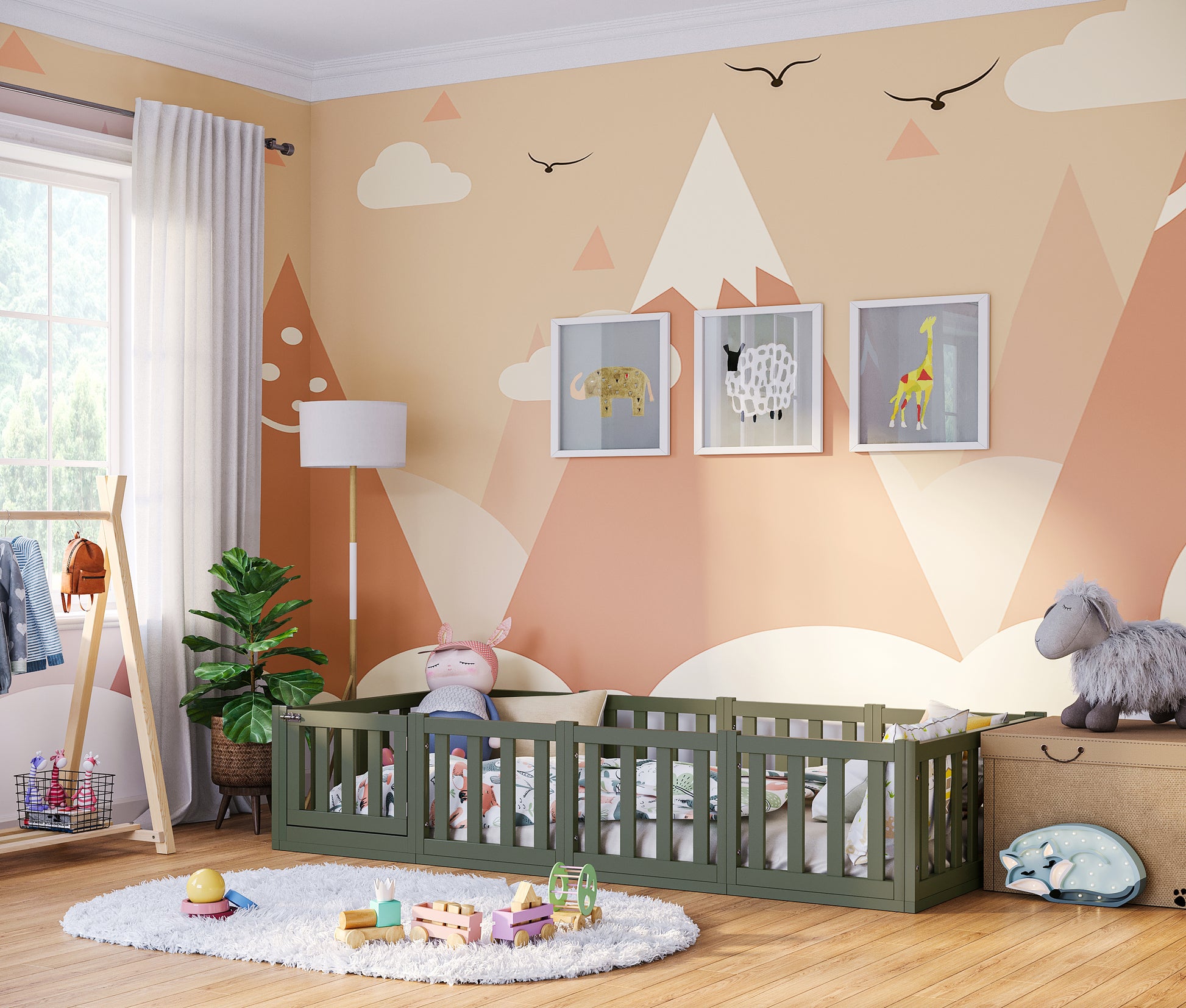 Dank seiner innovativen Bauweise bietet das Bodenbett 'Tapi' eine gemütliche und praktische Schlaflösung für Kinder, die ihr Bett eigenständig nutzen möchten. Das Bettchen von Bellabino wird direkt auf dem Boden platziert und weist dadurch eine niedrige Betthöhe auf. So braucht das Kind beim Ein- und Aussteigen nicht mehr die Hilfe von Mama und Papa.