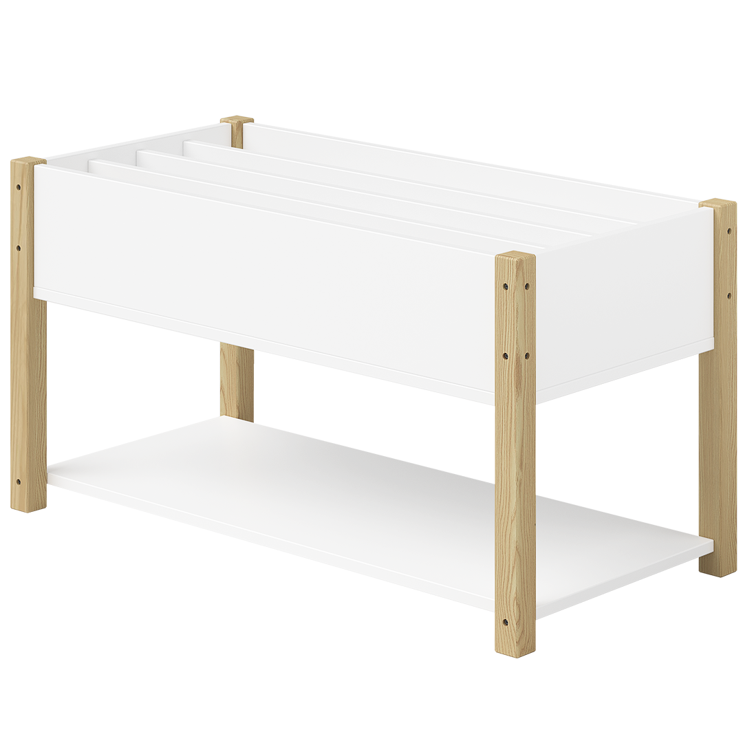 Teme Kinderbücherregal mit 4 Ablagefächern und Aufbewahrungsregal, Kiefer massiv, weiß/natur, 80x40x44 cm