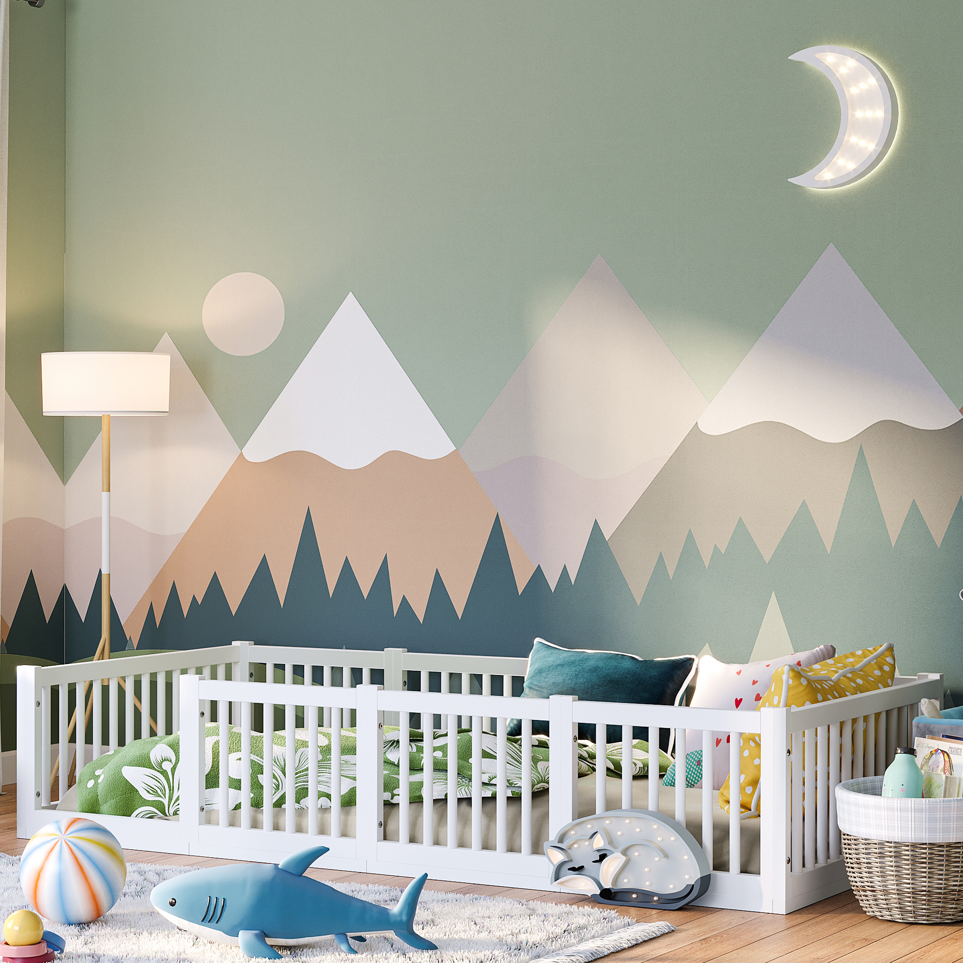 Speziell für kleine Abenteurer, die gerne eigenständig in ihre Traumwelt eintauchen möchten, bietet sich das Kinderbett 'Teno' von Bellabino an. Dieses durchdachte Bett kombiniert Funktionalität und Gemütlichkeit, um den Kleinen ein eigenständiges Schlafritual zu ermöglichen. Dank seiner kinderfreundlichen Bauweise wird 'Teno' direkt auf dem Boden platziert und überzeugt mit einer niedrigen Betthöhe. Dies ermöglicht es den Kindern, ohne fremde Hilfe von Mama und Papa mühelos in ihr Bett zu gelangen und es ebenso selbstständig zu verlassen.