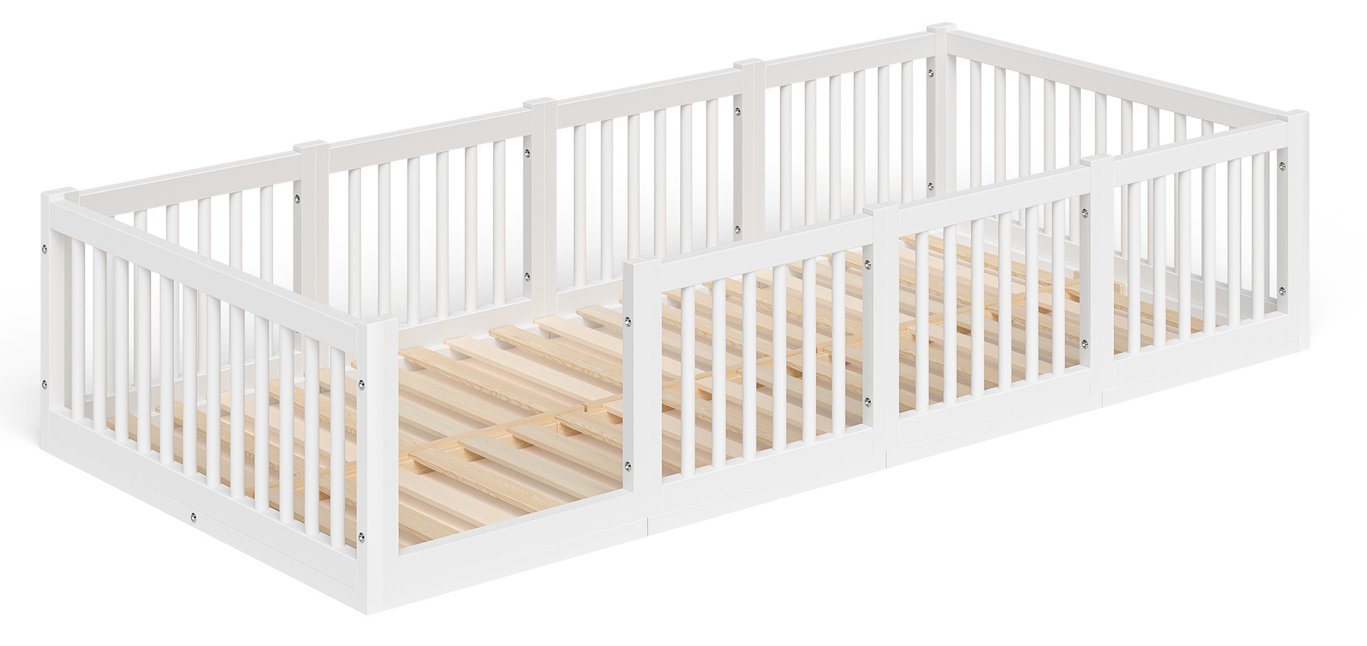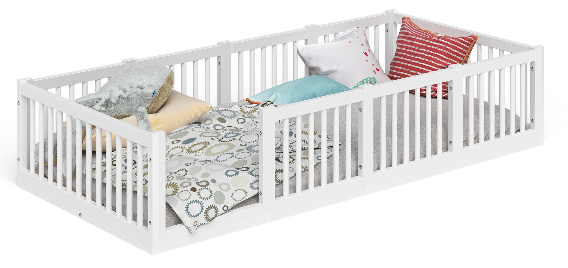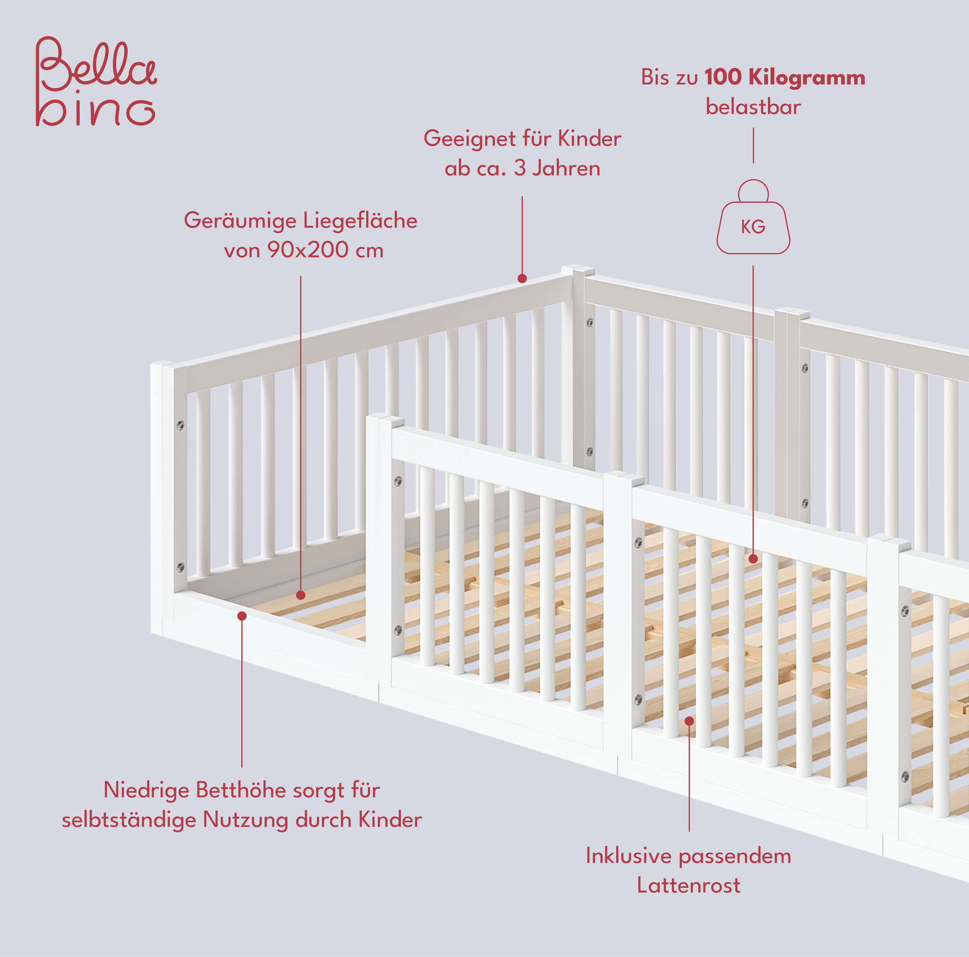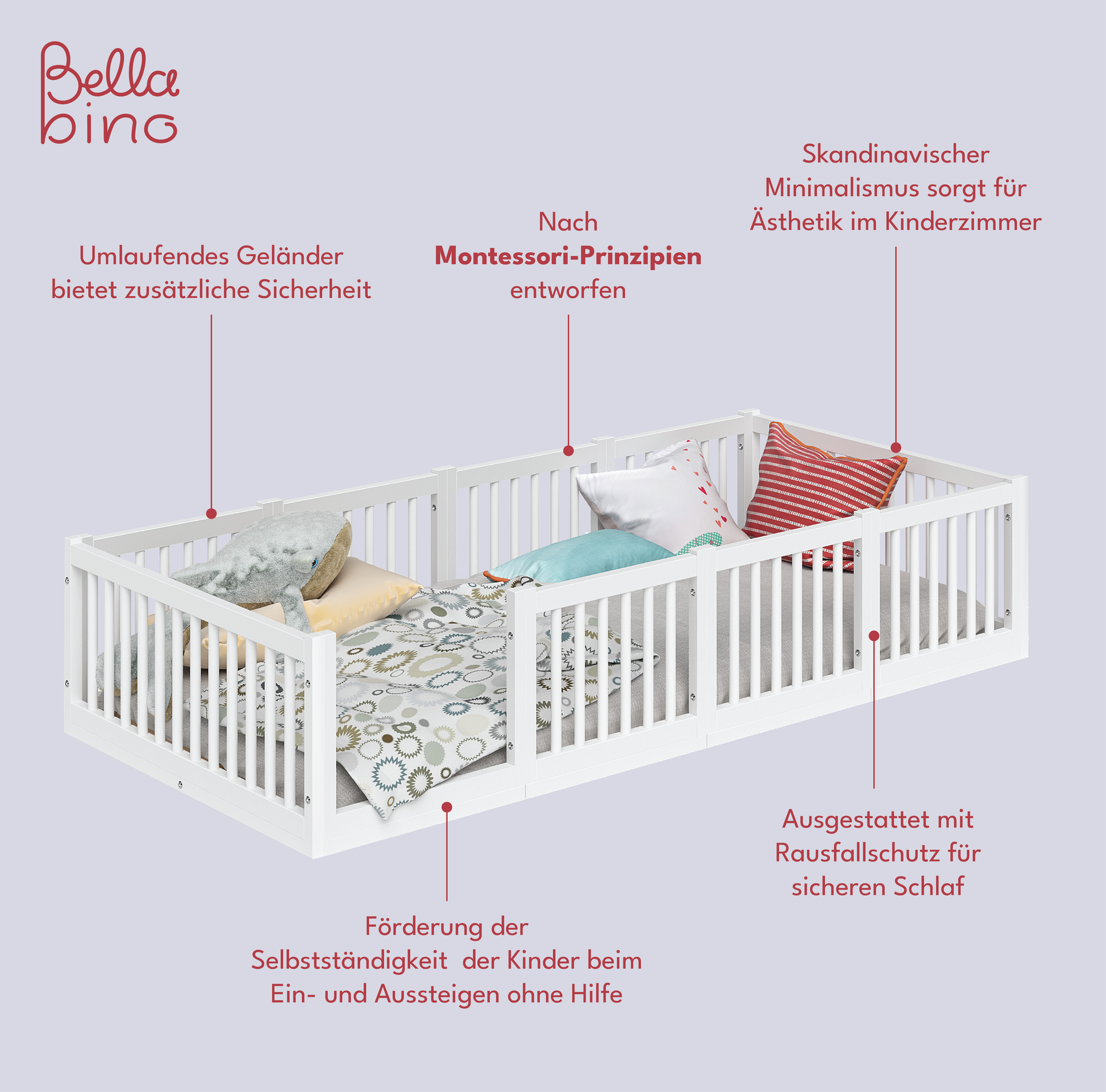 - Lieferumfang: Bodenbett inkl. Rausfallschutz und Lattenrost