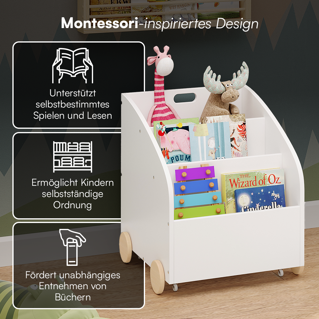 Durch die integrierten Rollen ist das Bewegen des Regals ein Kinderspiel, sodass Ihr kleiner Leser seine Lieblingsbücher und Spielsachen mühelos von einem Ort zum anderen transportieren kann.