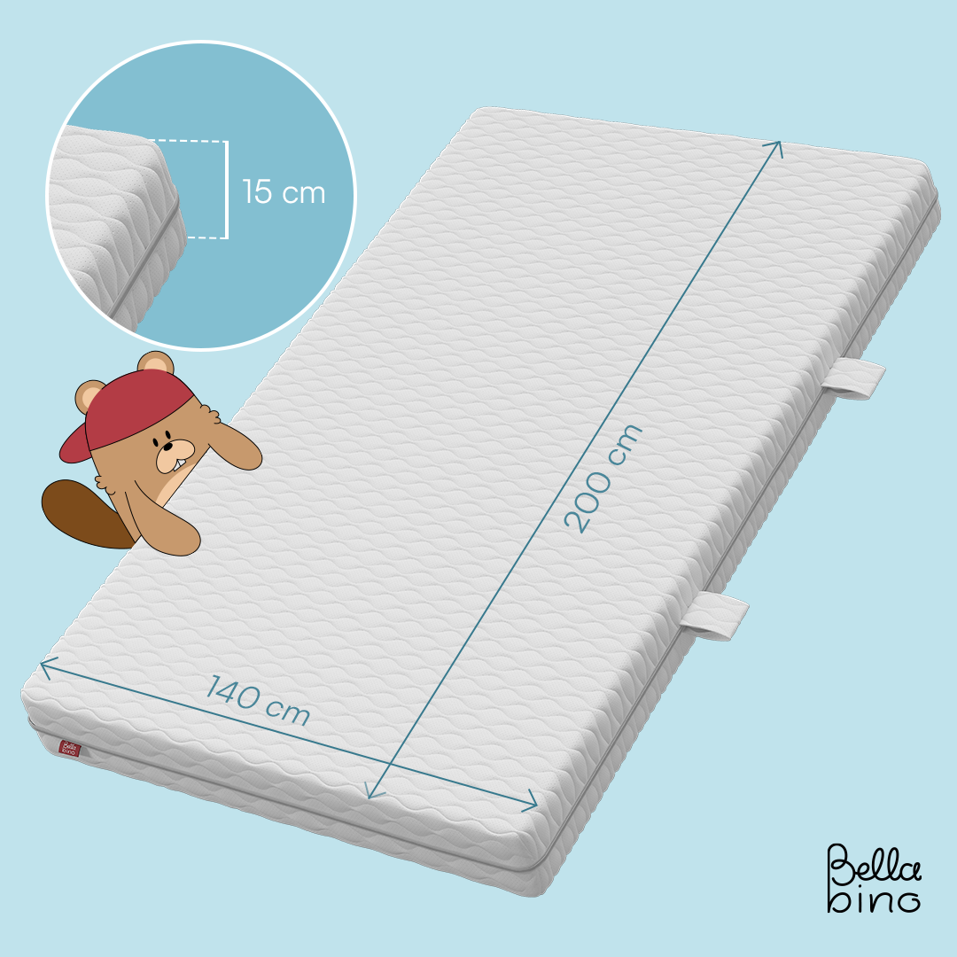 Twist Baby- und Kindermatratze 140x200 cm, Höhe 15 cm, Härtegrad H1/H2, wendbare 7-Zonen Kaltschaummatratze, abnehmbarer Bezug, ab 1,5 Jahren