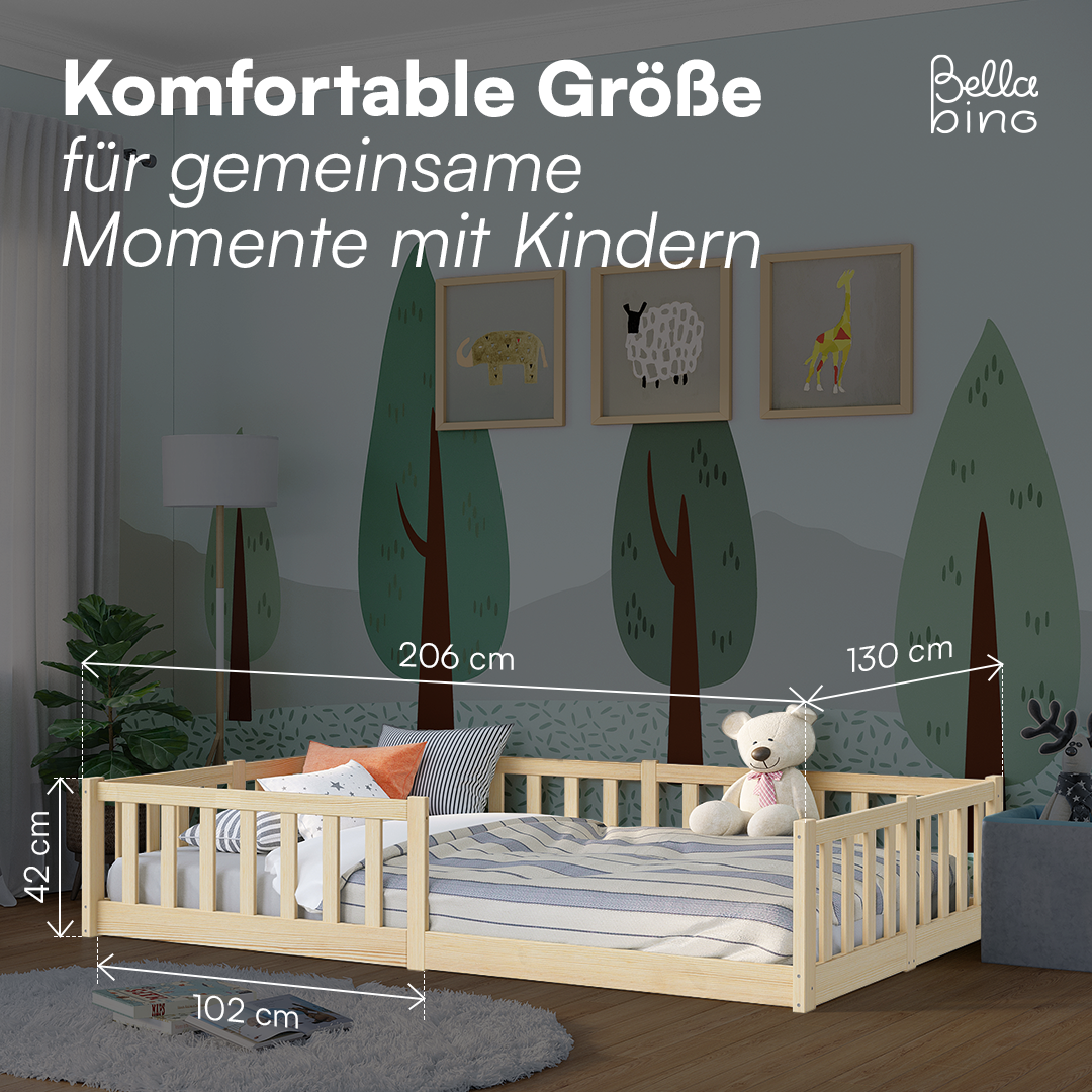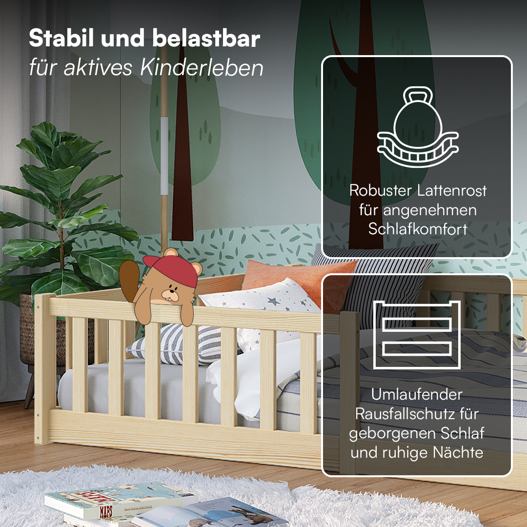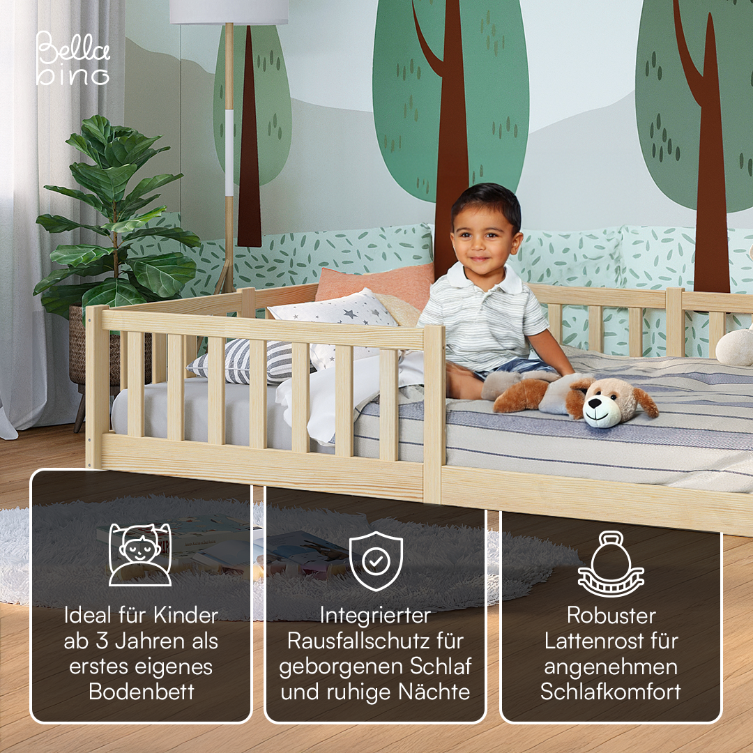 - Lieferumfang: Bodenbett inkl. Rausfallschutz und Lattenrost