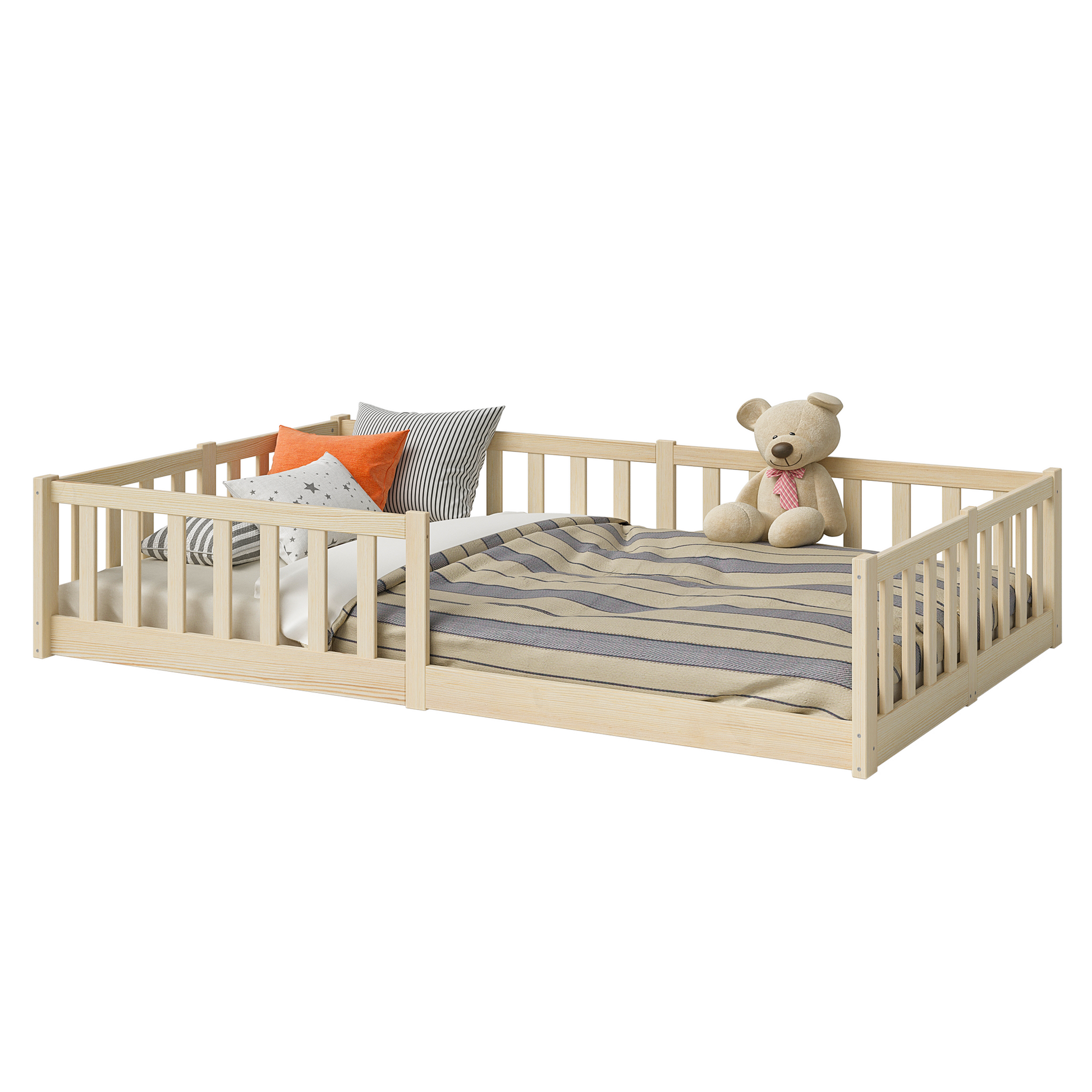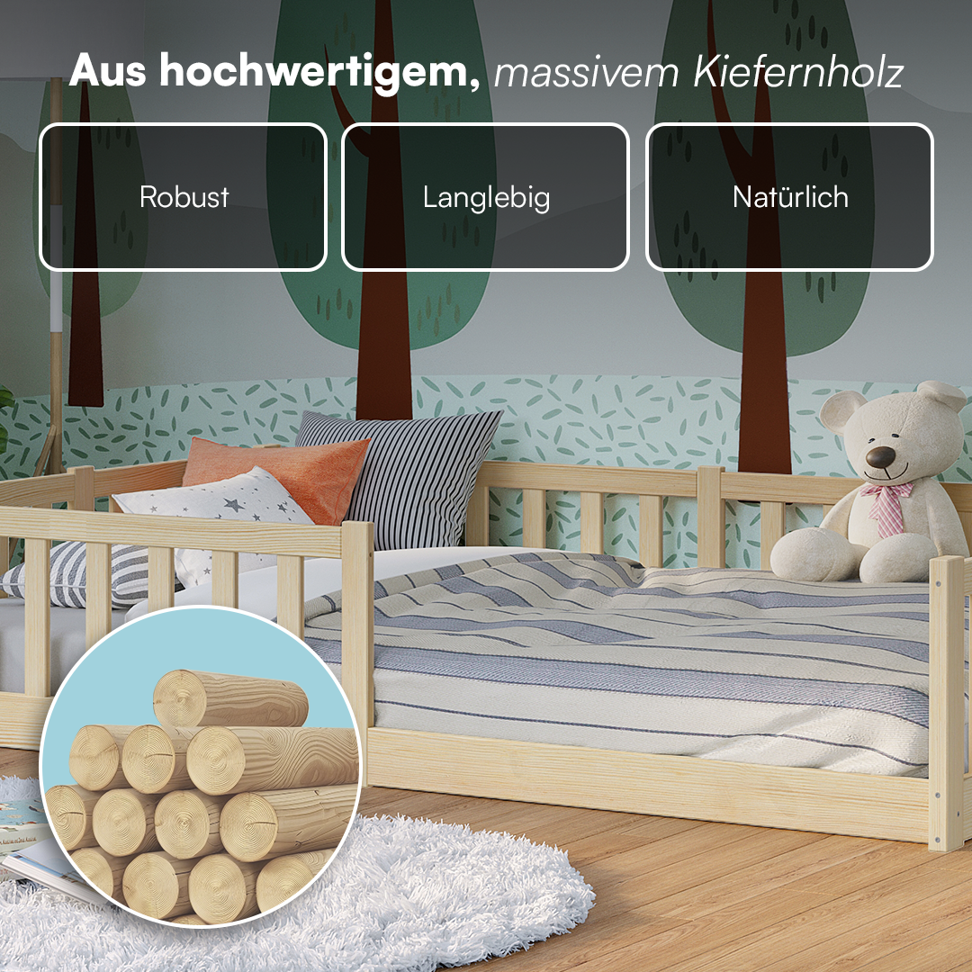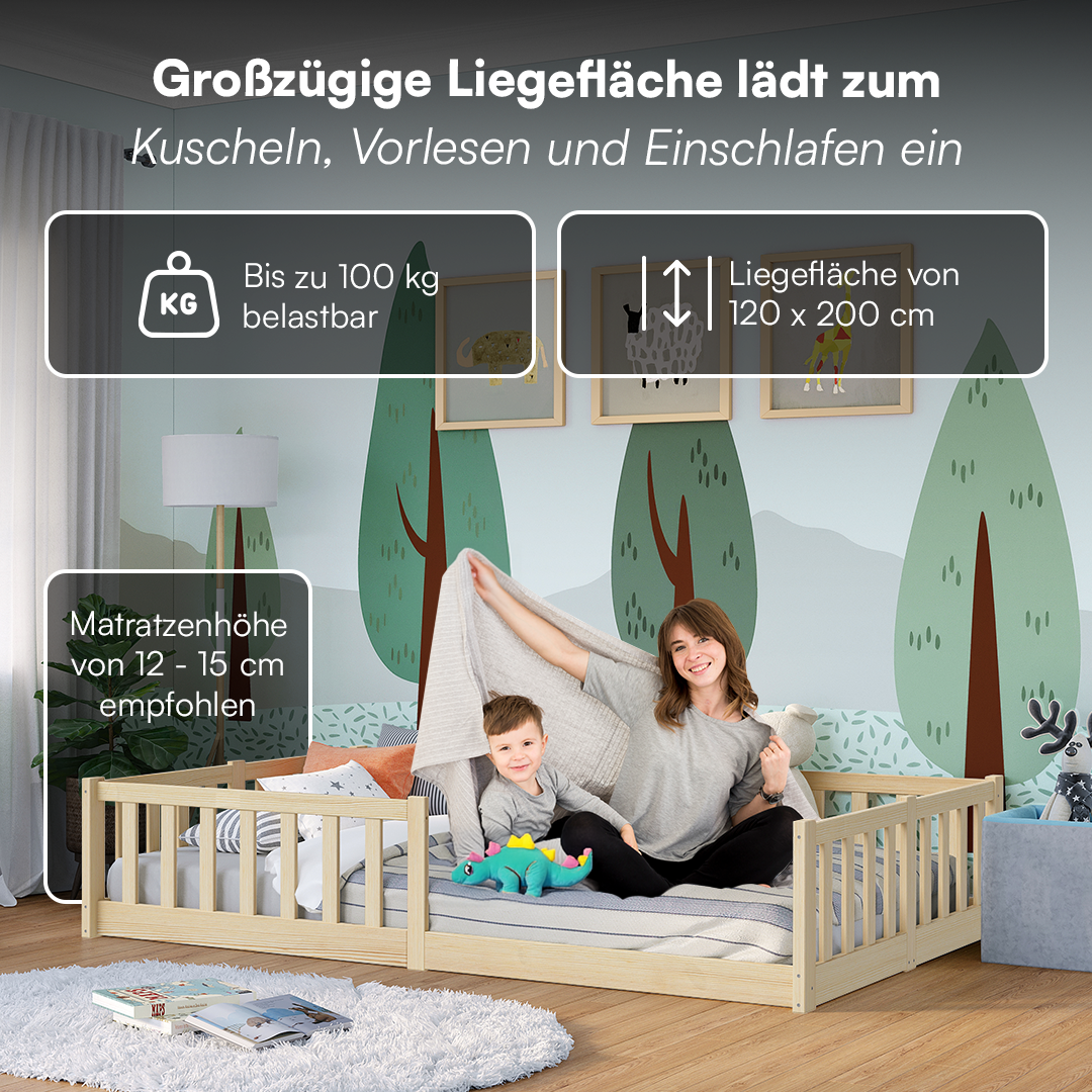 - Lieferumfang: Bodenbett inkl. Rausfallschutz und Lattenrost