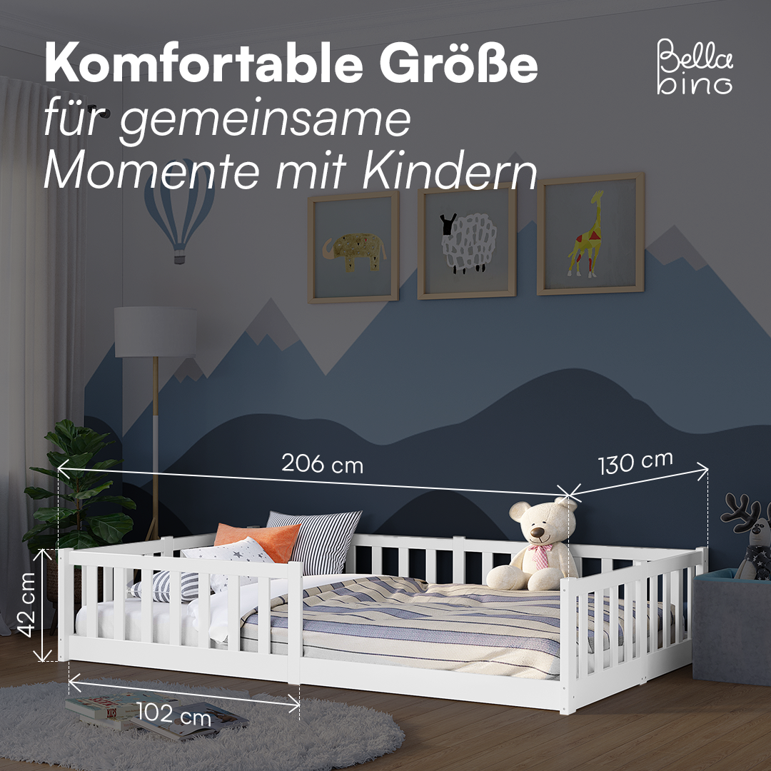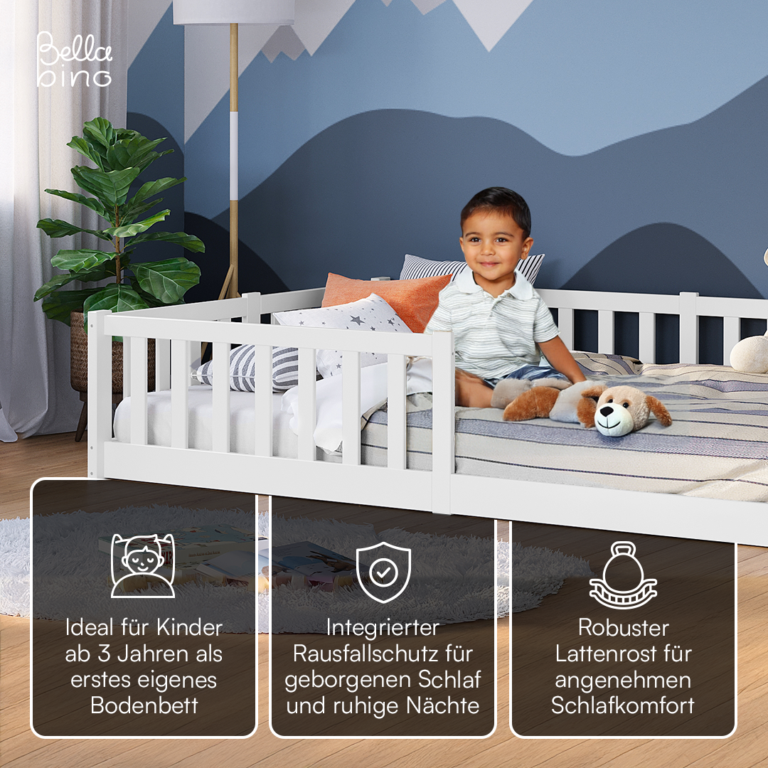 Vere' Bodenbett 120x200 cm, weiß, inkl. Lattenrost und Rausfallschutz