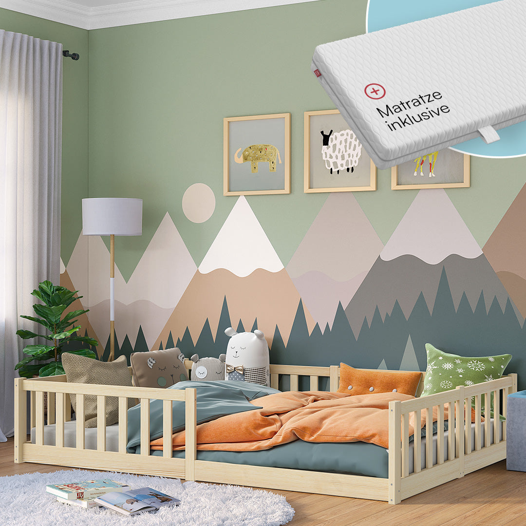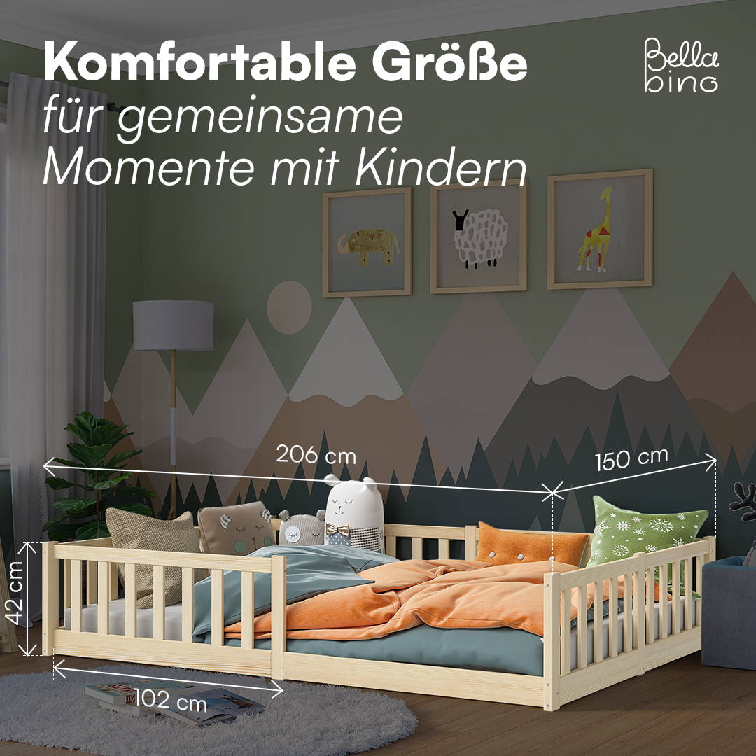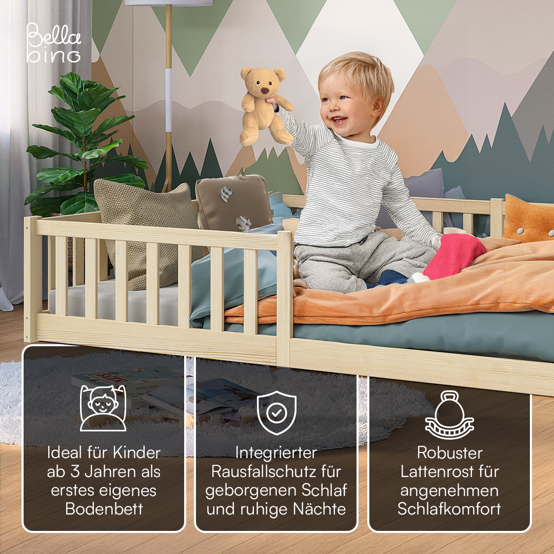 - Lieferumfang: Bodenbett inkl. Rausfallschutz und Lattenrost