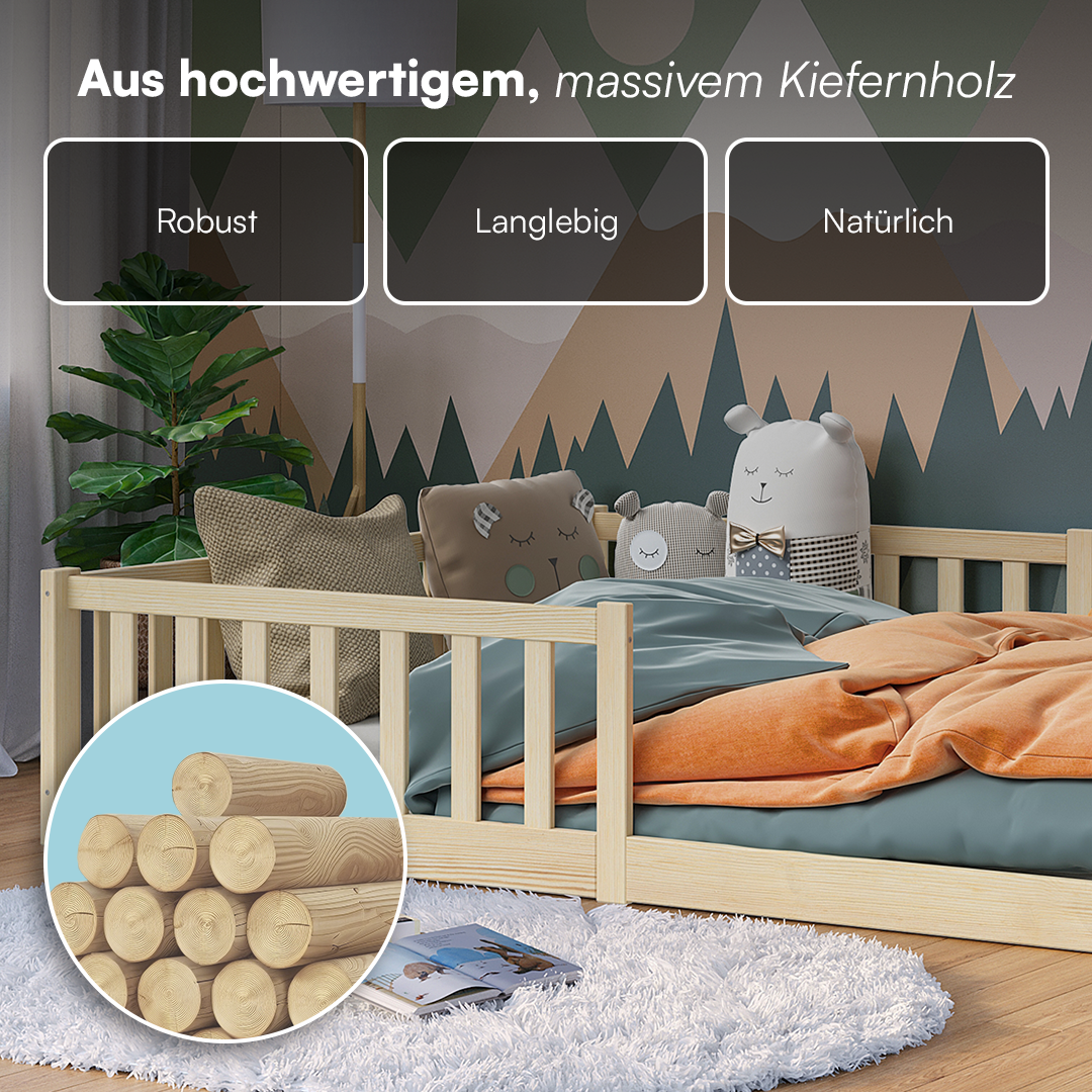 Vere Bodenbett 140x200 cm, natur, inkl. Lattenrost und Rausfallschutz, mit Matratze