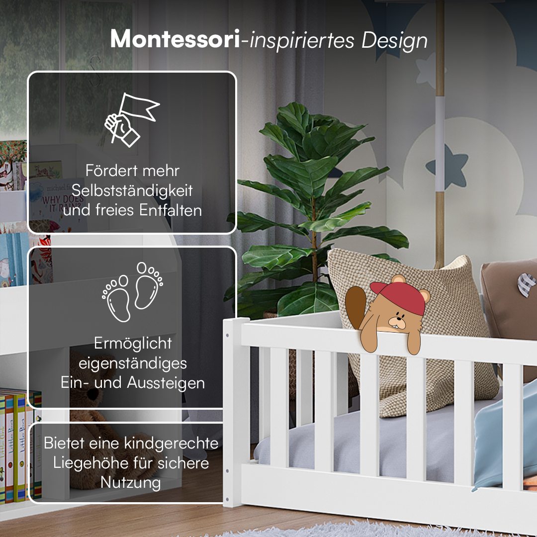 Das Bodenbett Vere von Bellabino ist die ideale Wahl für Kleinkinder, die ihr Bett selbstständig nutzen möchten.