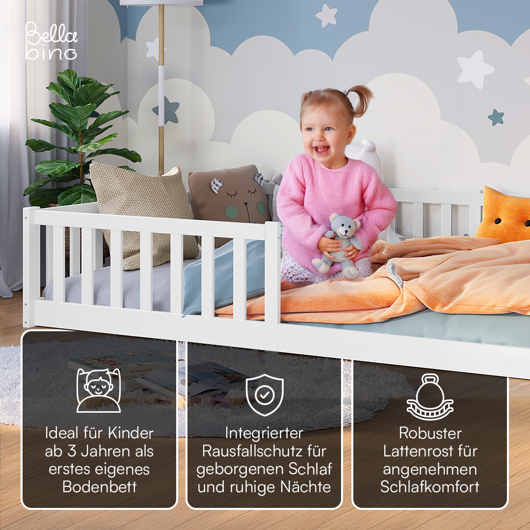 - Lieferumfang: Bodenbett inkl. Rausfallschutz und Lattenrost