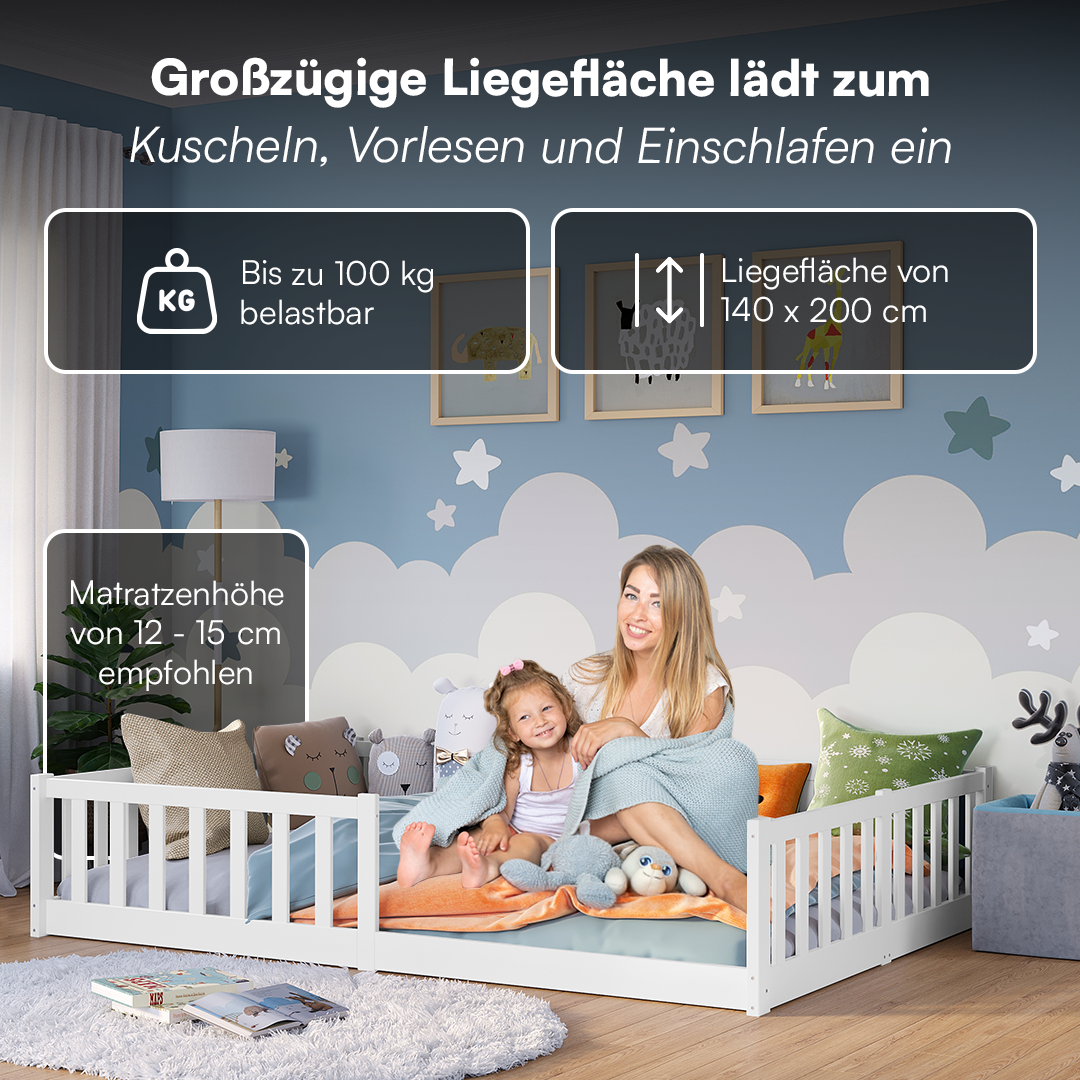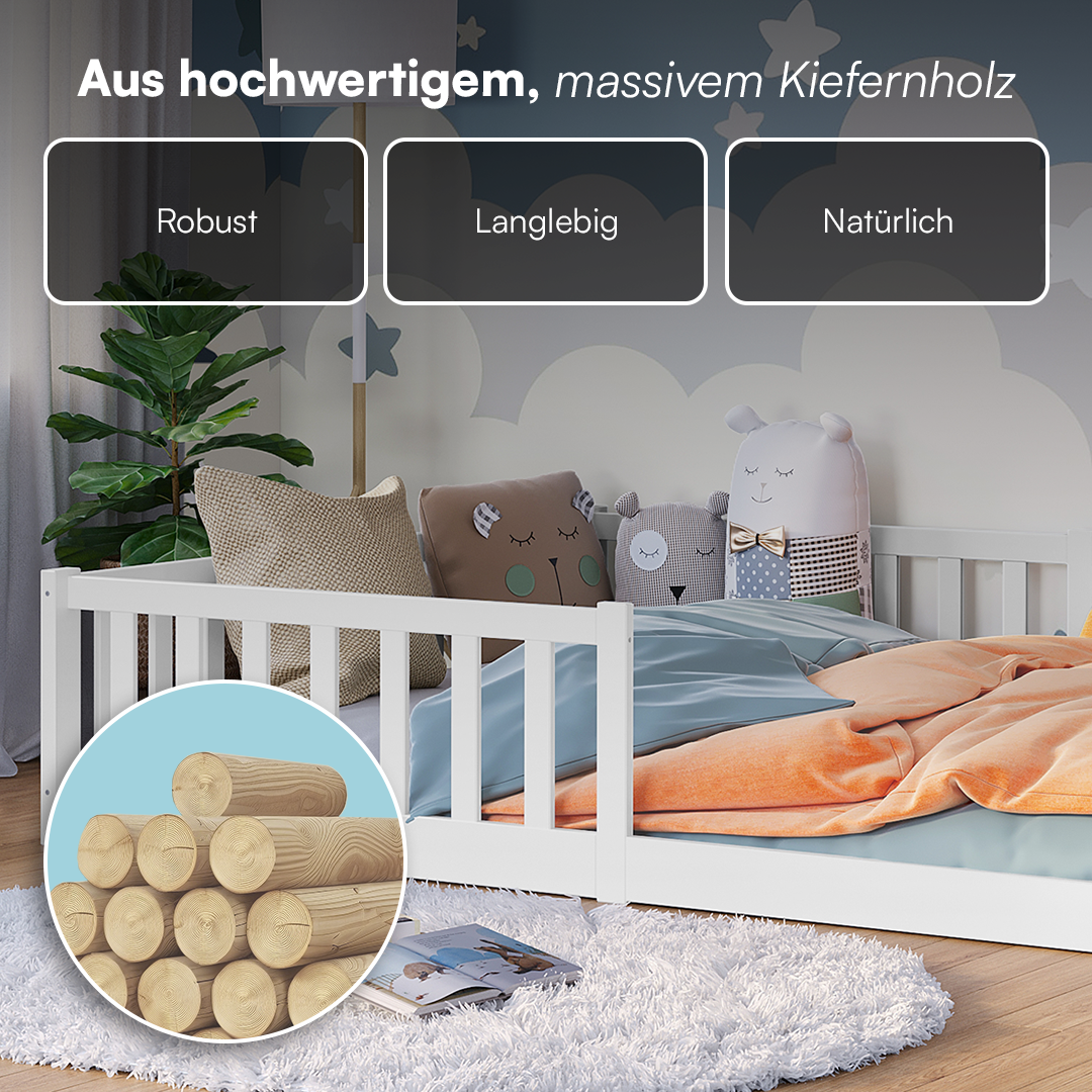 Vere Bodenbett 140x200 cm, weiß, inkl. Lattenrost und Rausfallschutz, mit Matratze
